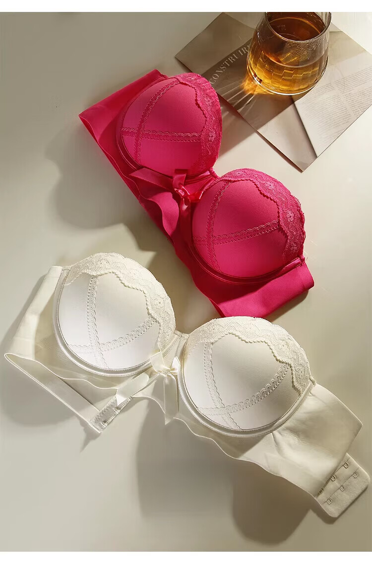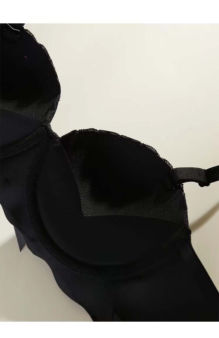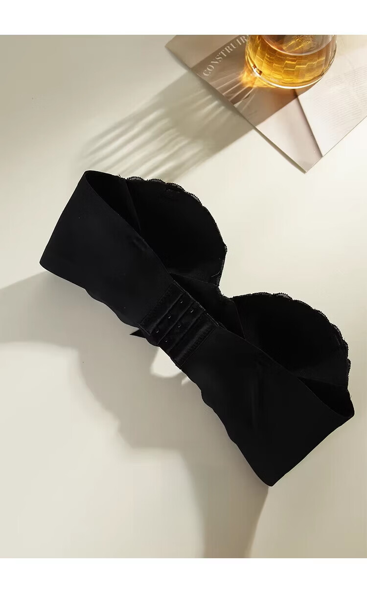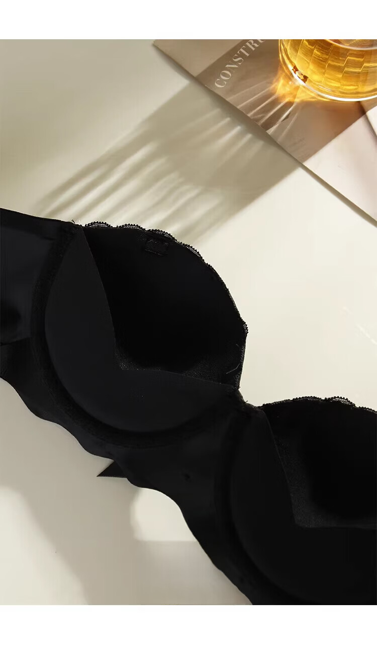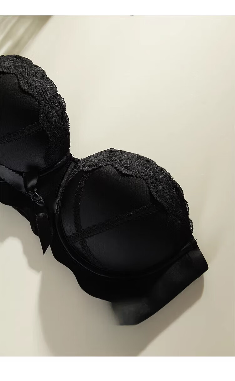 Eresg Light Luxury Brand Underwear Women's Medium Thick 3cm Bra Anti-Slip Strapless Bra Women's Bow Sexy Black x2 M 3680AB Medium Thick 2c