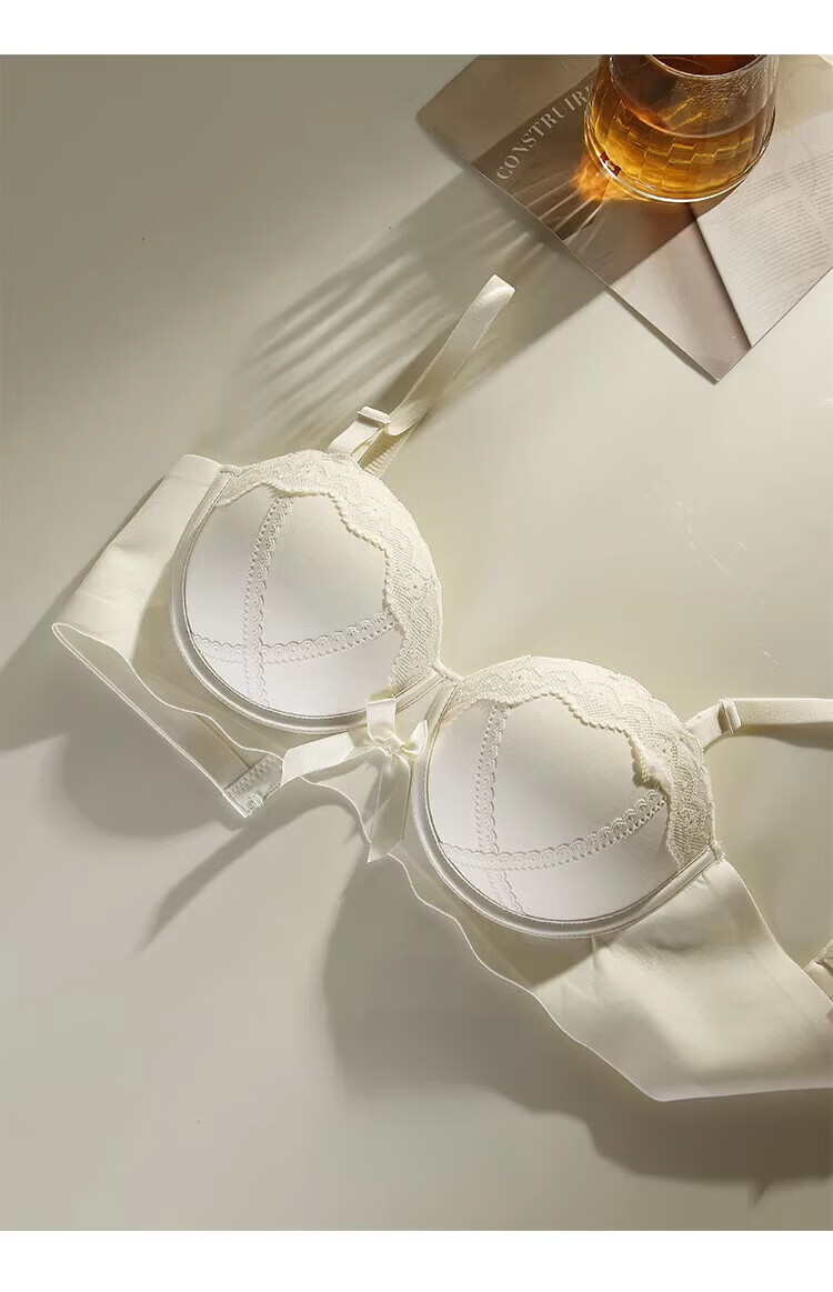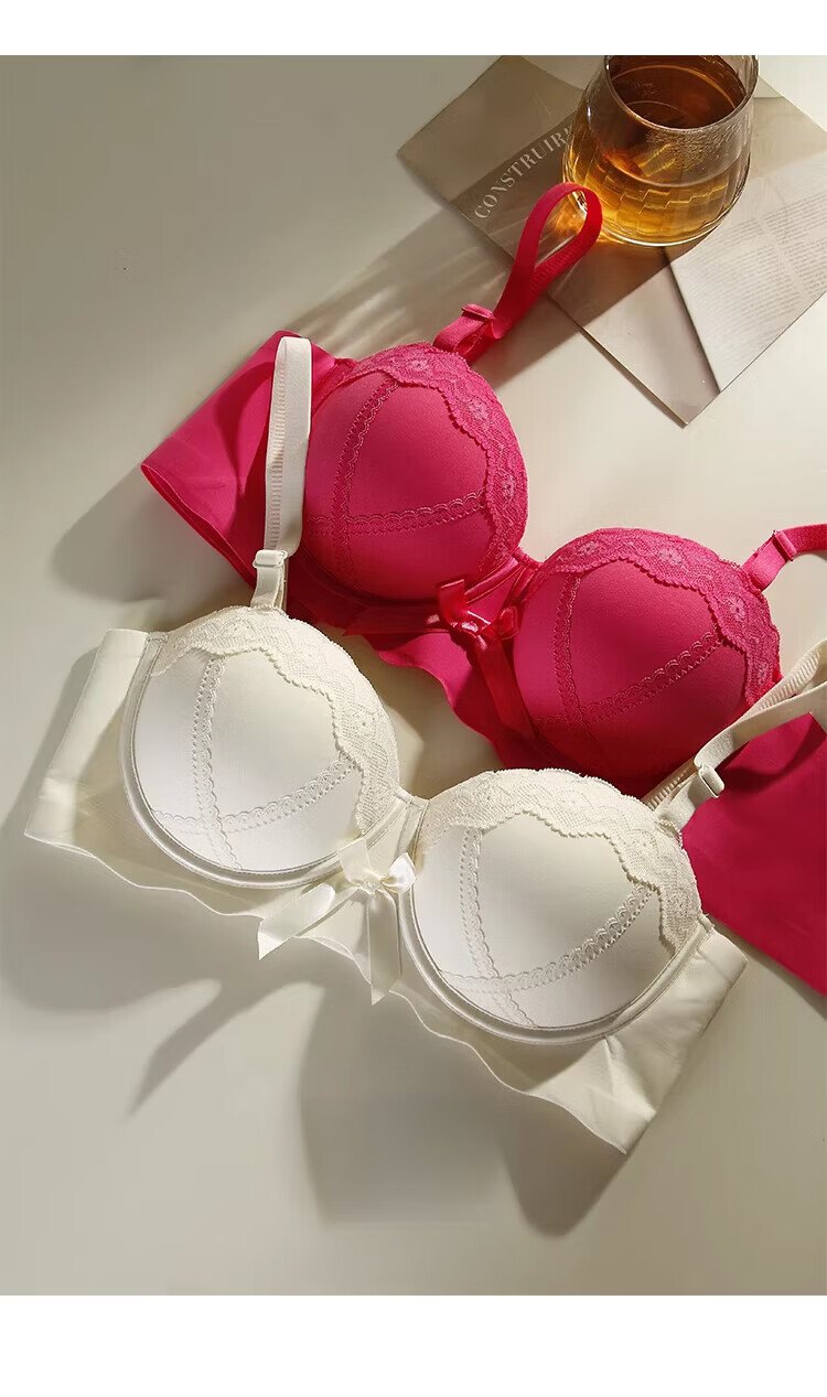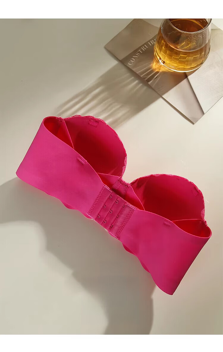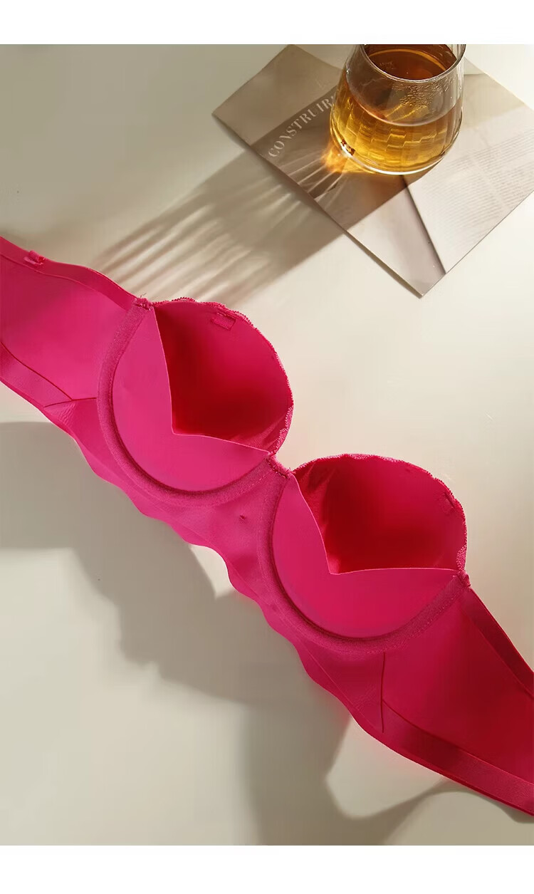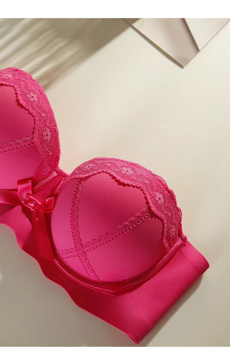 Eresg Light Luxury Brand Underwear Women's Medium Thick 3cm Bra Anti-Slip Strapless Bra Women's Bow Sexy Black x2 M 3680AB Medium Thick 2c