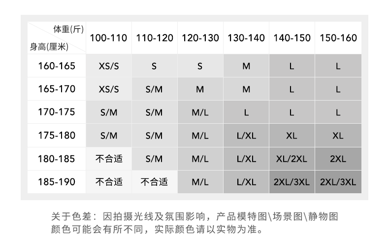 China (cm) 160-165/84-86 165-170 / 88-90 167-172 / 92-96 168-173 / 98-102 170-176 / 106-110