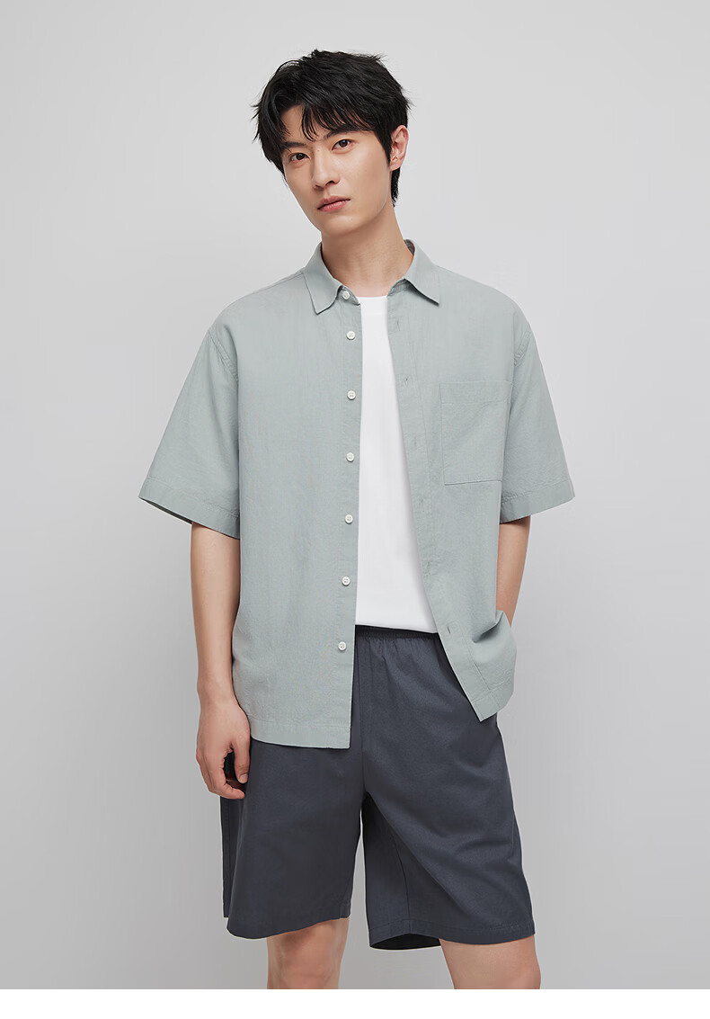 Hotwind 2026 summer new men's cotton and linen short lining 63 green white S