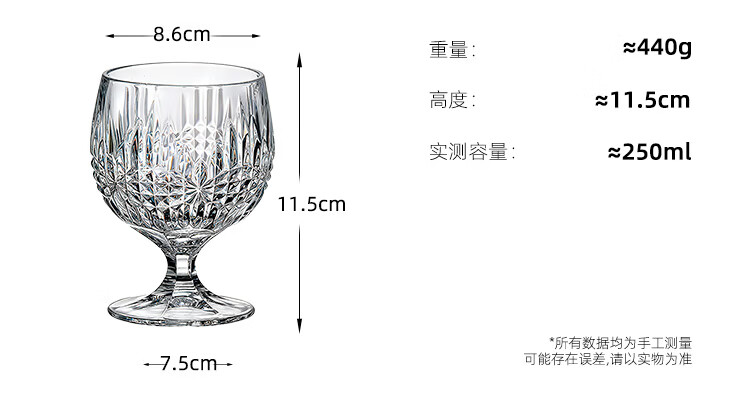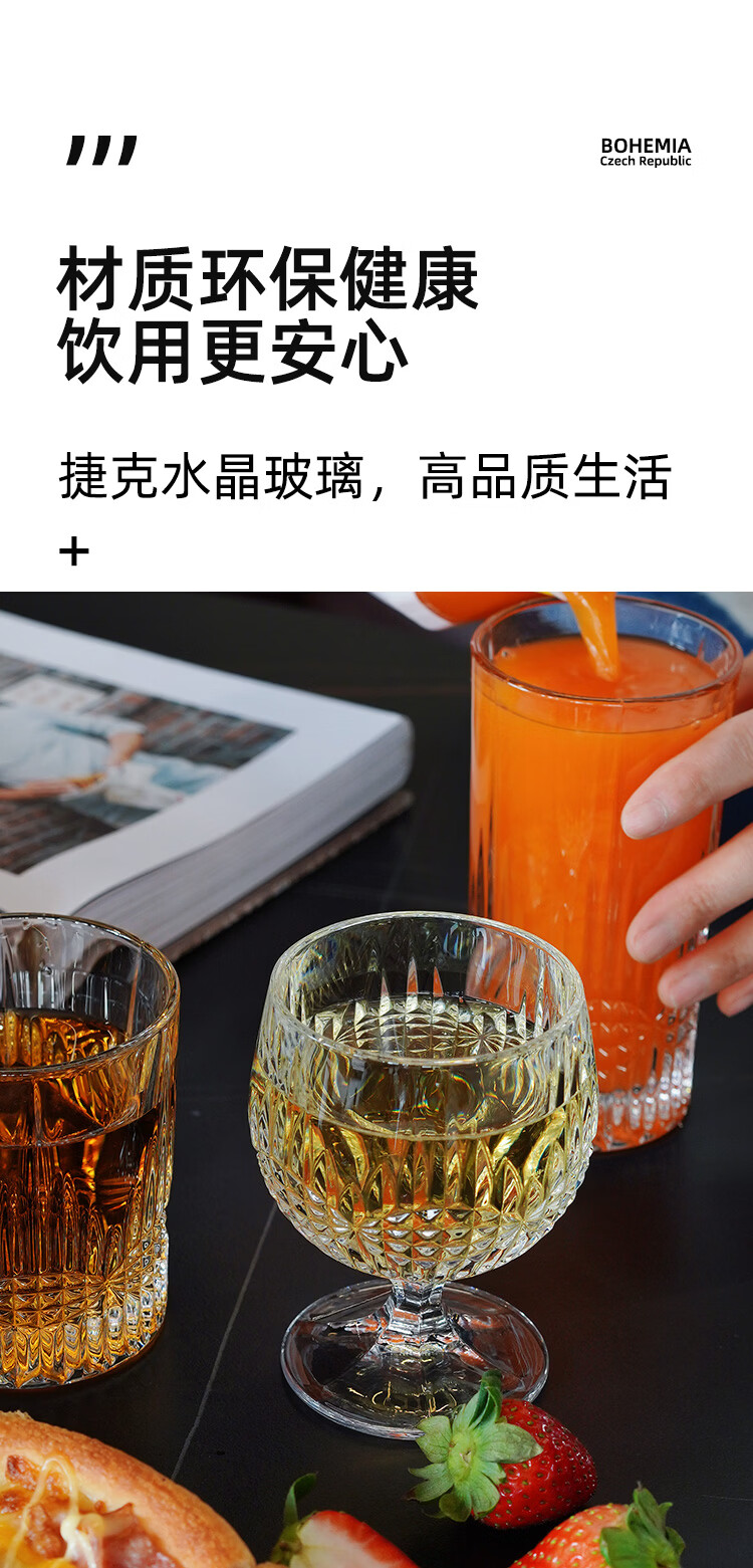 BOHEMIA Czech imported crystal glass light luxury whiskey glass brandy glass household high-end foreign wine glass glass VIBES Will | Brandy glass 250ml two gift boxes