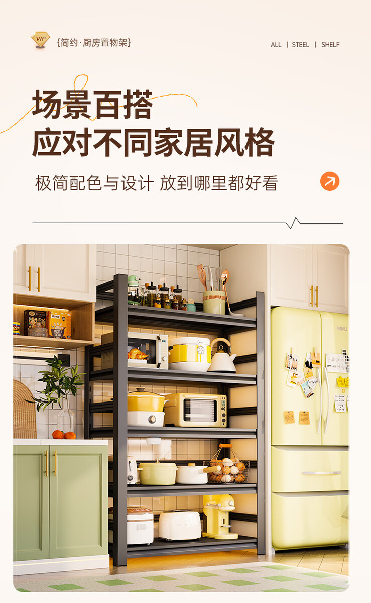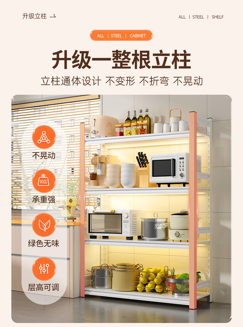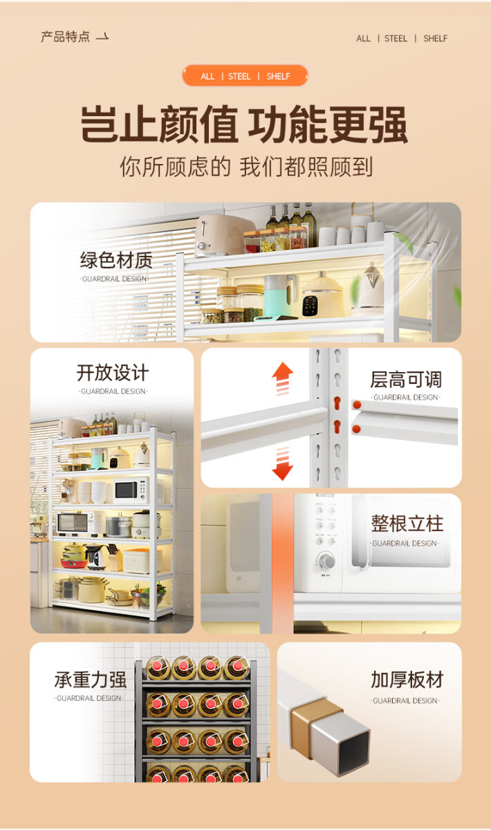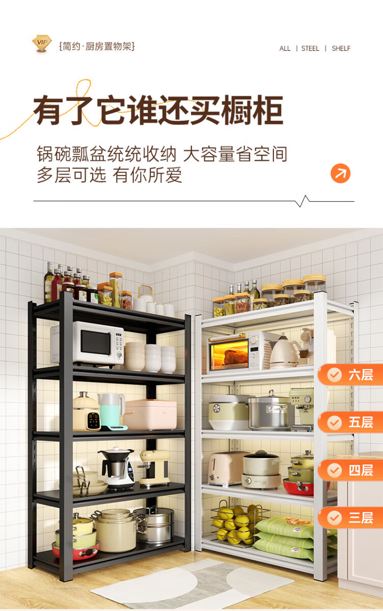 Yusenyi kitchen rack floor-standing multi-layer multi-functional household microwave oven pot rack storage shelf shelf integrated cabinet white + three layers 80cm high buckle design layer height can be adjusted up and down length 120cmx width 35cm