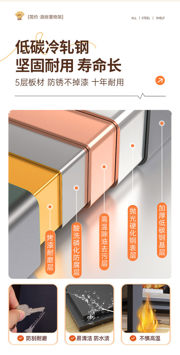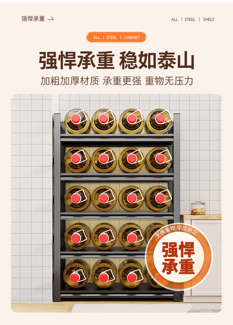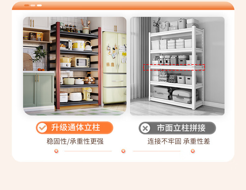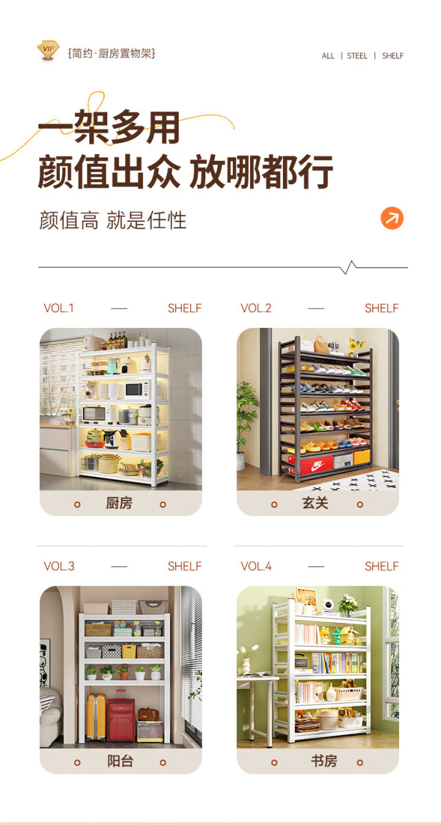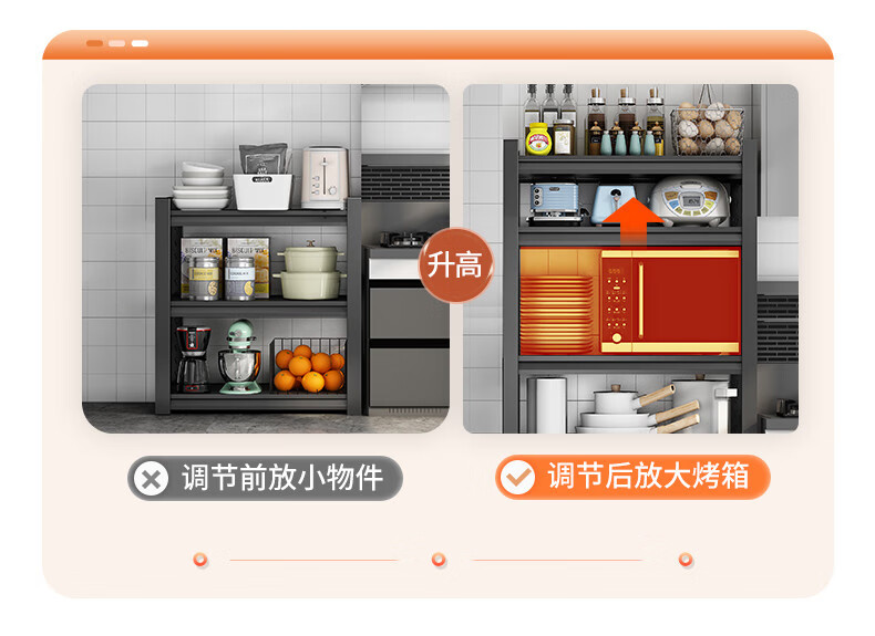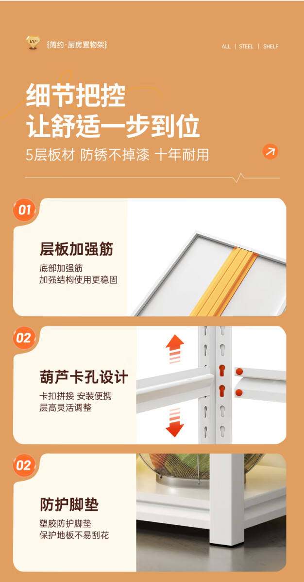 Yusenyi kitchen rack floor-standing multi-layer multi-functional household microwave oven pot rack storage shelf shelf integrated cabinet white + three layers 80cm high buckle design layer height can be adjusted up and down length 120cmx width 35cm