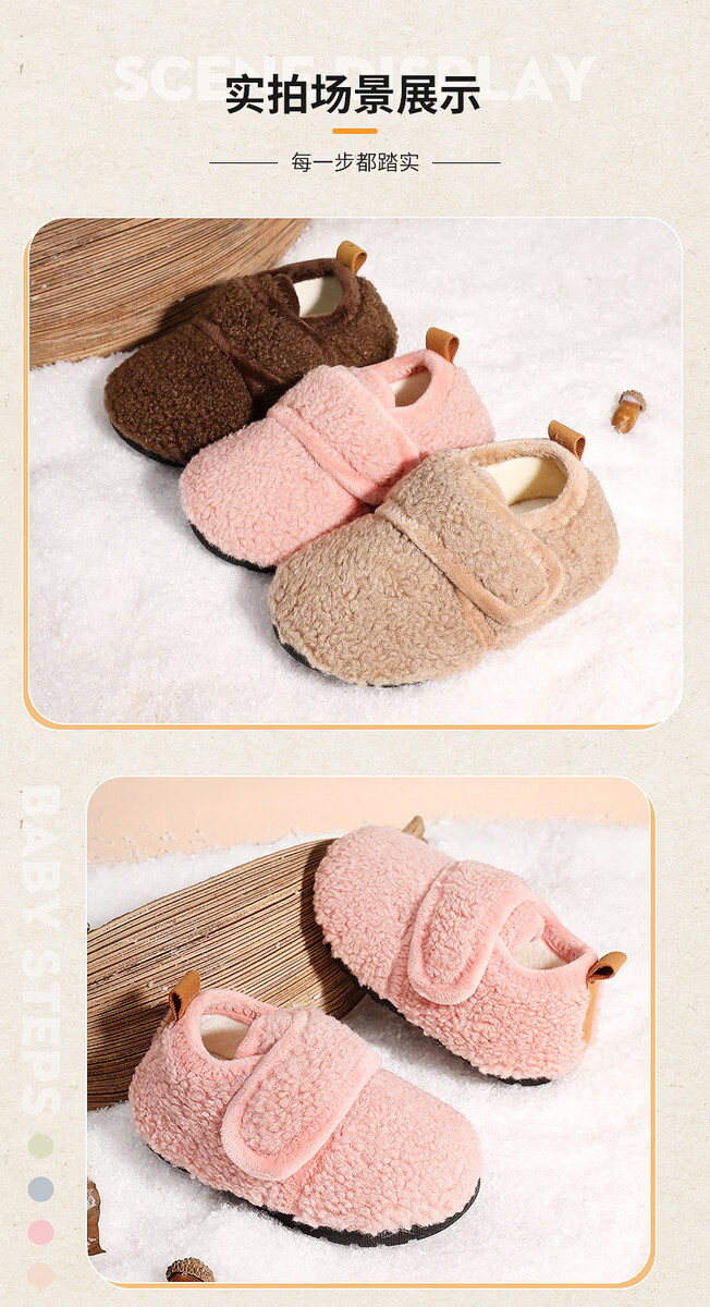 Children's cotton slippers winter boys children indoor shoes baby home shoes floor shoes autumn and winter girls 2025 new style cherry blossom pink 24 23/24 size inner length 13cm