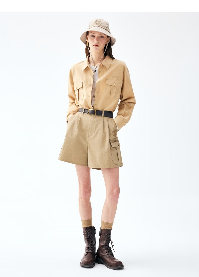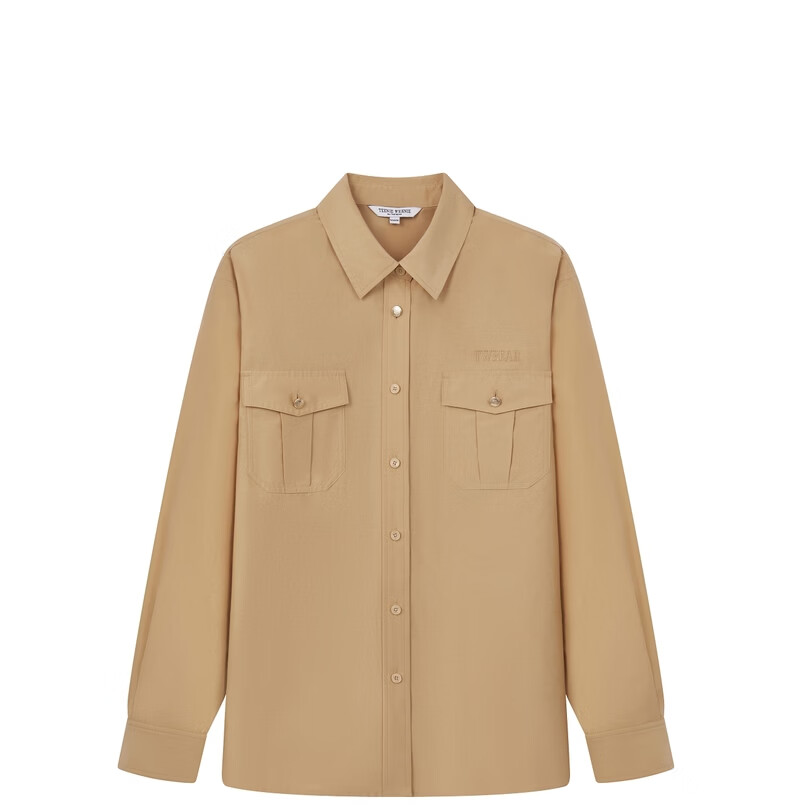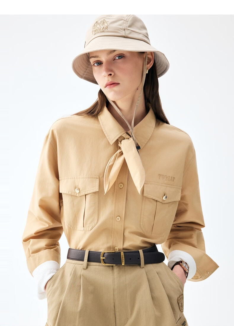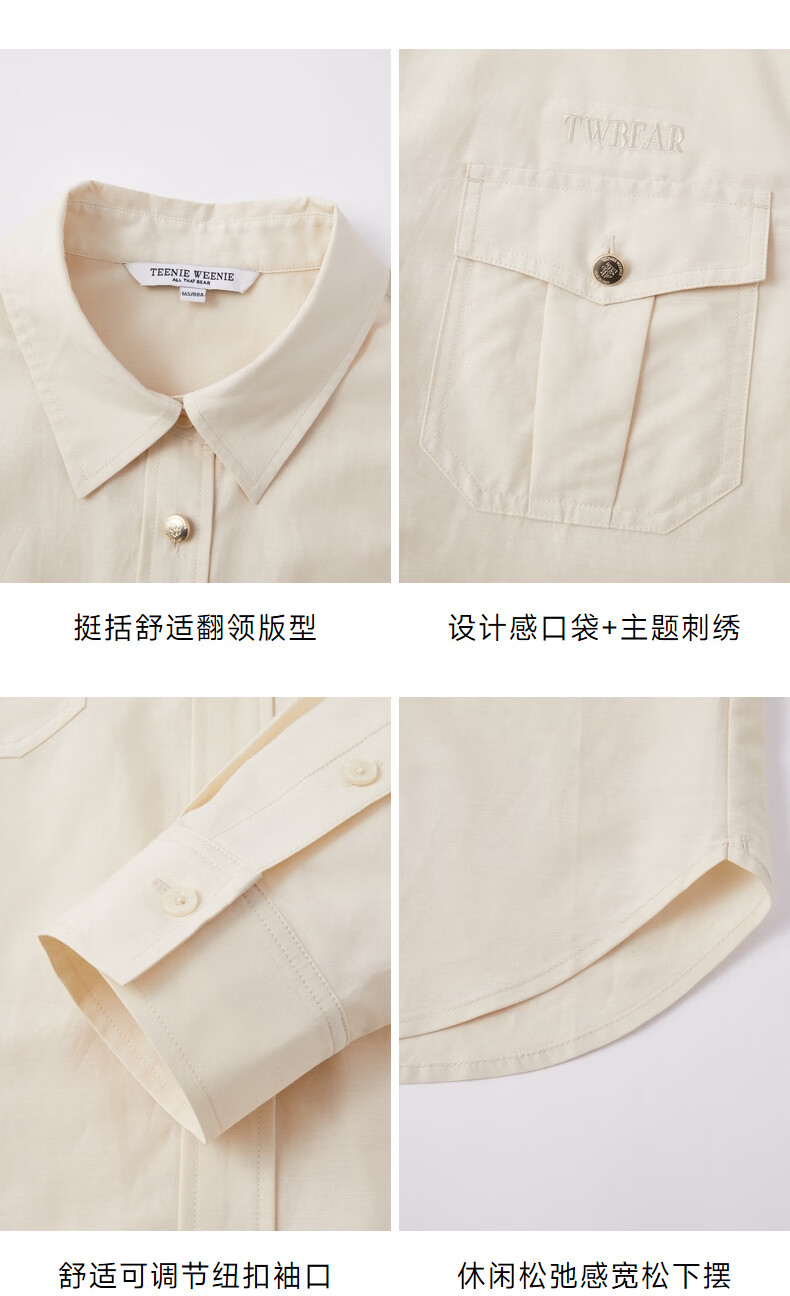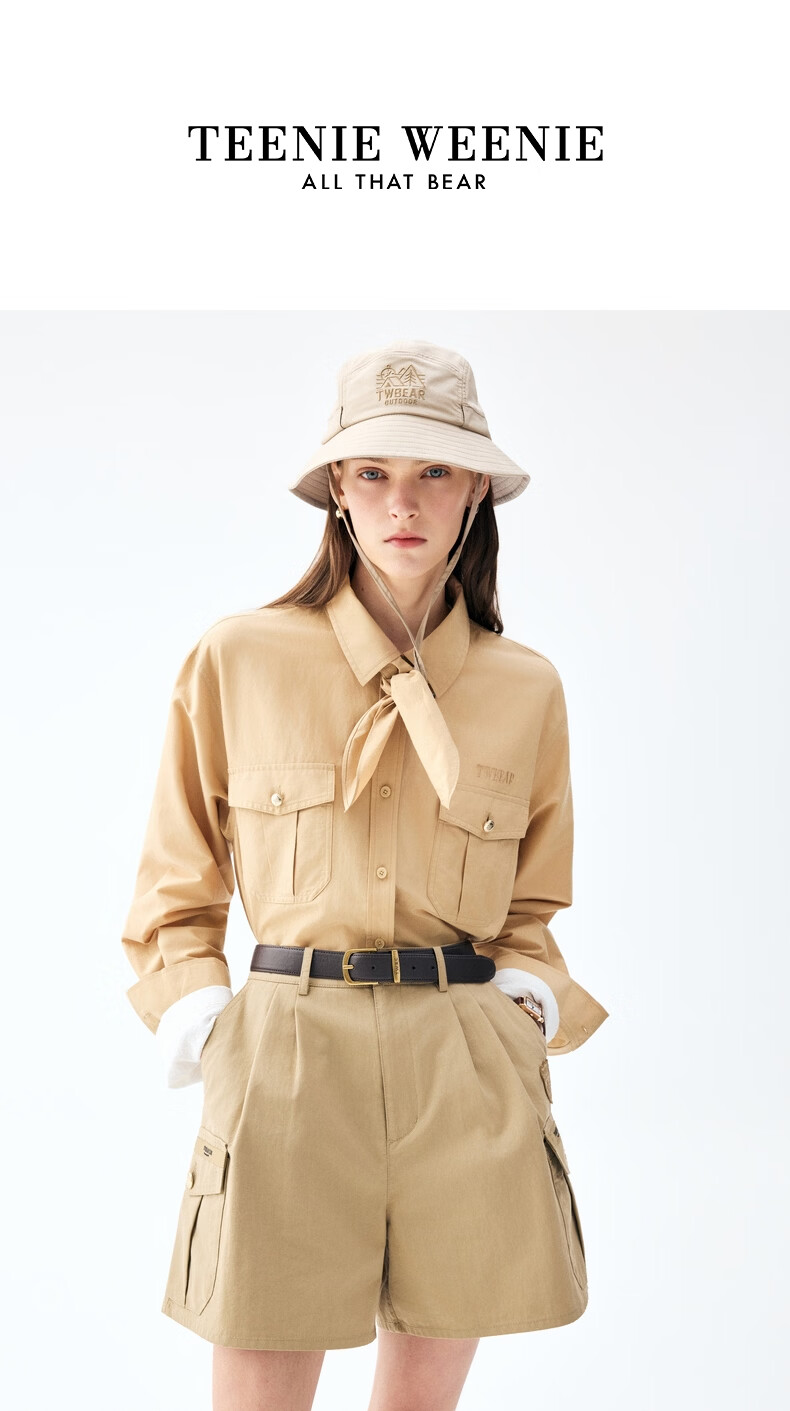 Teenie Weenie Bear Women's Shirt 26 Spring and Summer New Retro Fashion Loose and Comfortable Lapel Shirt Khaki S