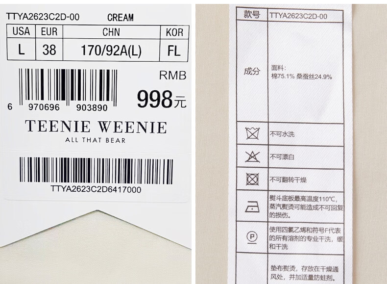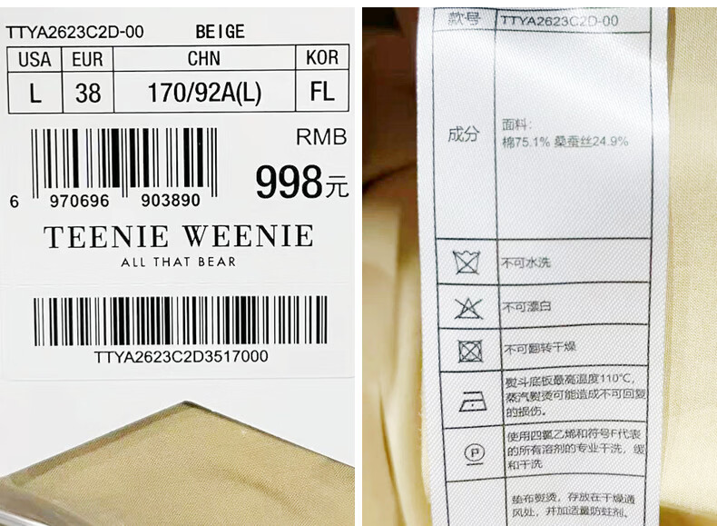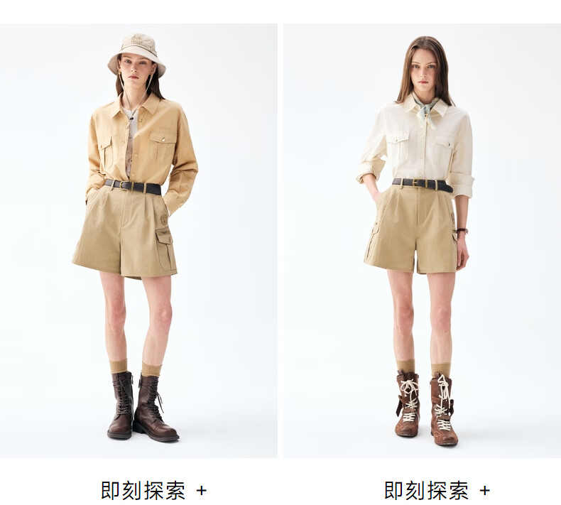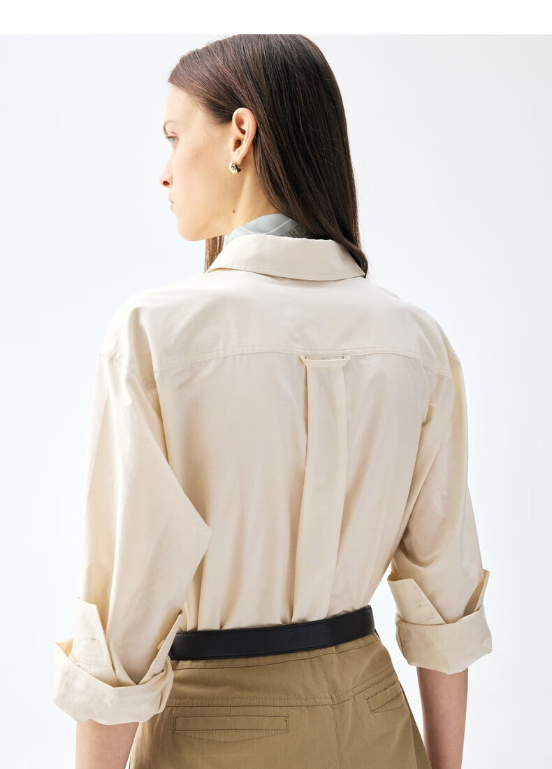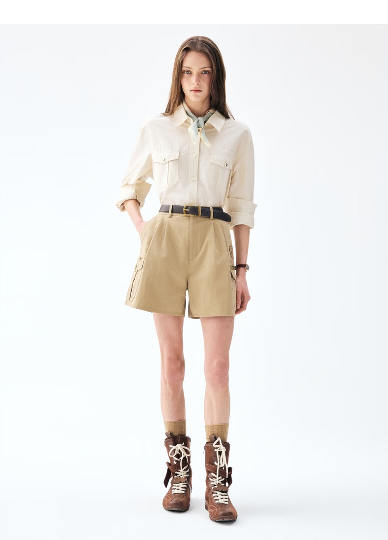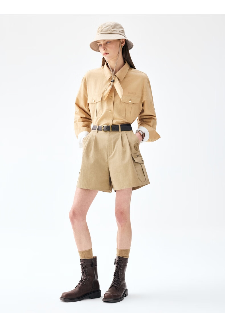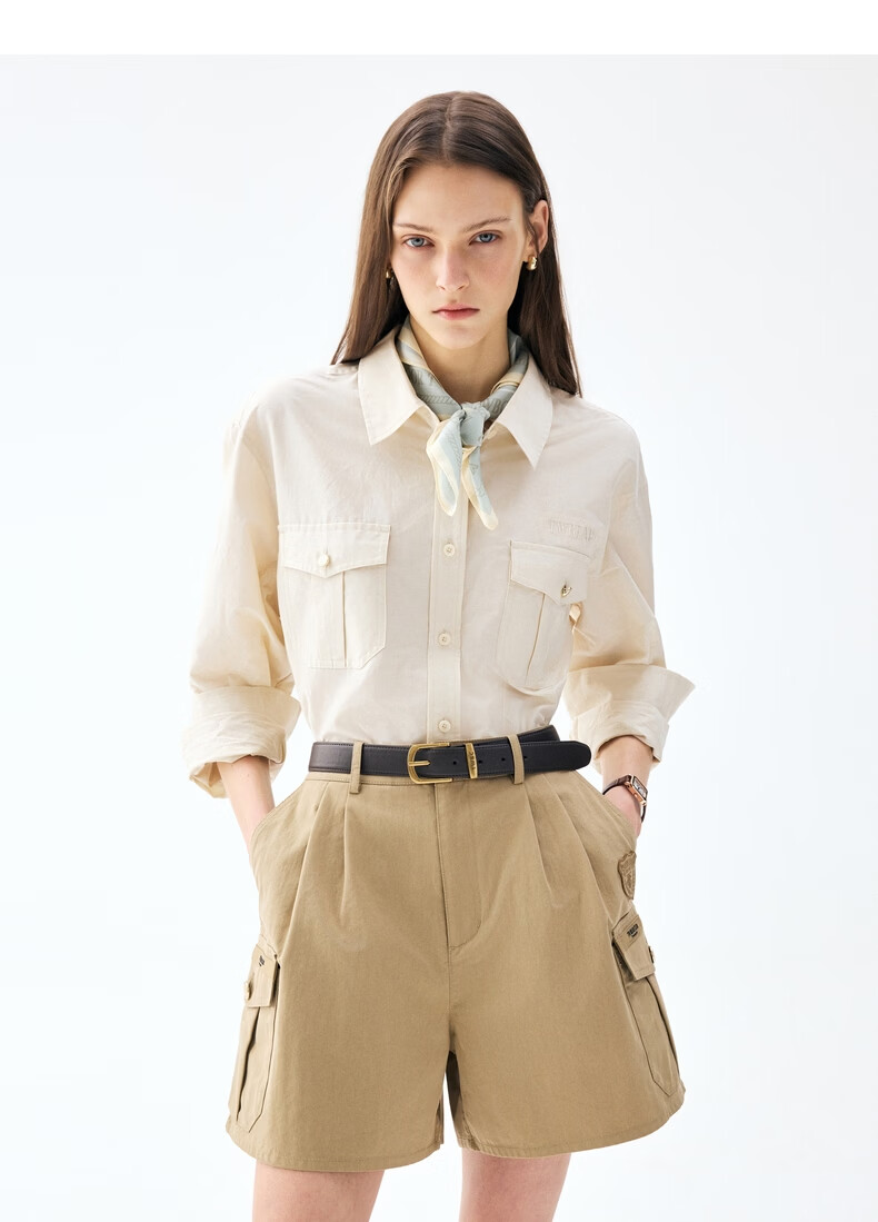 Teenie Weenie Bear Women's Shirt 26 Spring and Summer New Retro Fashion Loose and Comfortable Lapel Shirt Khaki S