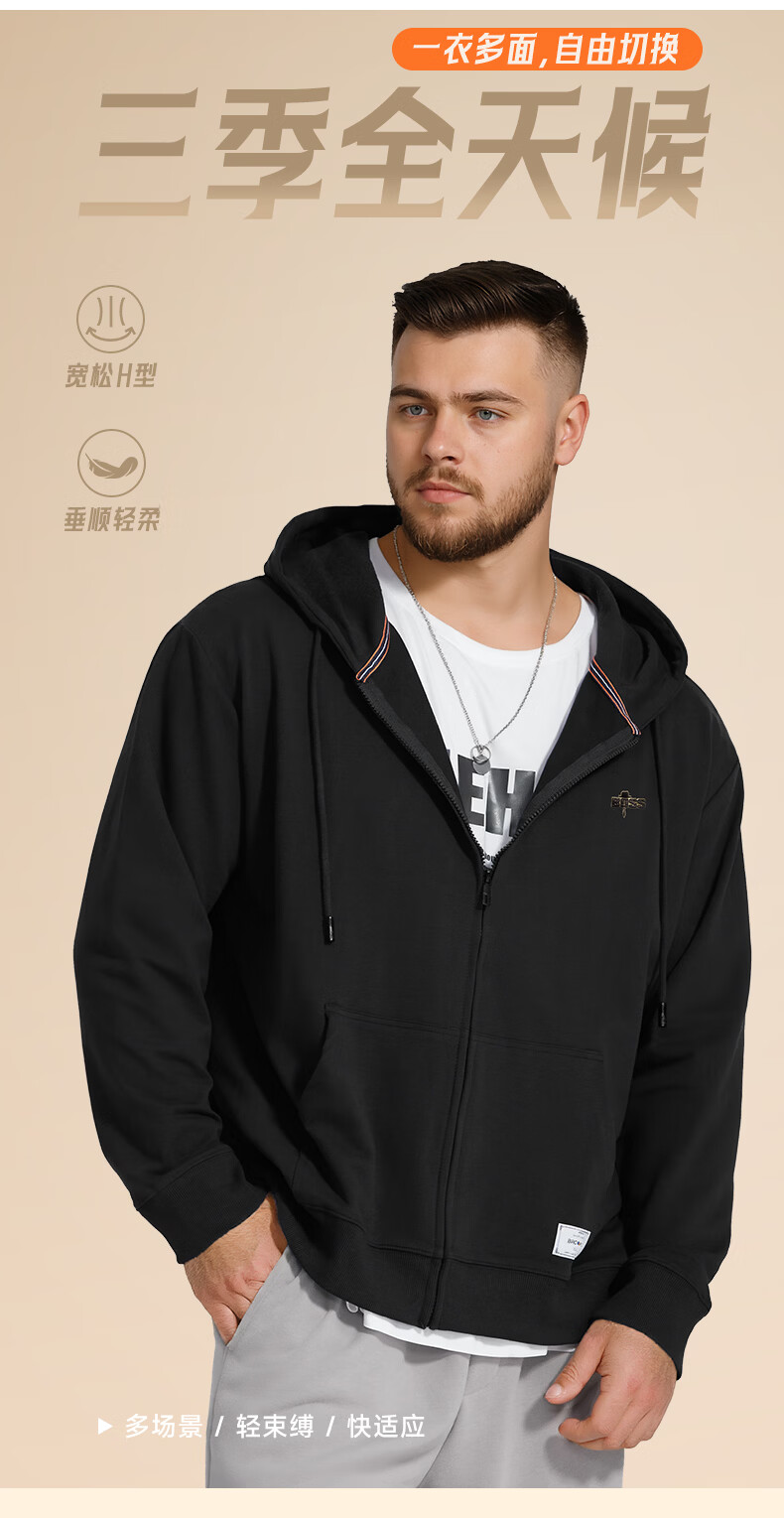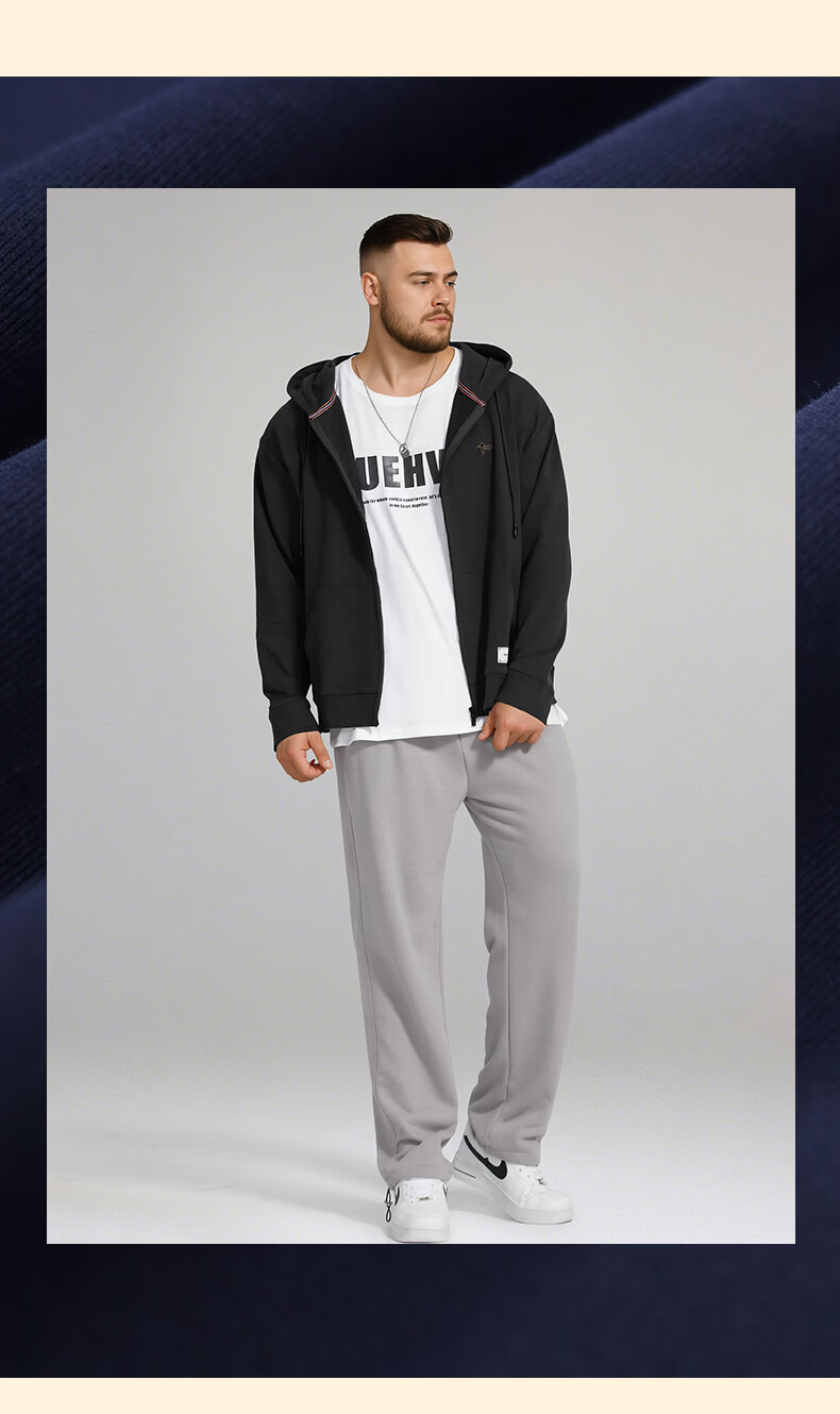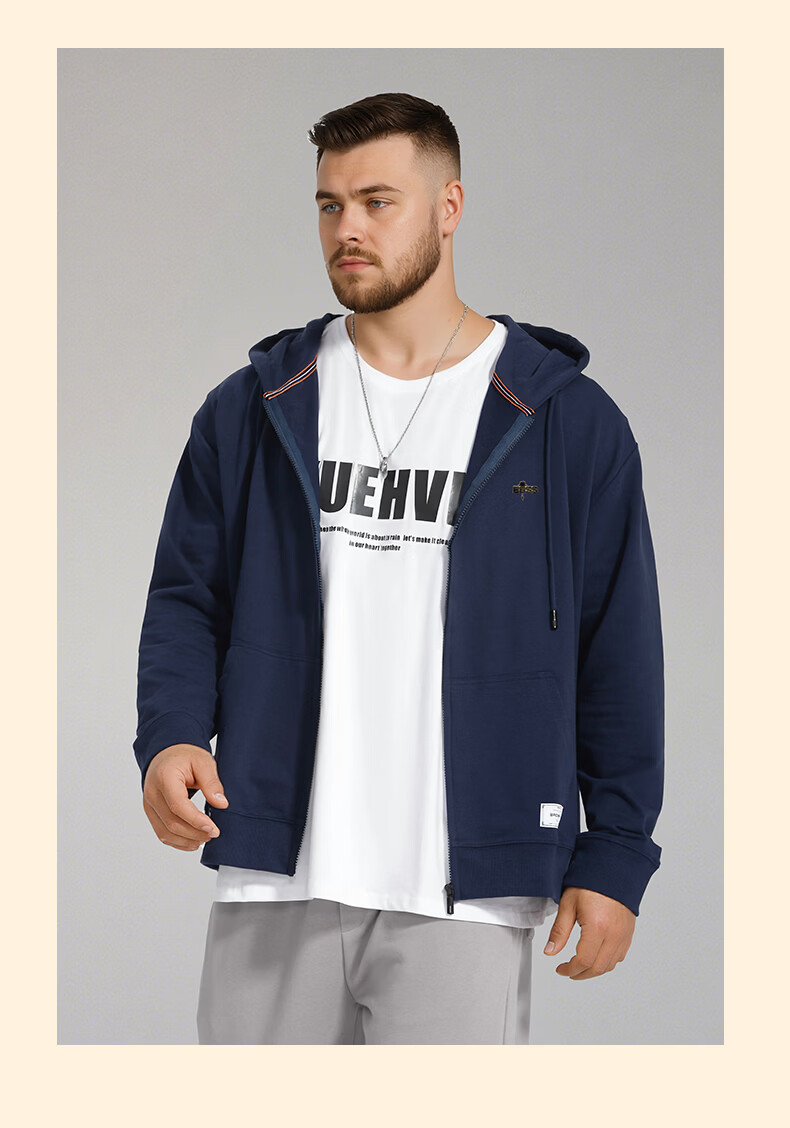 Fat brother plus size men's men's letter embossed zipper sweatshirt plus fat plus size fat casual top fat man spring and autumn jacket black 4XL (210-250Jin Jin is equal to 0.5 kg)