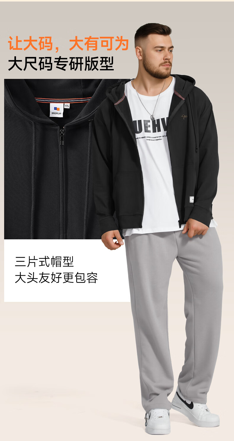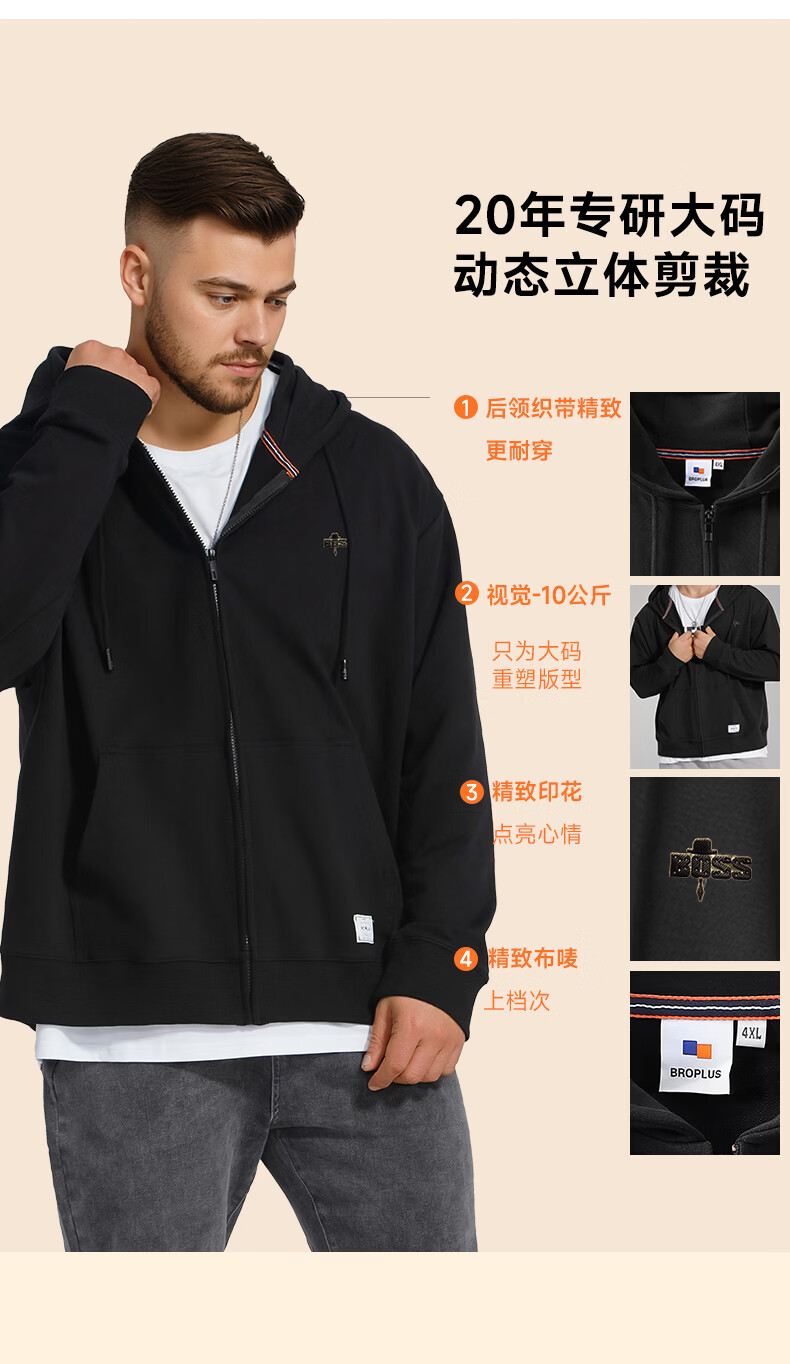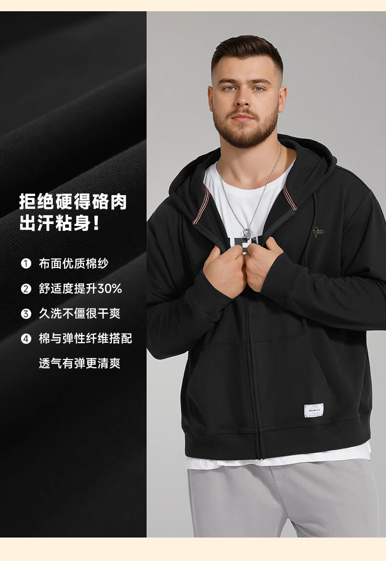 Fat brother plus size men's men's letter embossed zipper sweatshirt plus fat plus size fat casual top fat man spring and autumn jacket black 4XL (210-250Jin Jin is equal to 0.5 kg)