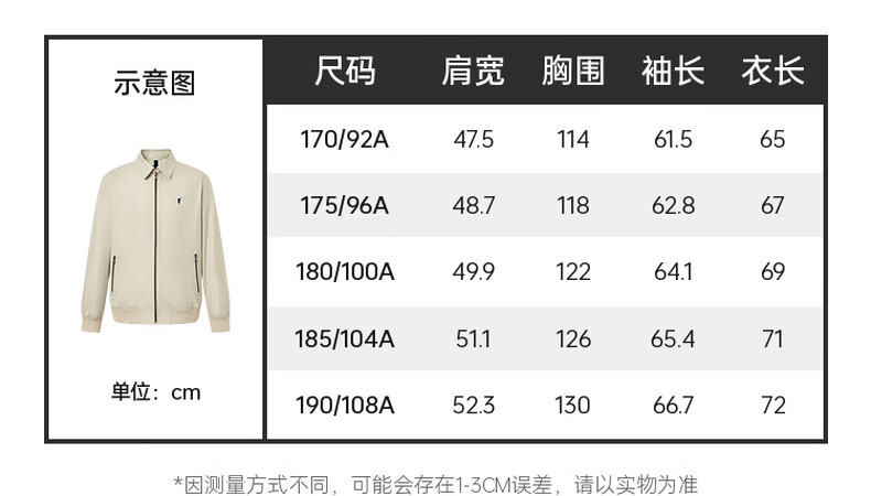 China (cm) 165 / 88-90 170 / 96-98 175 / 108-110 180 / 118-122 185 / 126-130