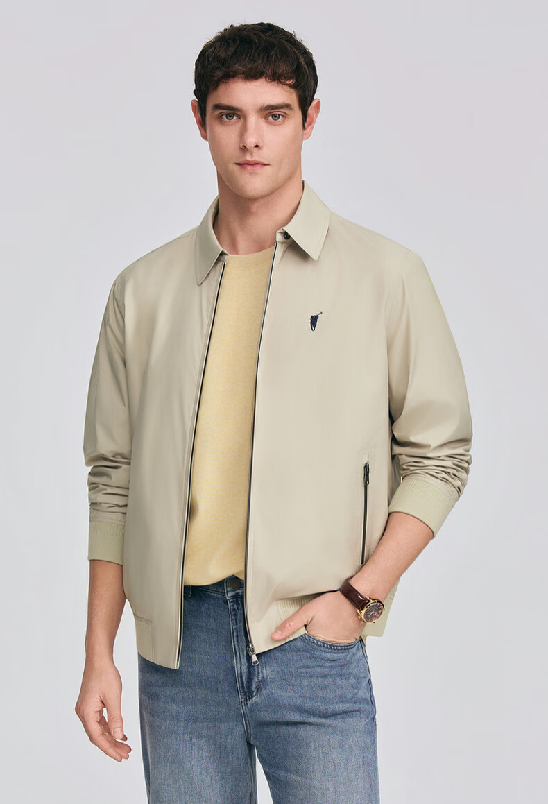 POLOWALK Men's Jacket 2026 Spring New Men's Lapel Classic Commuting Casual Jacket Zipper Men's Top Jacket Dark Brown M M