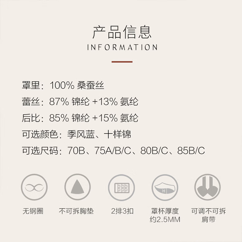 Jinsanta Silk Wire-Free Push-Up Bra Breathable, Comfortable, Thin Lace Thin Underwear Monsoon Blue 70B