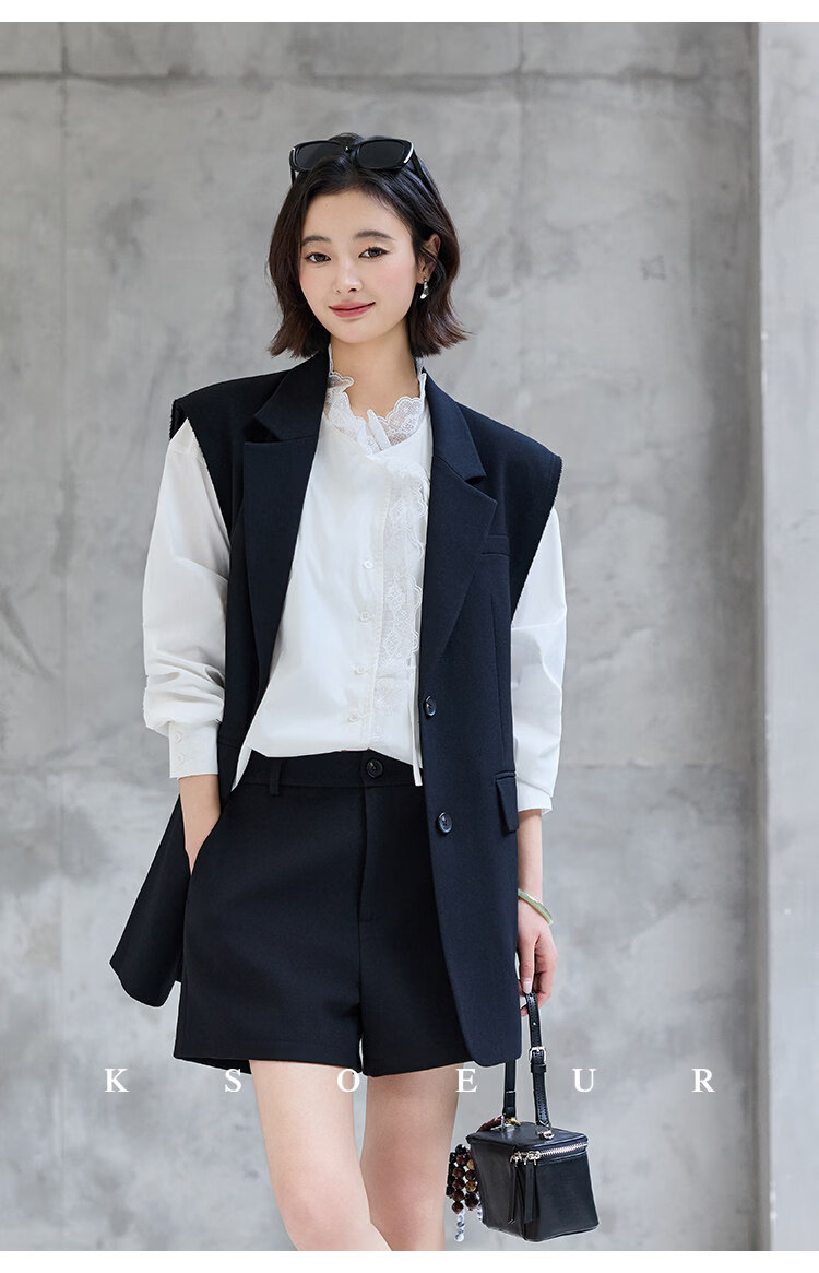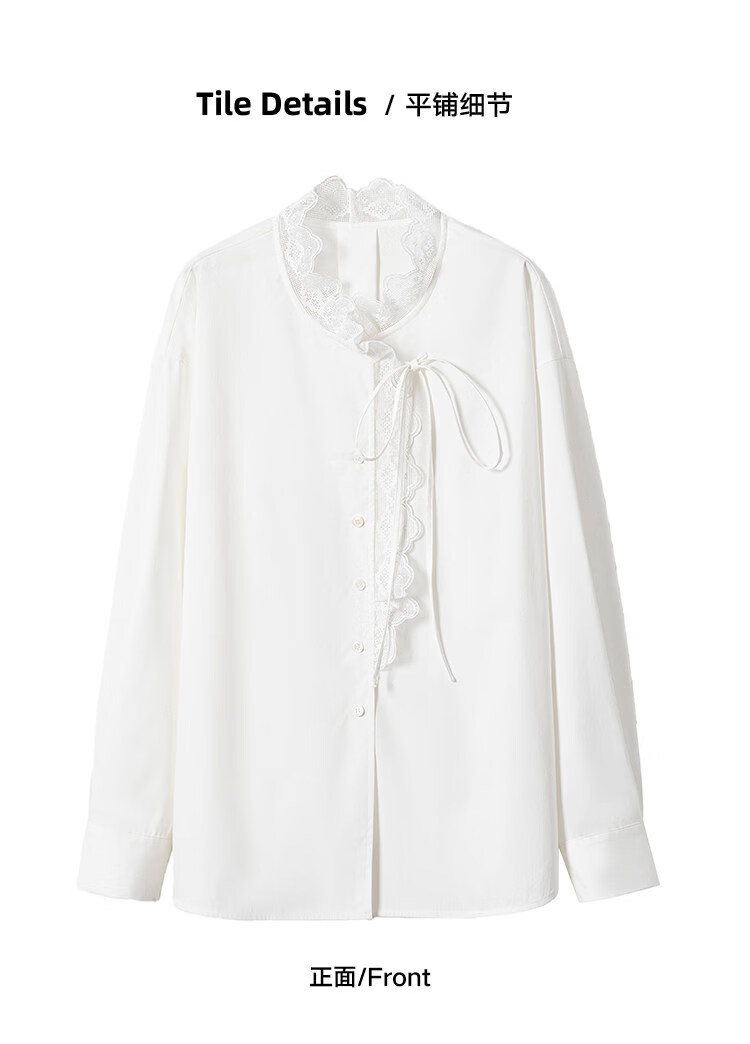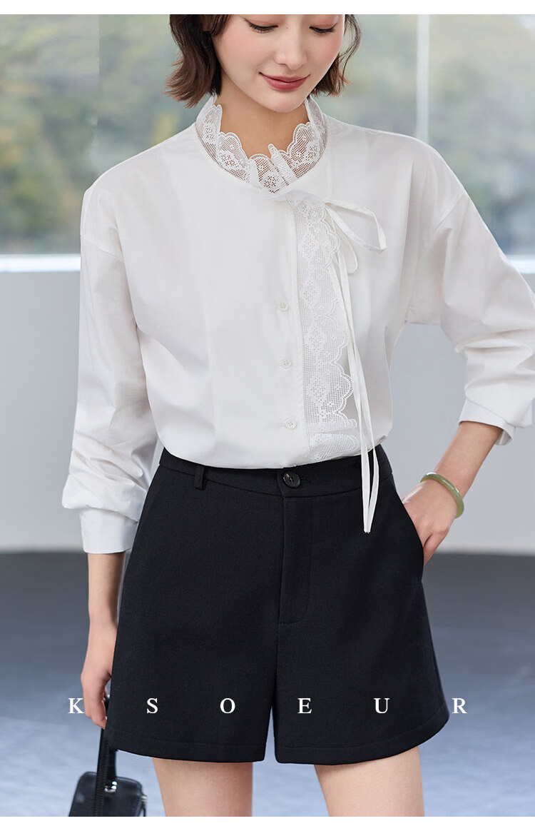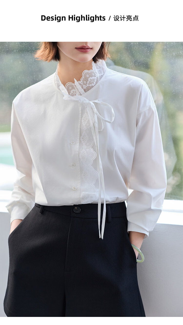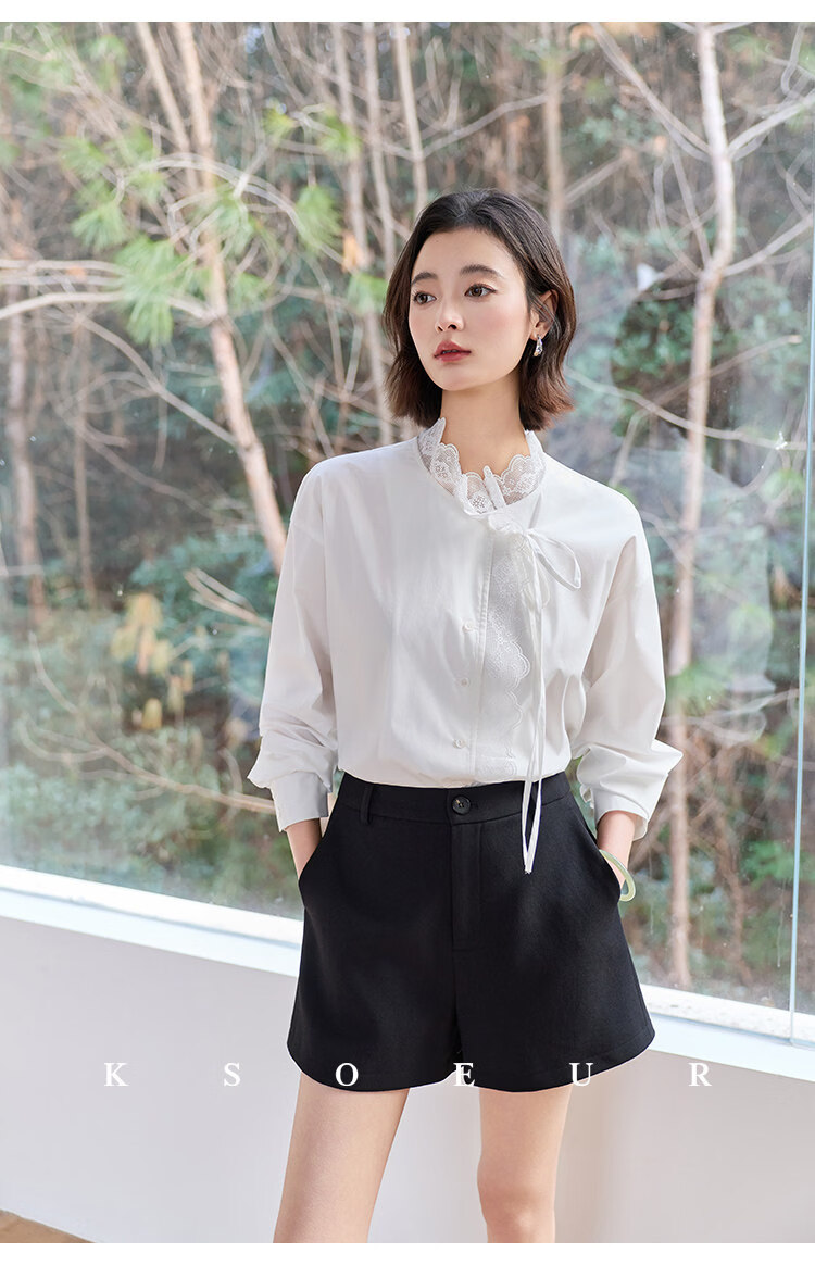KSOEUR K sister fell in love at first sight exquisite lazy Chinese style lace strap pima cotton shirt for women white L