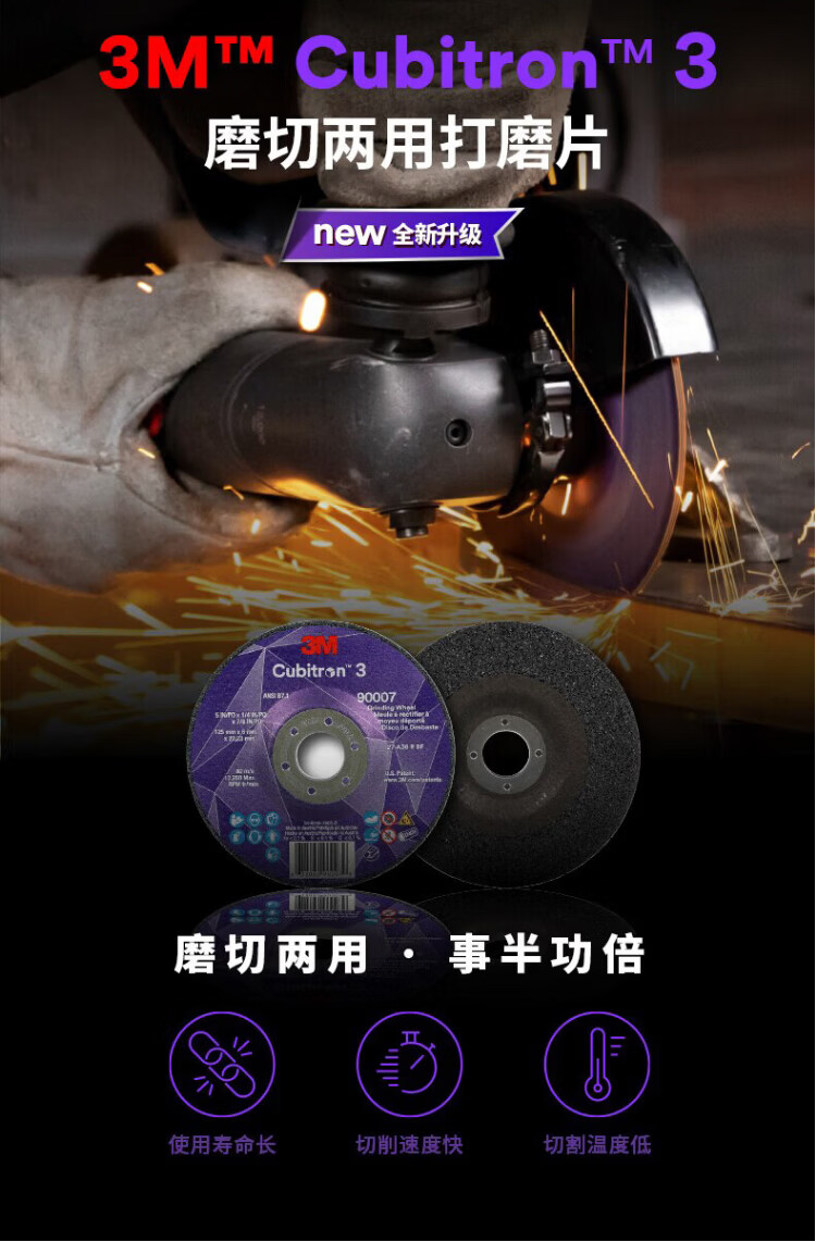 3M metal cutting disc Cubitron 3 grinding and cutting dual-purpose grinding disc cutting metal processing weld grinding sw 10 pieces 115*1*22.23mm 60+