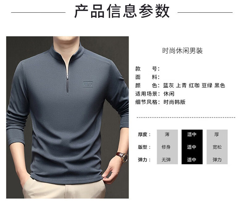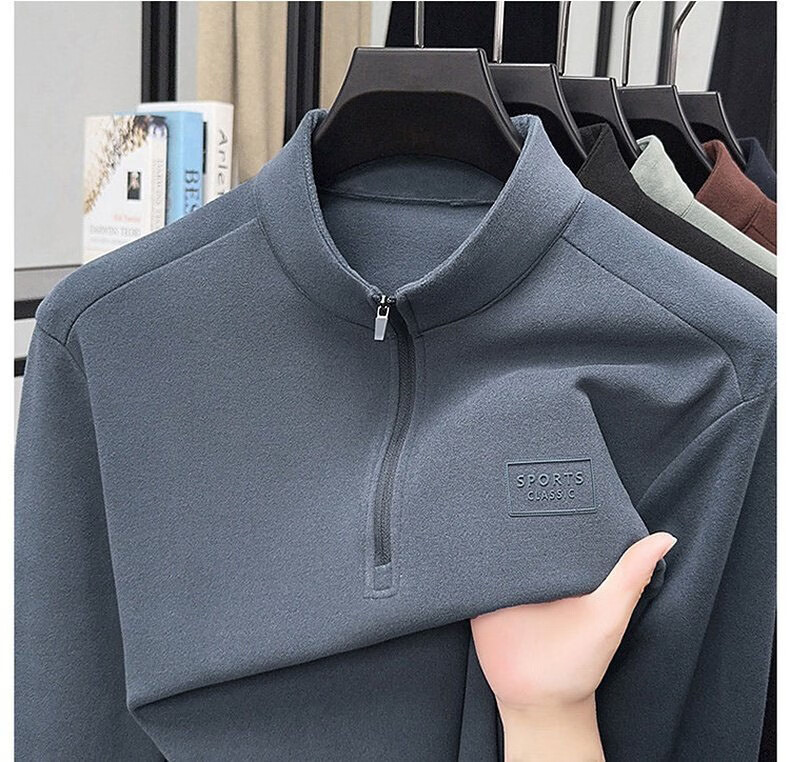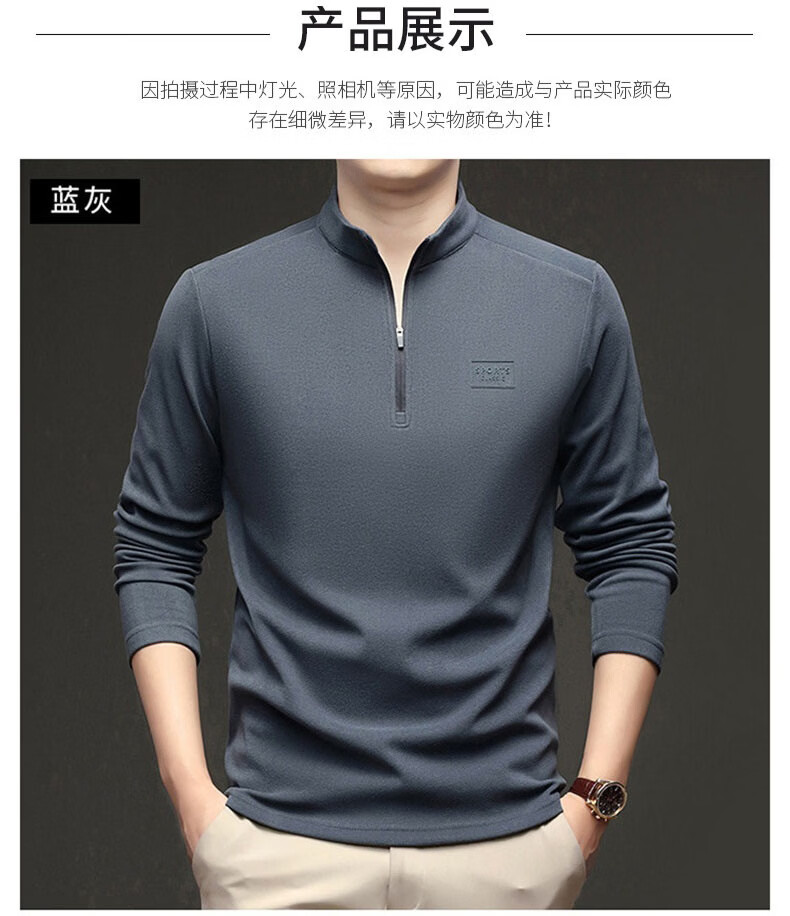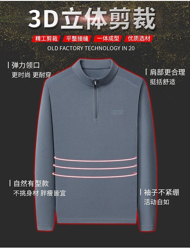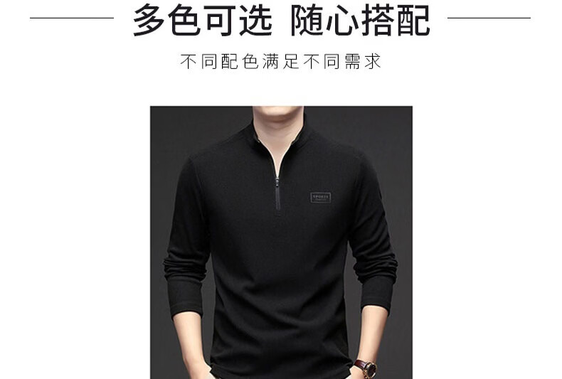 GUMALA high-end brand DeRong sweatshirt men's 2026 spring and autumn new half-zip bottoming shirt stand-up collar long-sleeved T-shirt men's black M recommended 90-110
