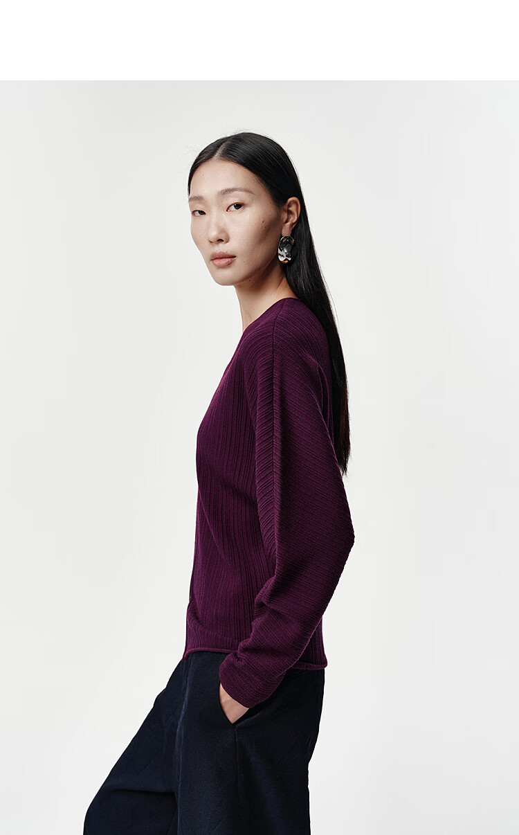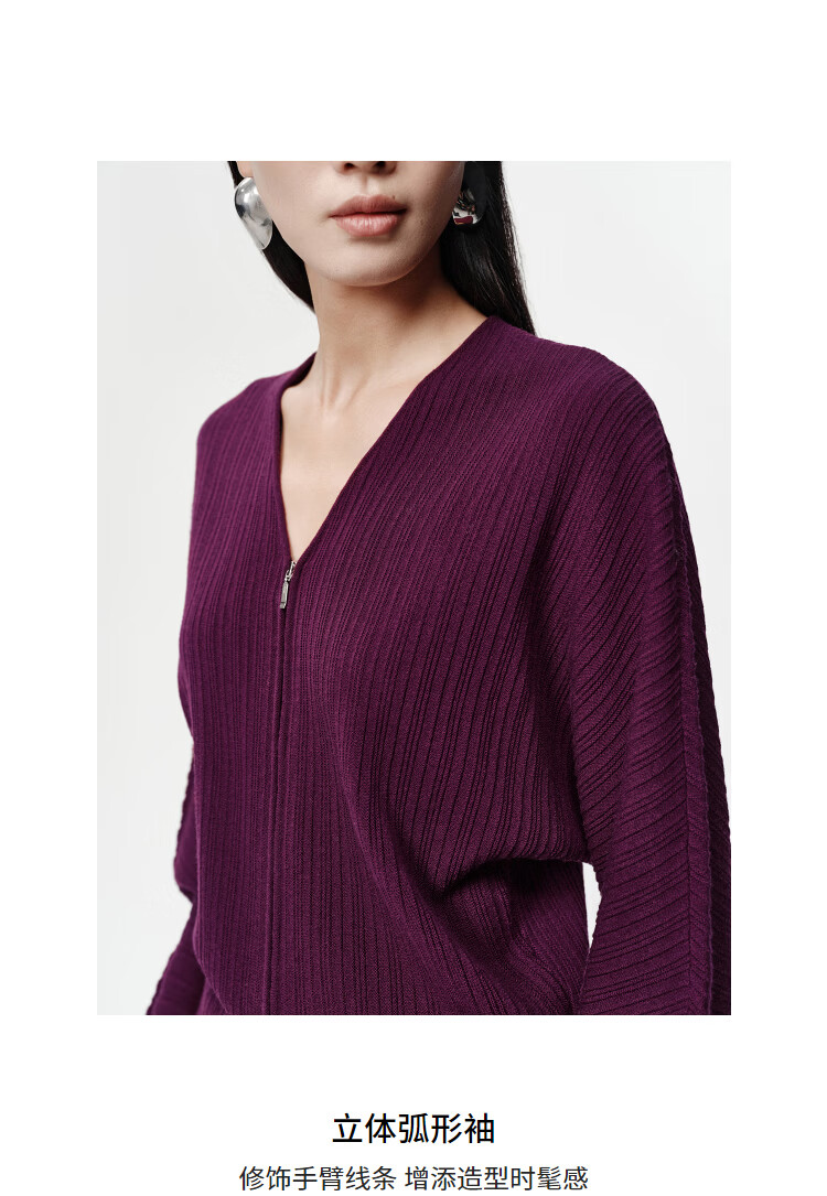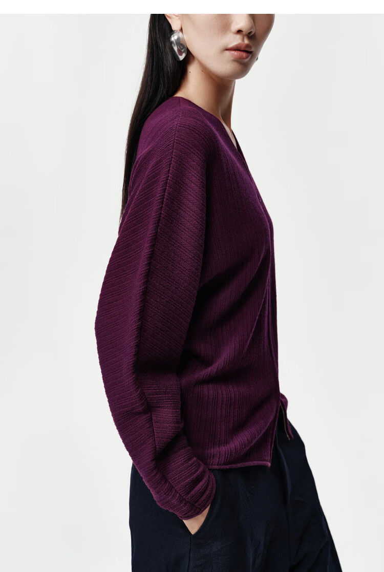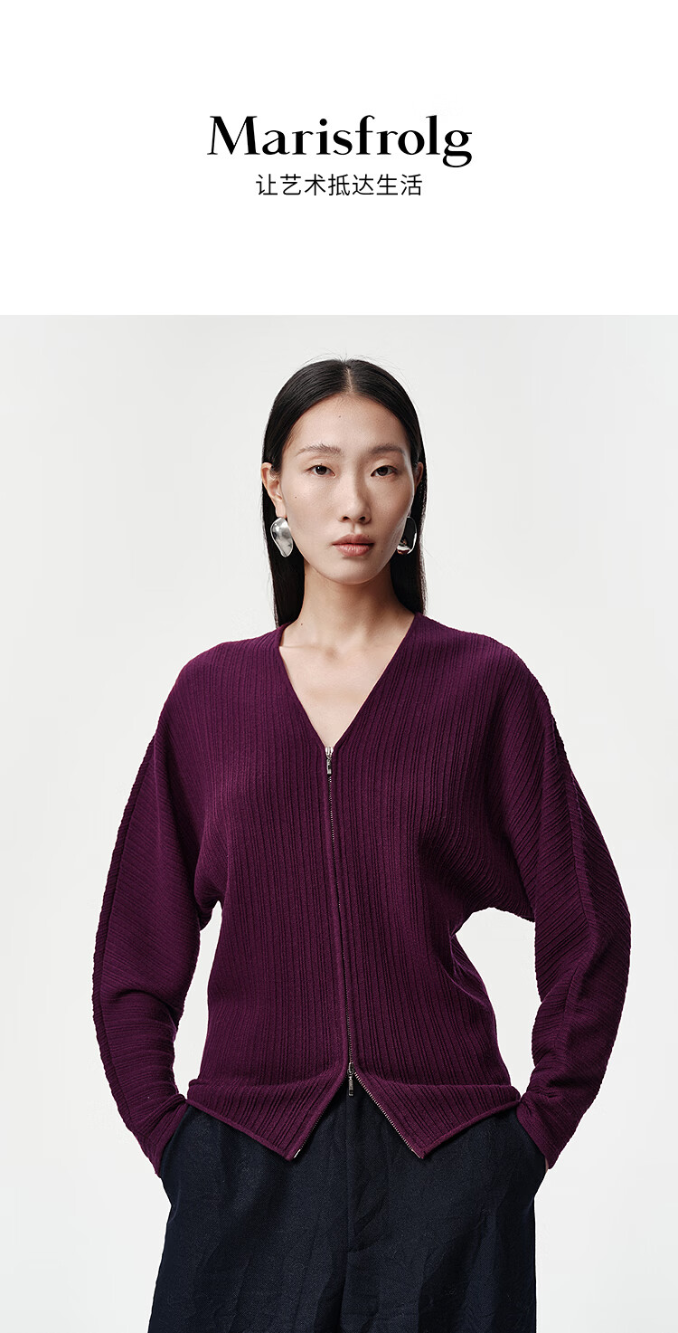 Marisfrolg Strong Twisted Wool Marisfrol 2026 Spring New Burgundy Bat Sleeve Dark Striped Knitted Cardigan Burgundy 2XL