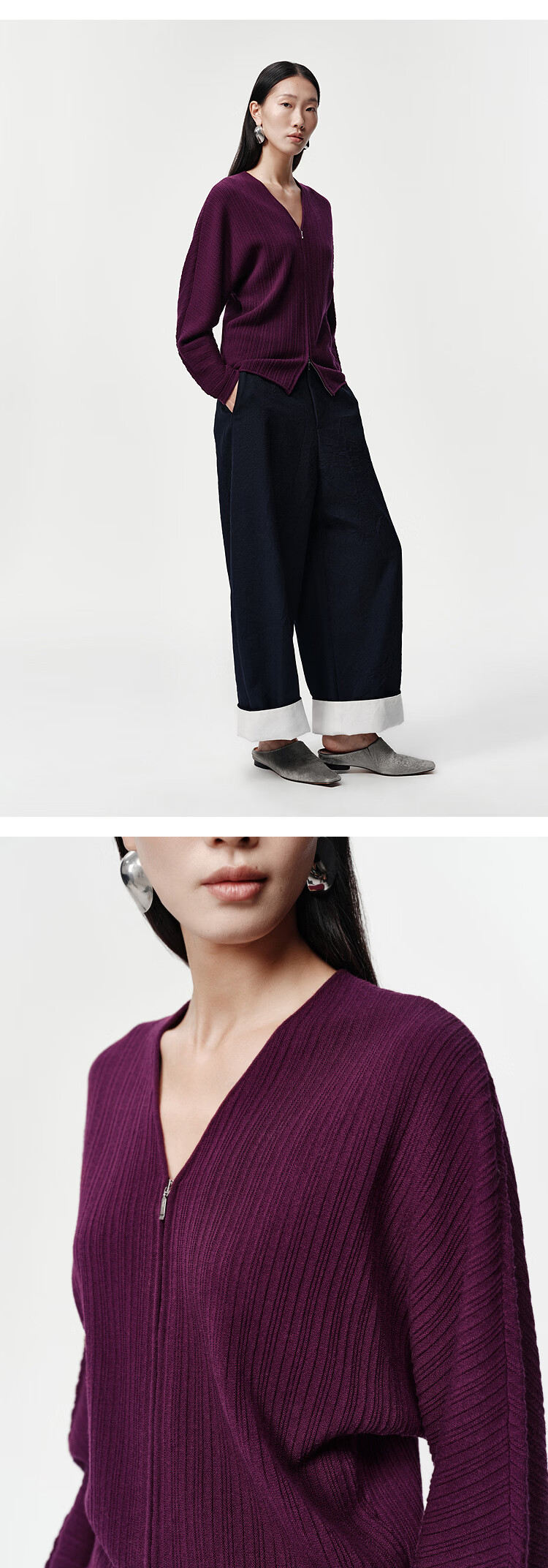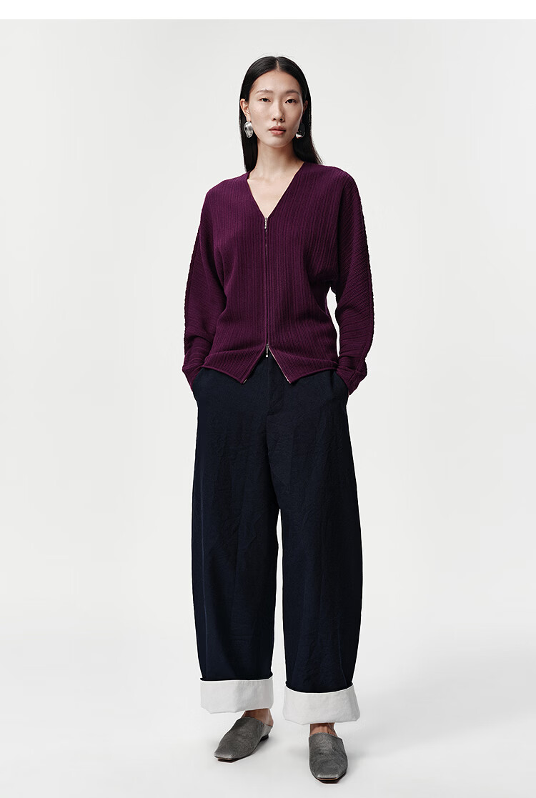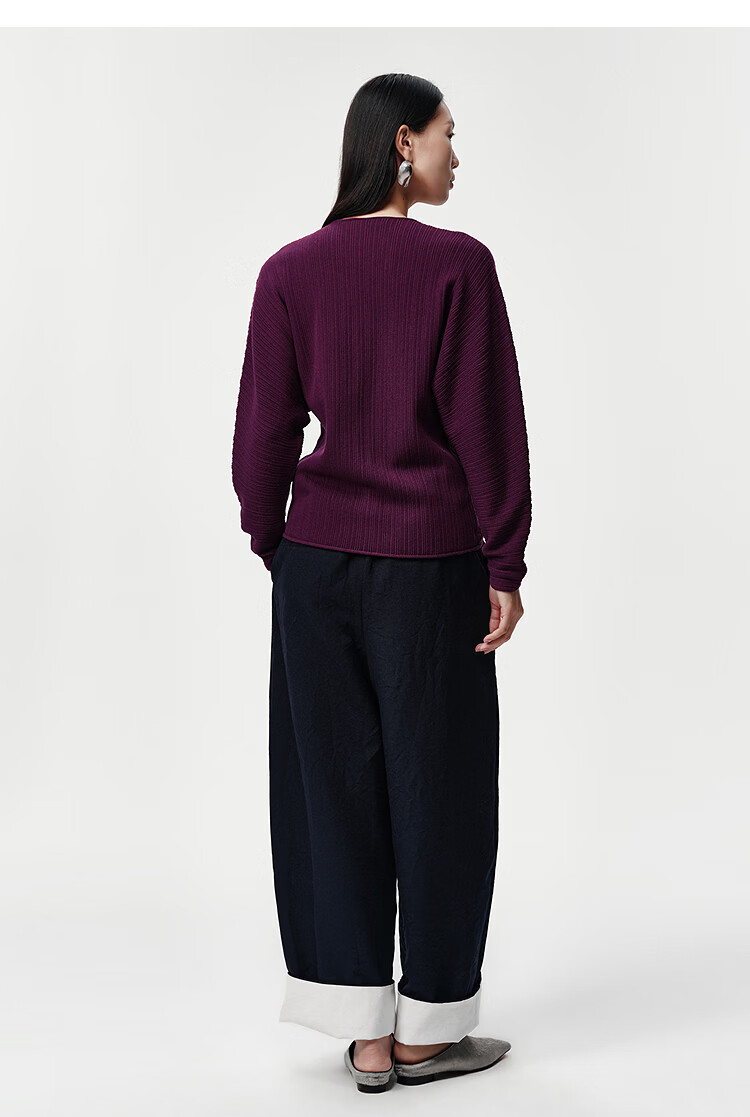 Marisfrolg Strong Twisted Wool Marisfrol 2026 Spring New Burgundy Bat Sleeve Dark Striped Knitted Cardigan Burgundy 2XL
