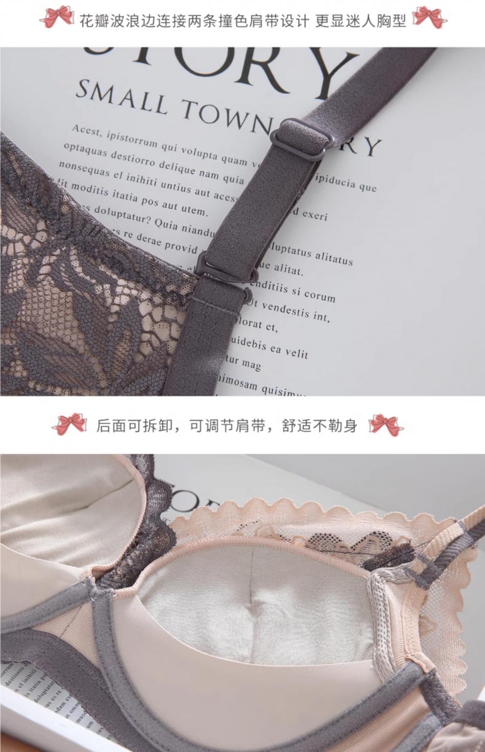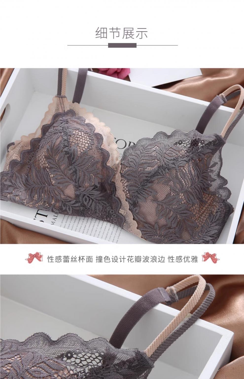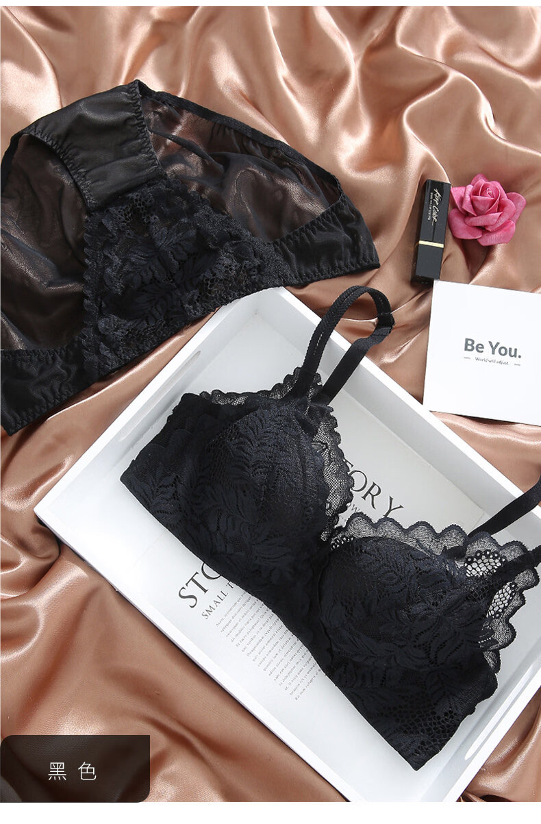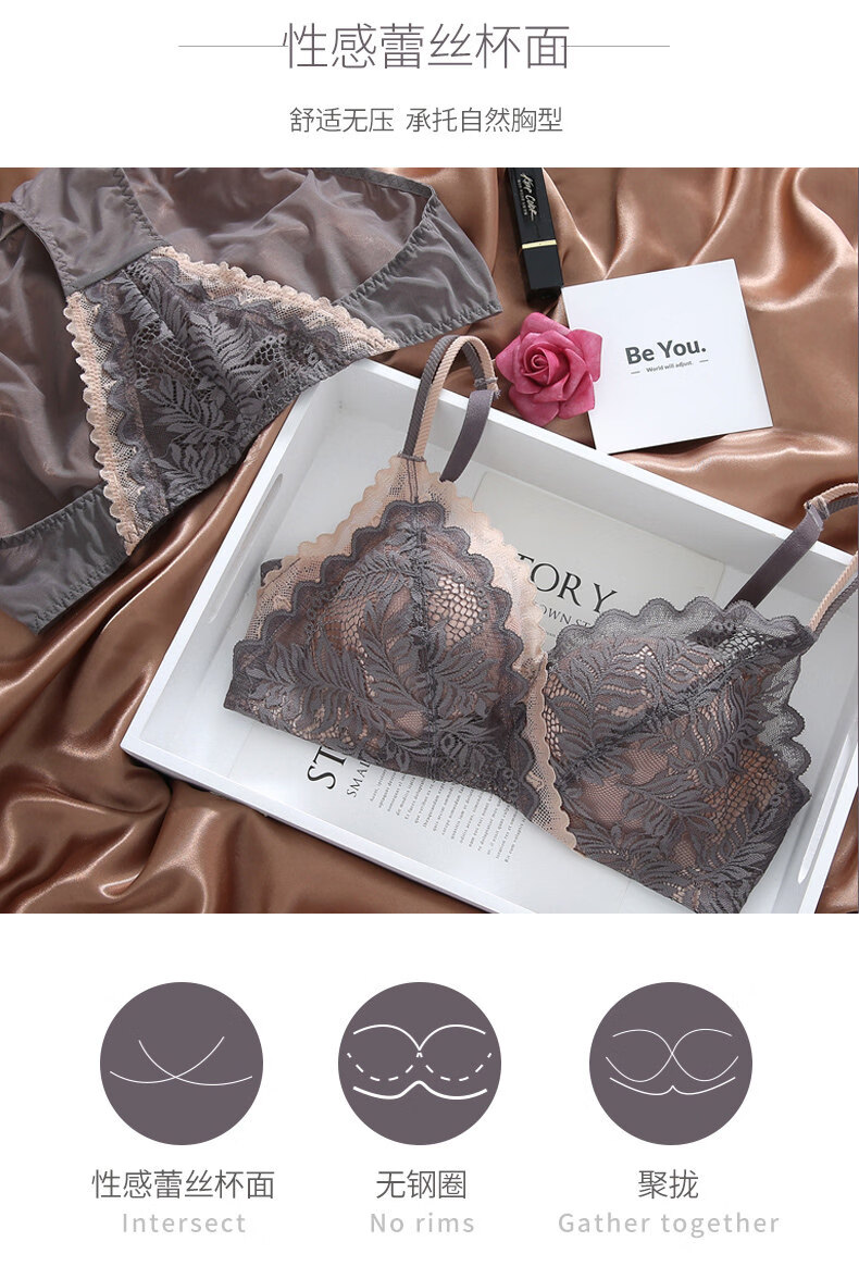 Eresg Light Luxury Brand Underwear Women Small Breasts Gathered No Wire Lace Sexy Underwear Set Underwear Beautiful Back Bra Dark Gray Set + Black Set 75B 7534B