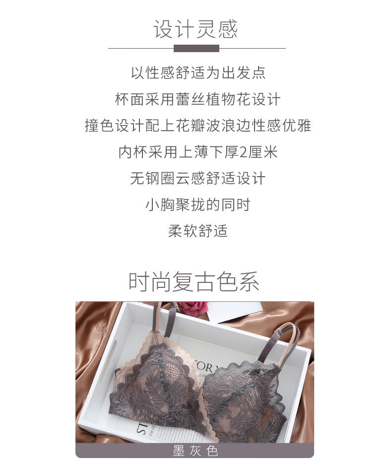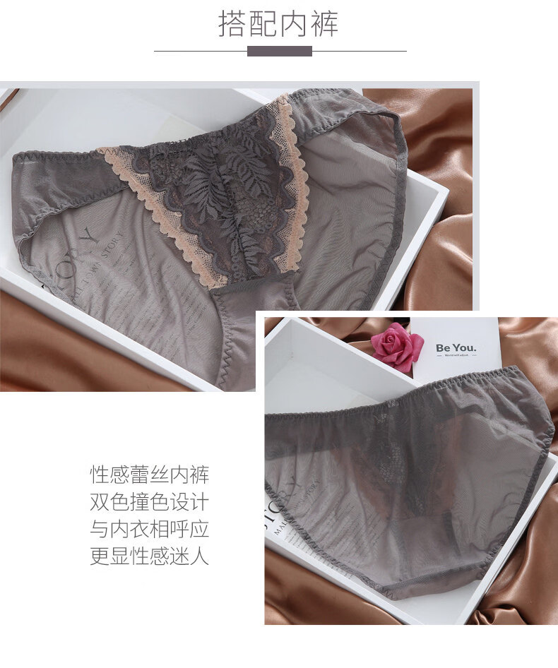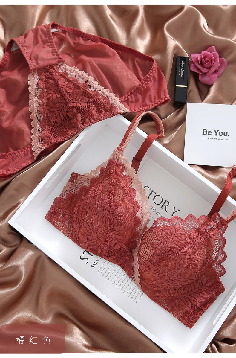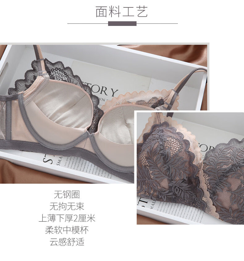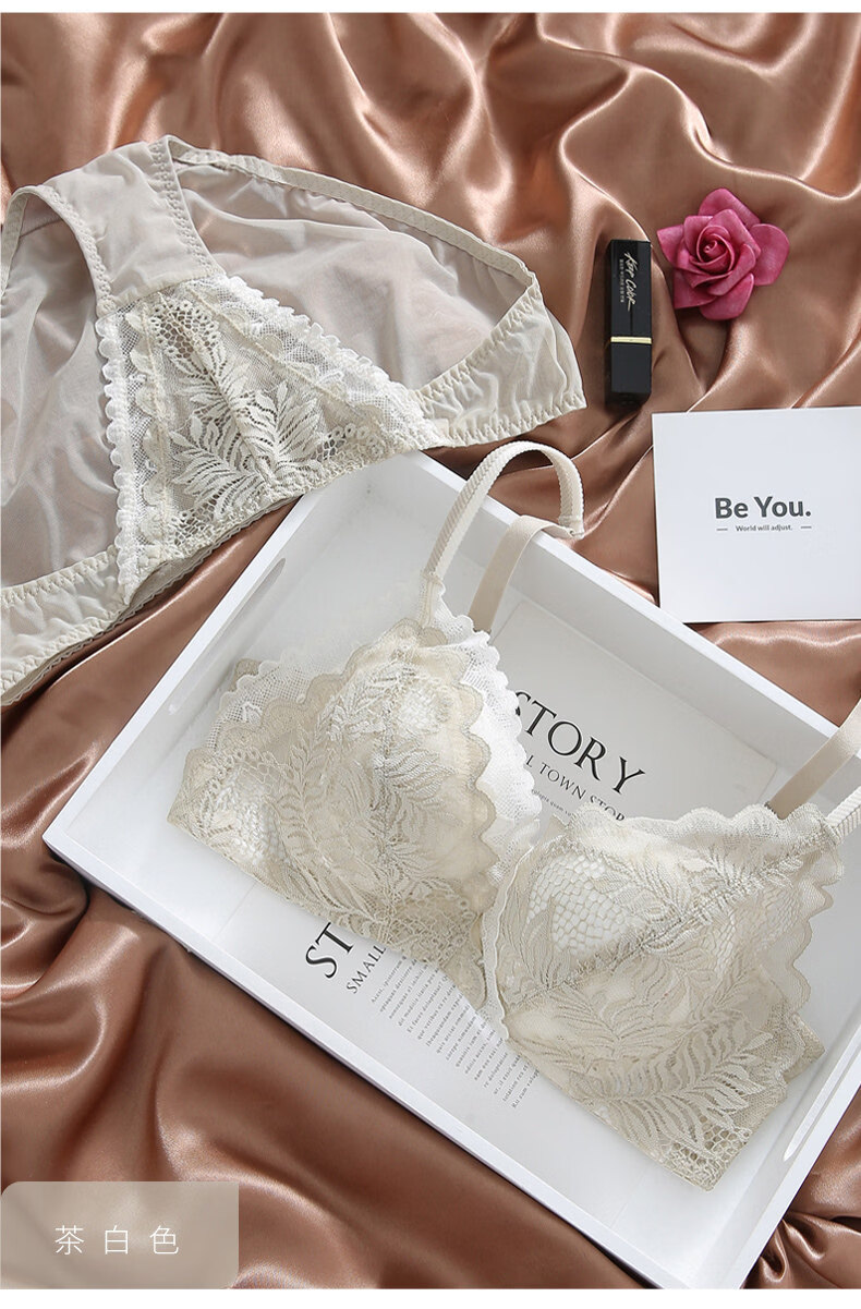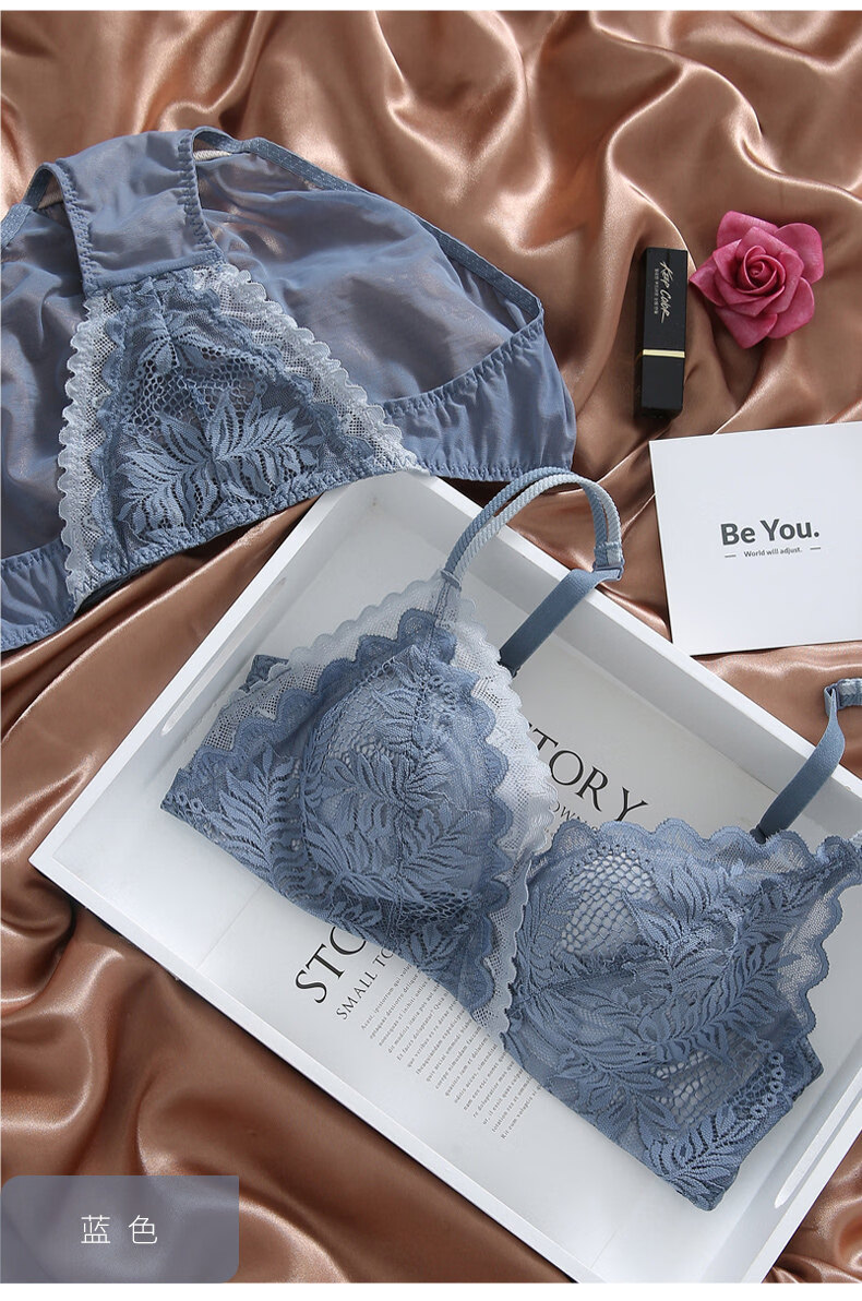 Eresg Light Luxury Brand Underwear Women Small Breasts Gathered No Wire Lace Sexy Underwear Set Underwear Beautiful Back Bra Dark Gray Set + Black Set 75B 7534B