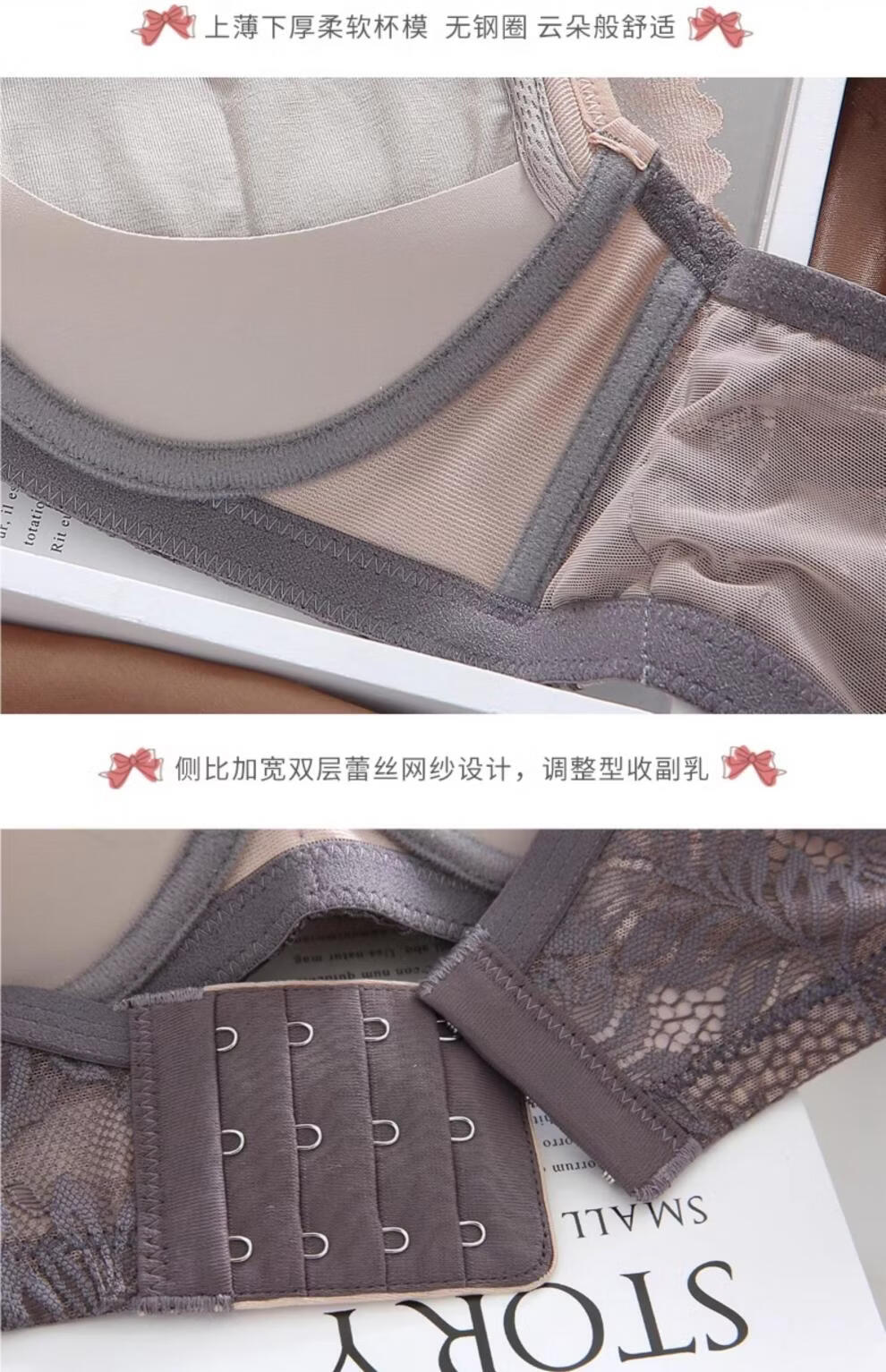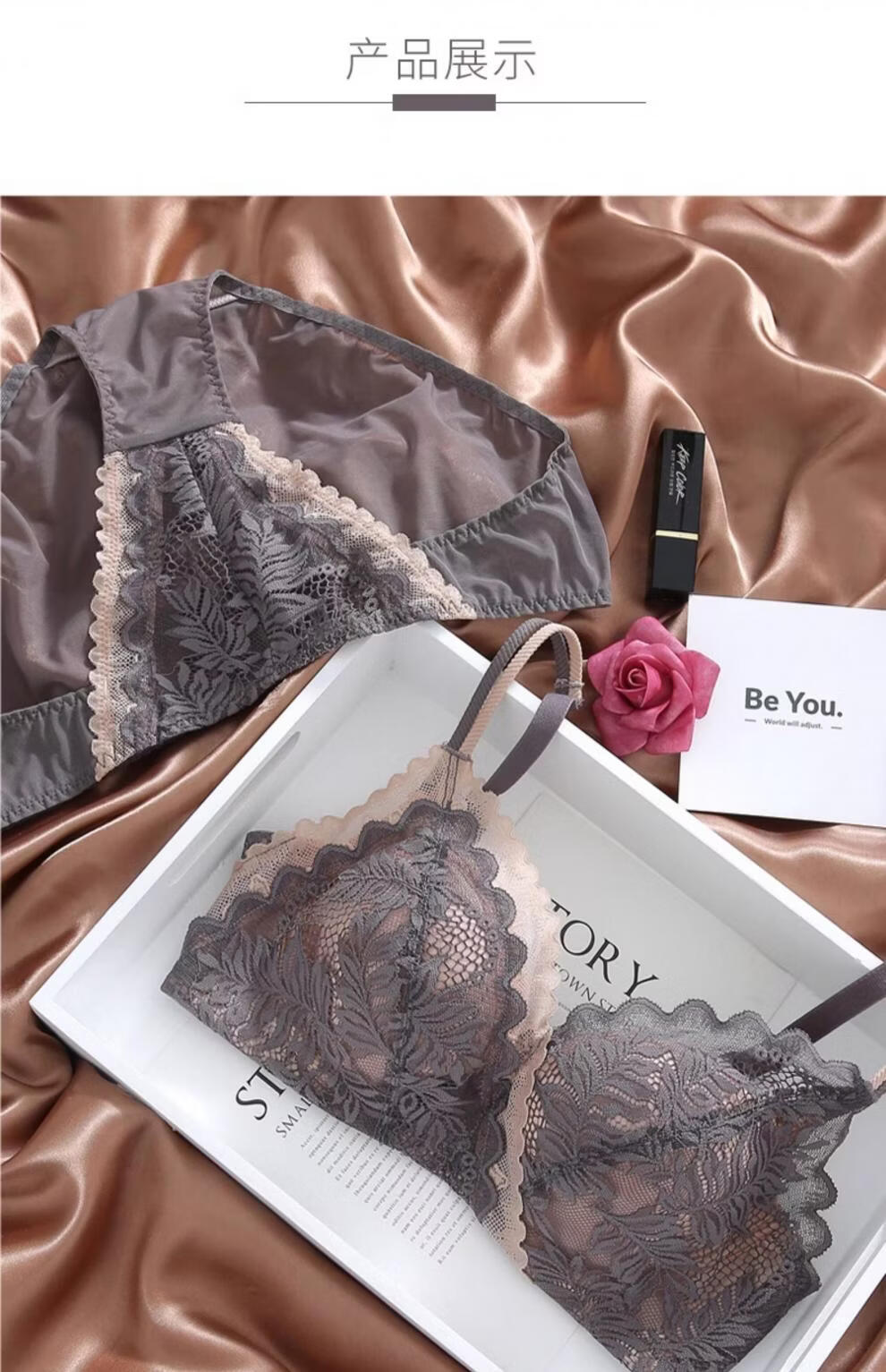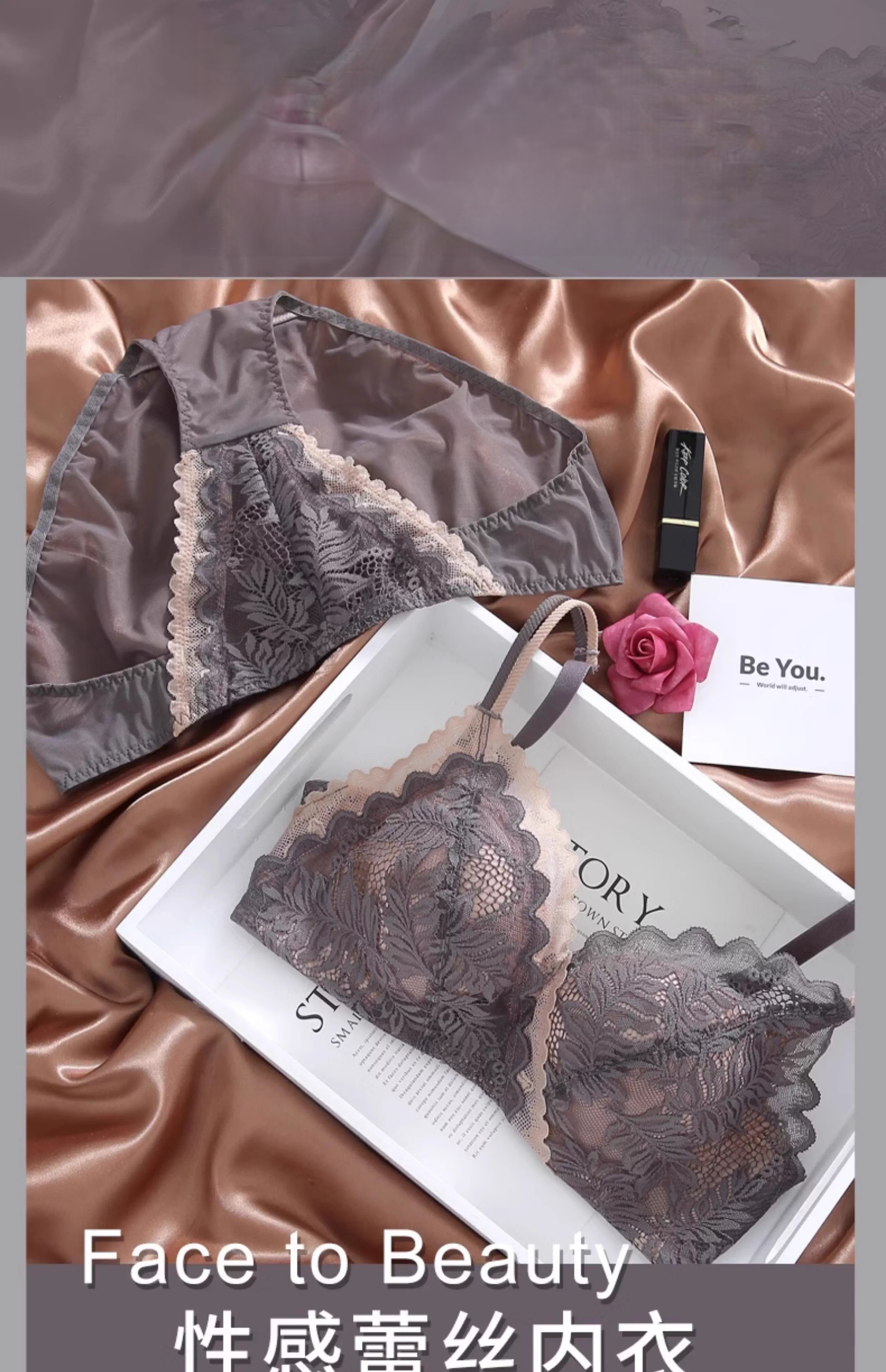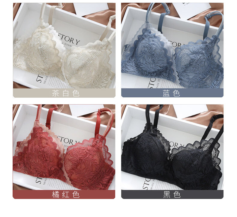 Eresg Light Luxury Brand Underwear Women Small Breasts Gathered No Wire Lace Sexy Underwear Set Underwear Beautiful Back Bra Dark Gray Set + Black Set 75B 7534B