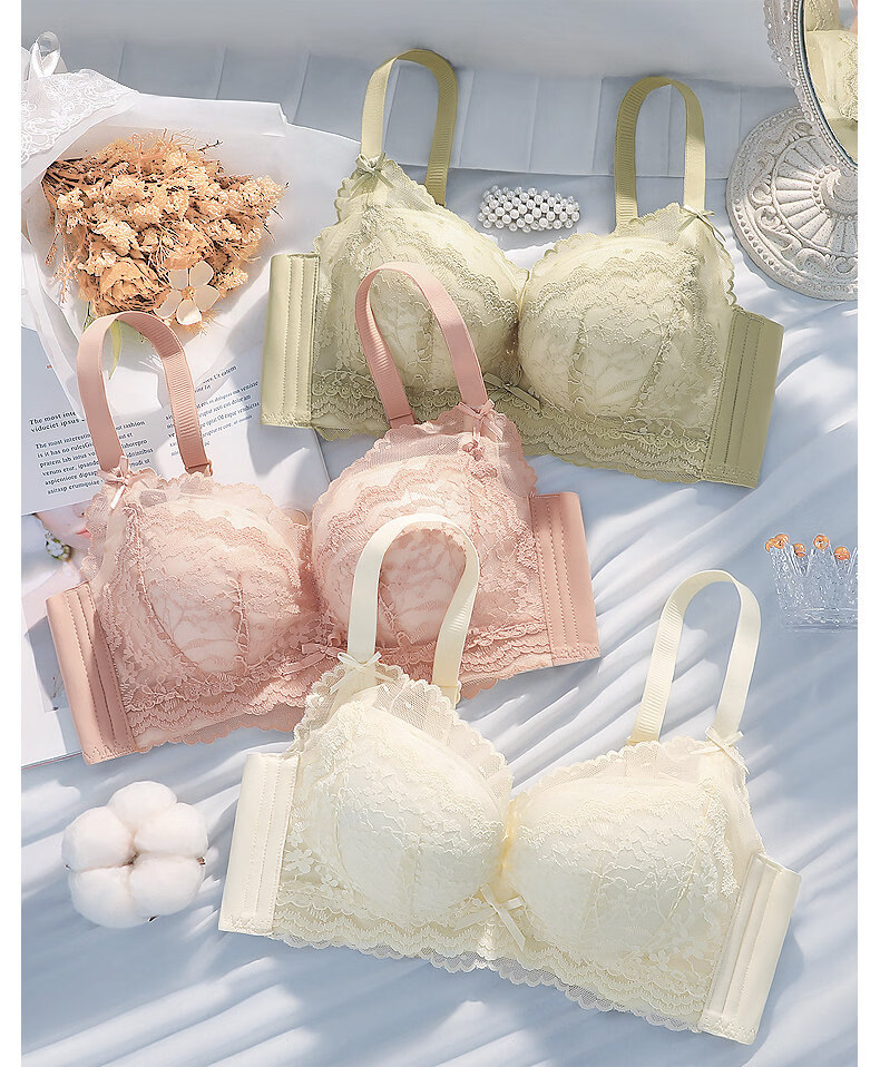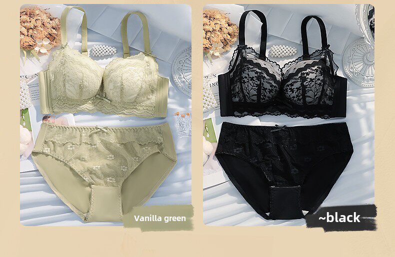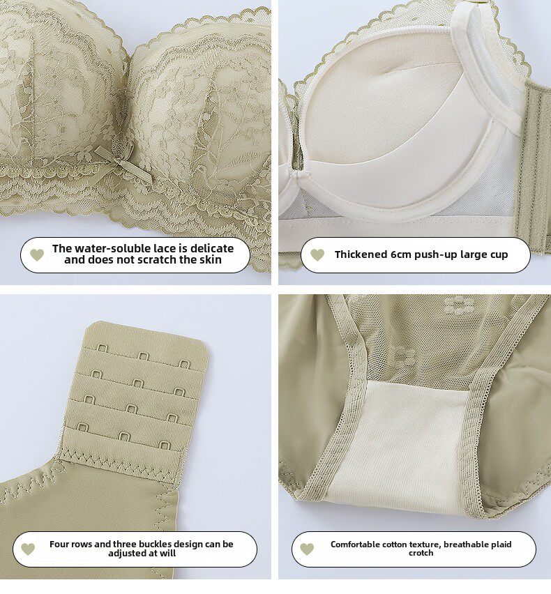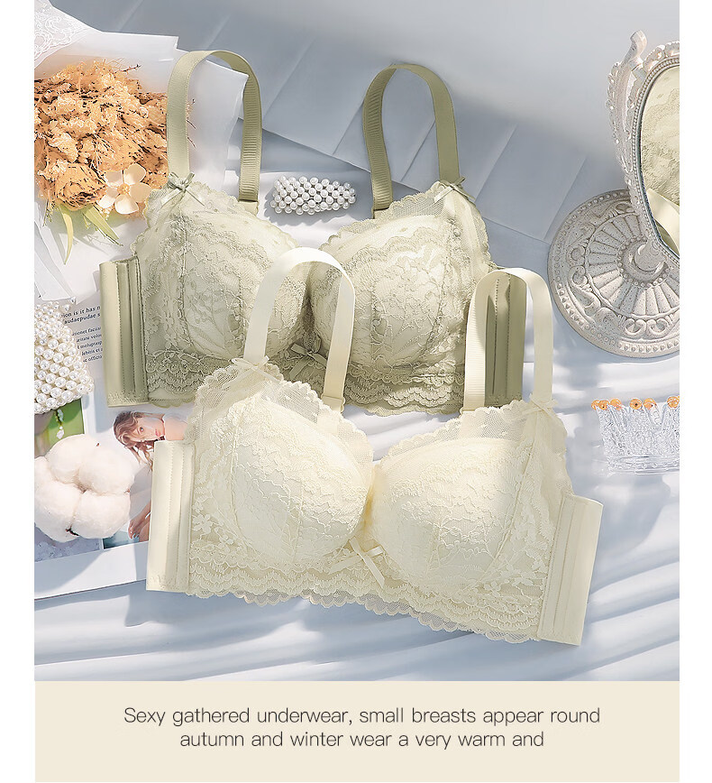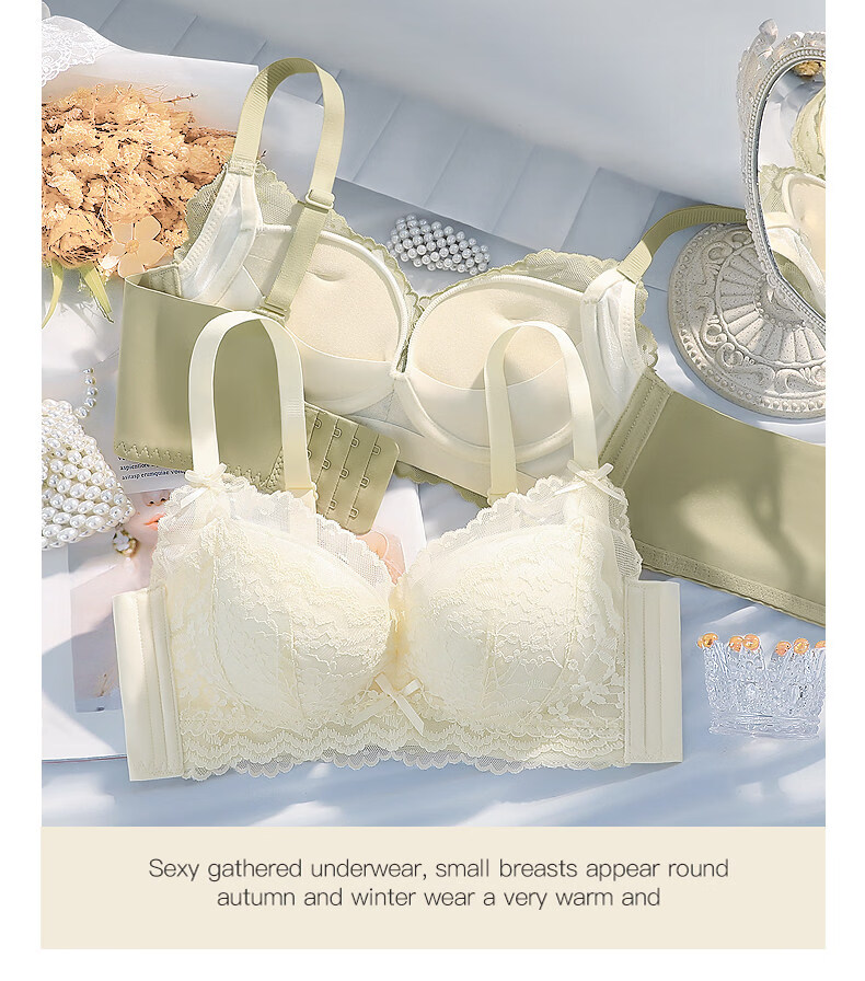Eresg Light Luxury Brand Underwear Women's Thickened Flat Chest Small Breast Gathering Special Large Breast Reduction Anti-Sagging Bra Vanilla Green 2 Pieces 80A 36A