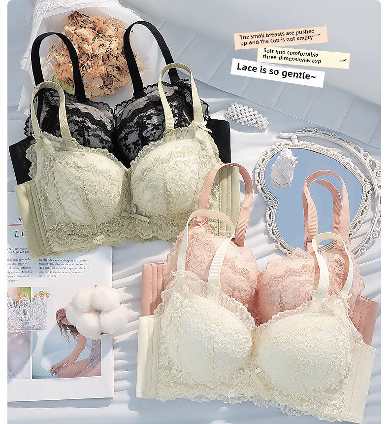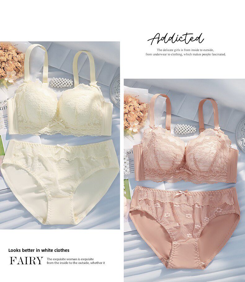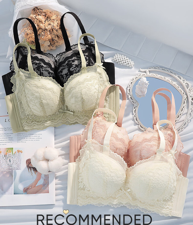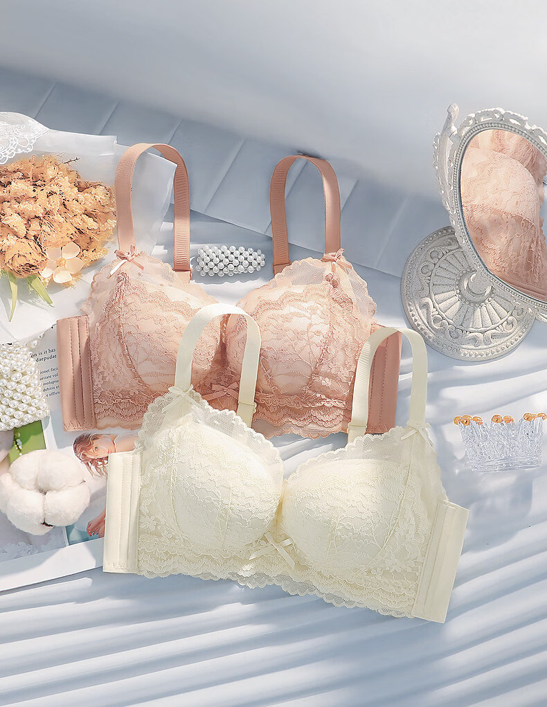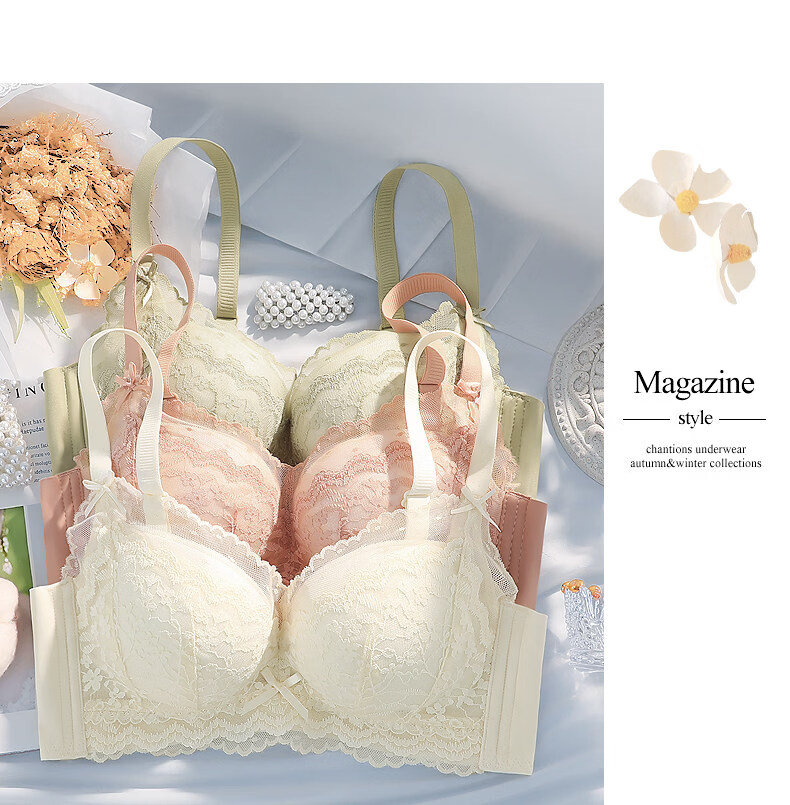 Eresg Light Luxury Brand Underwear Women's Thickened Flat Chest Small Breast Gathering Special Large Breast Reduction Anti-Sagging Bra Vanilla Green 2 Pieces 80A 36A