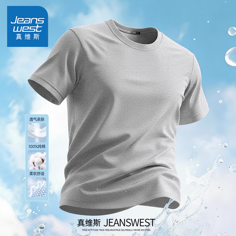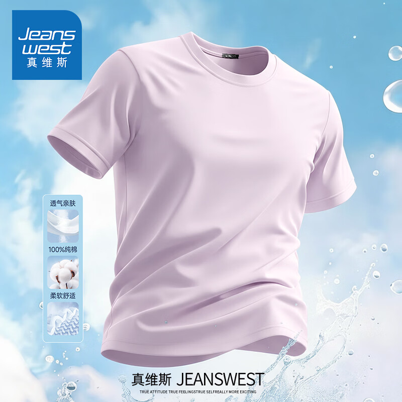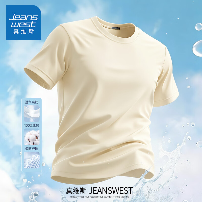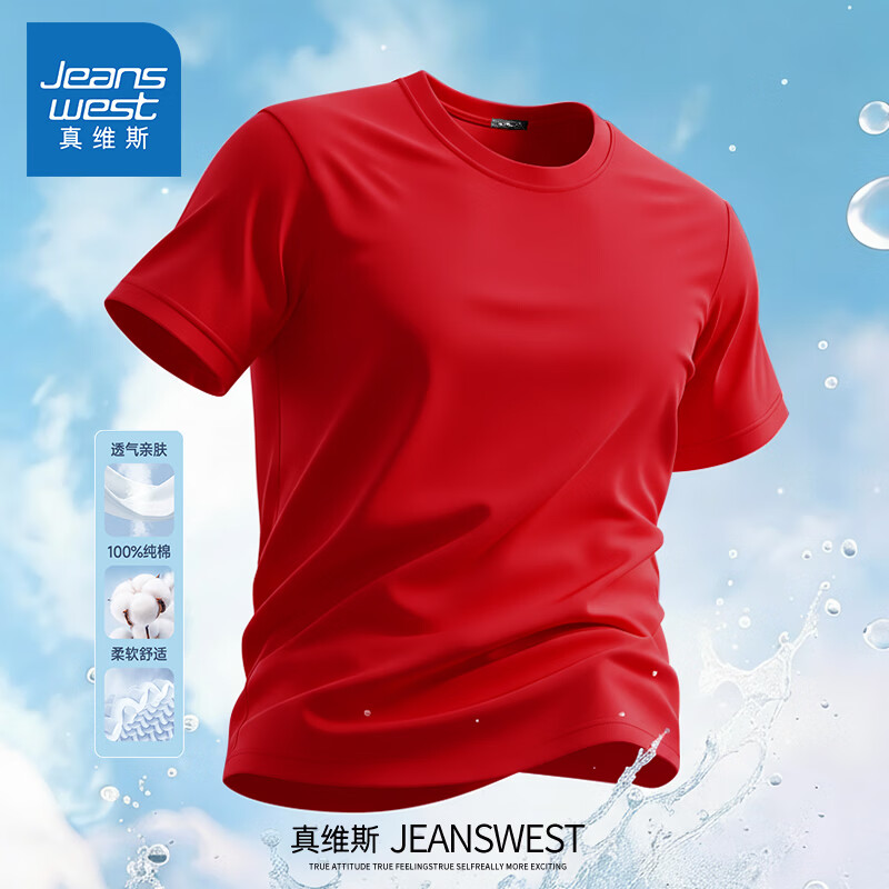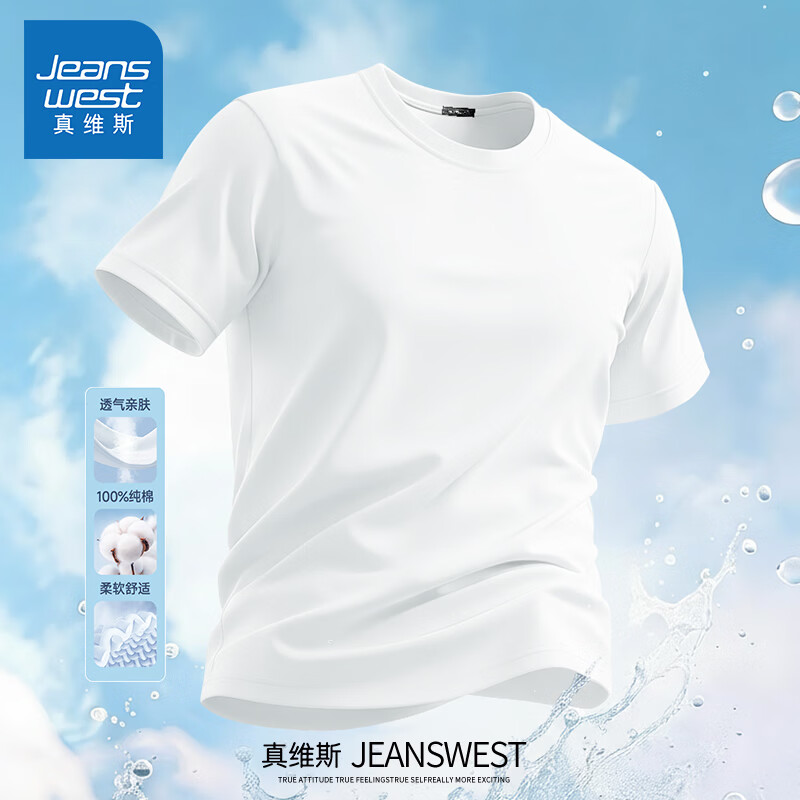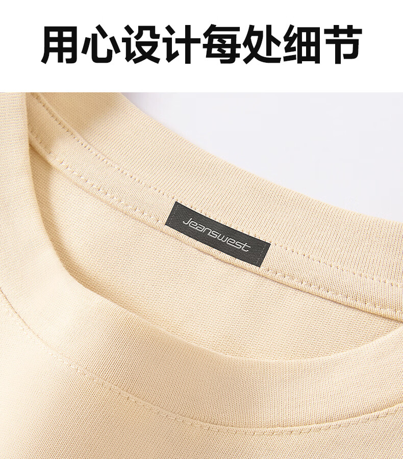 Jeanswest pure cotton short-sleeved t-shirt for men 2026 new fashion brand retro heavyweight loose half-sleeved men's large size design top white (warm heart bark chest logo) S (165) (strict quality control)