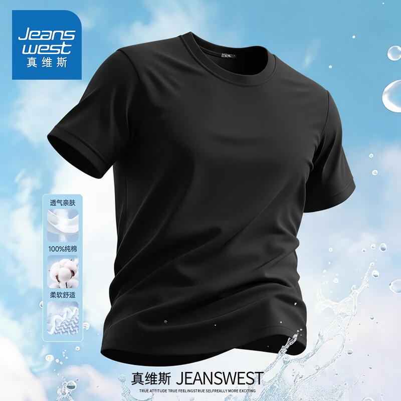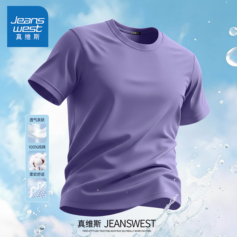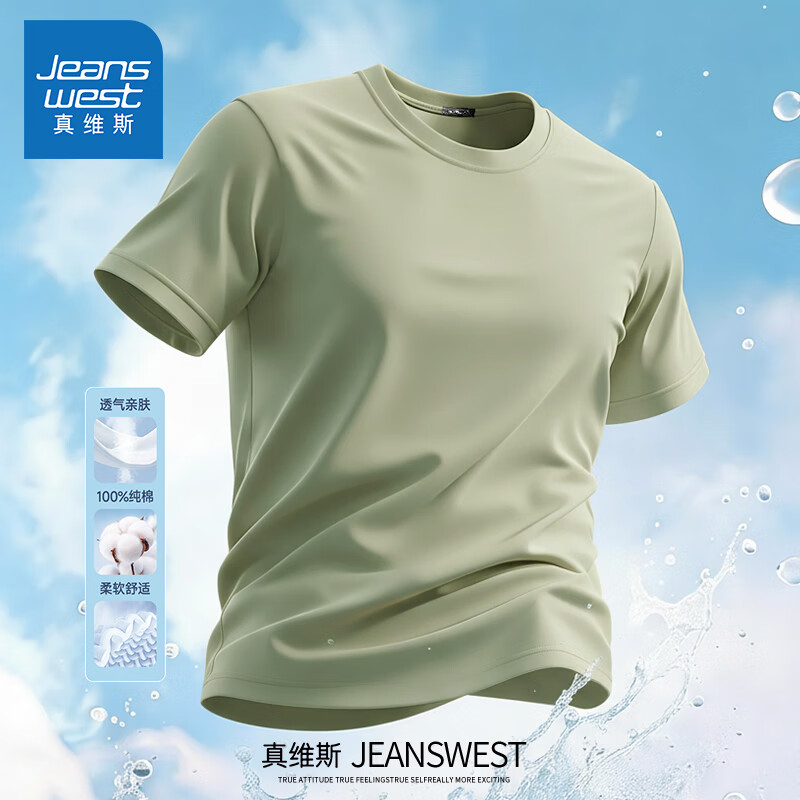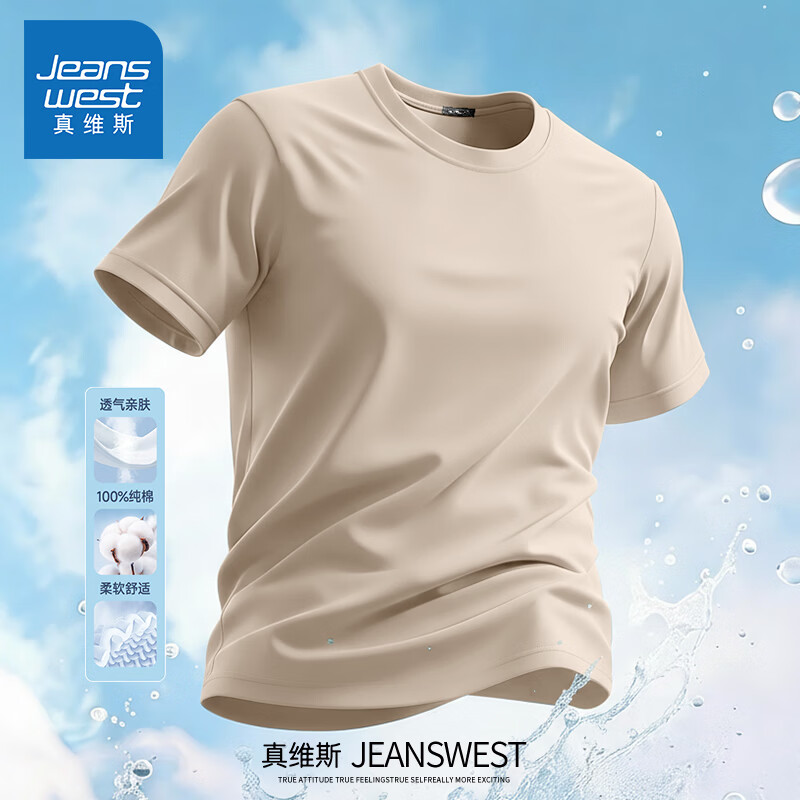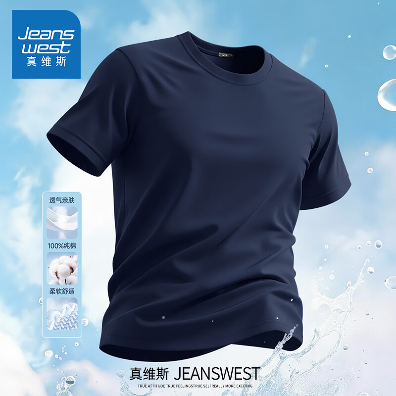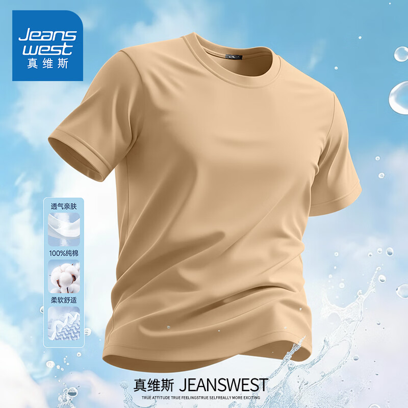 Jeanswest pure cotton short-sleeved t-shirt for men 2026 new fashion brand retro heavyweight loose half-sleeved men's large size design top white (warm heart bark chest logo) S (165) (strict quality control)