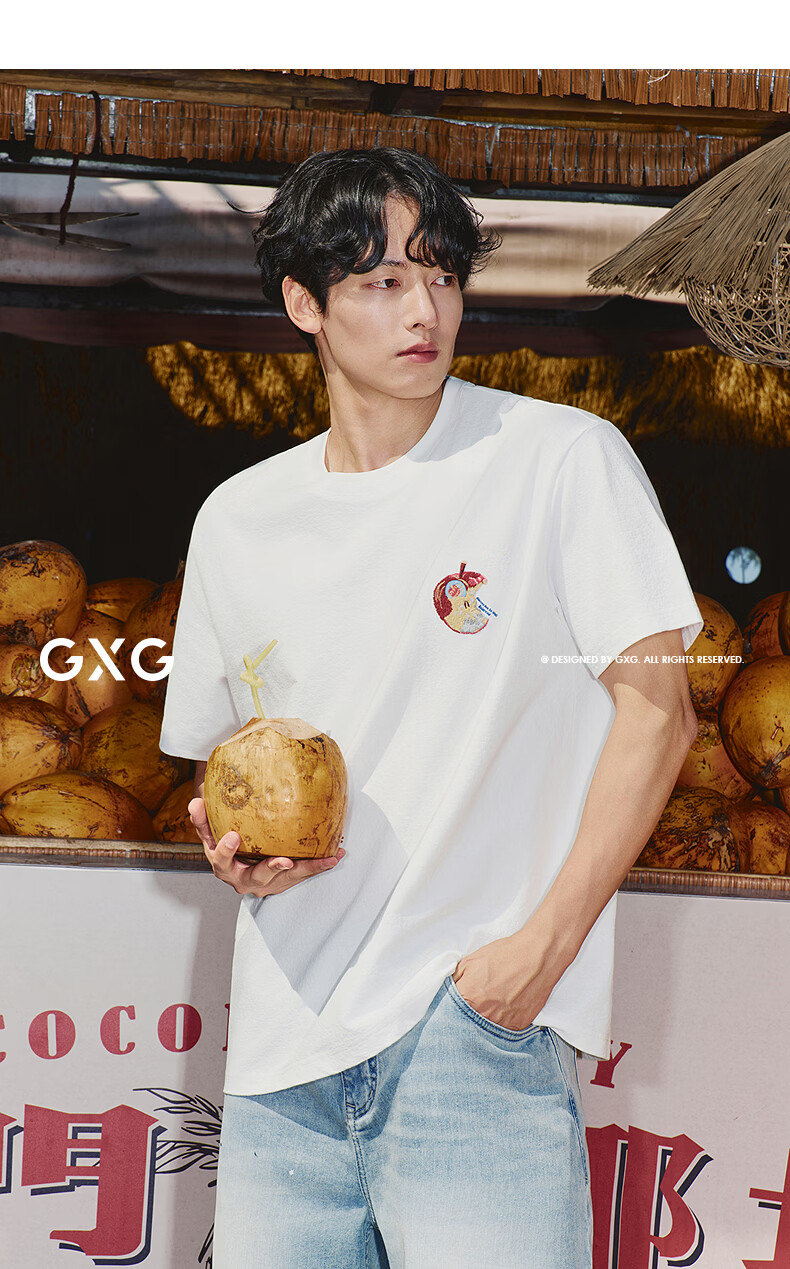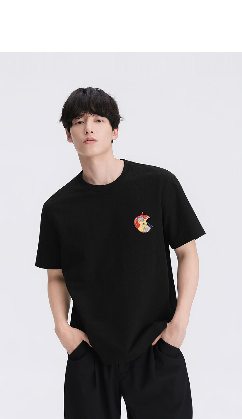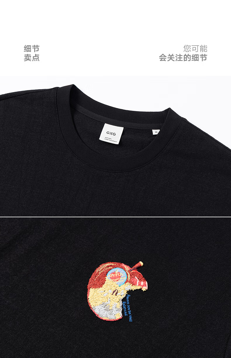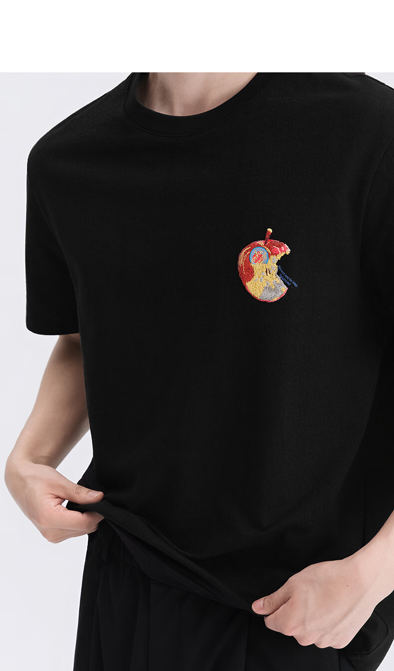 GXG men's short-sleeved T-shirt cool Apple small label texture material short-sleeved knitted 2026 summer new product black L