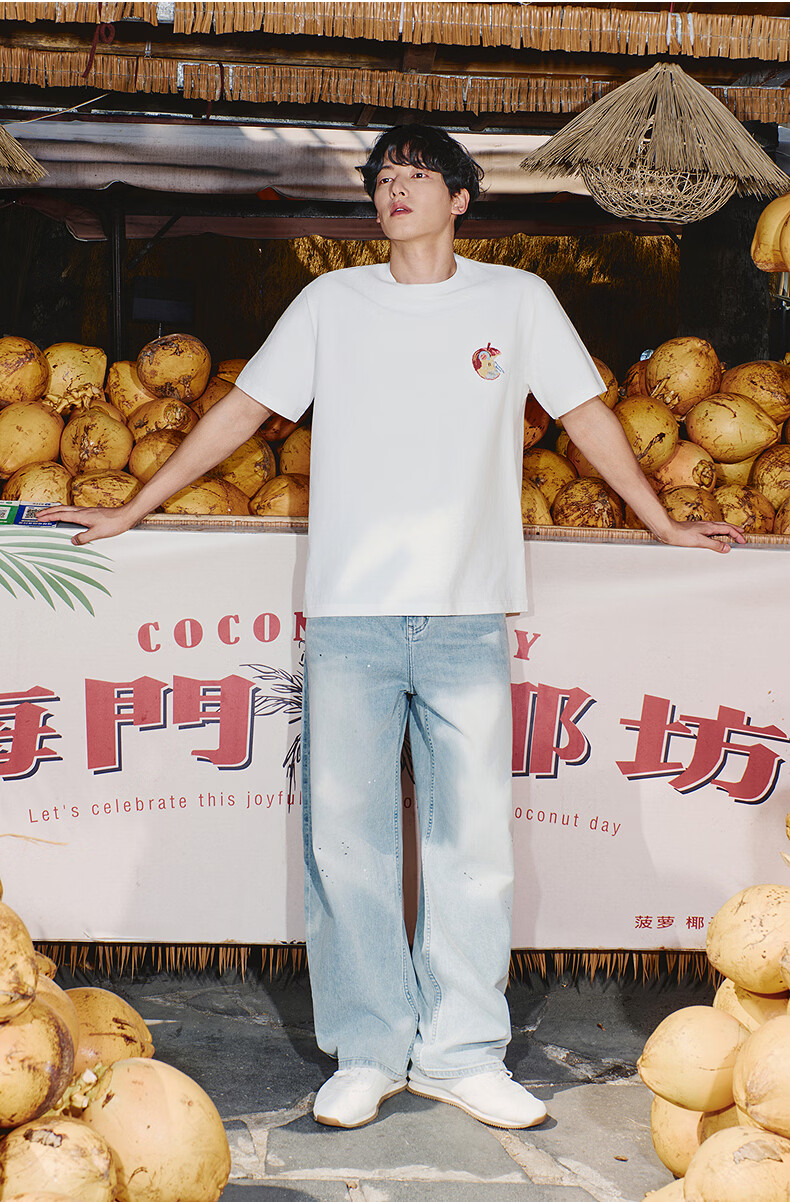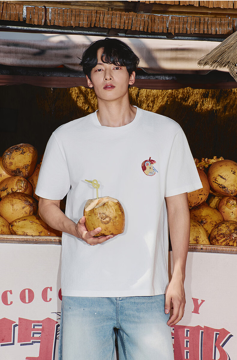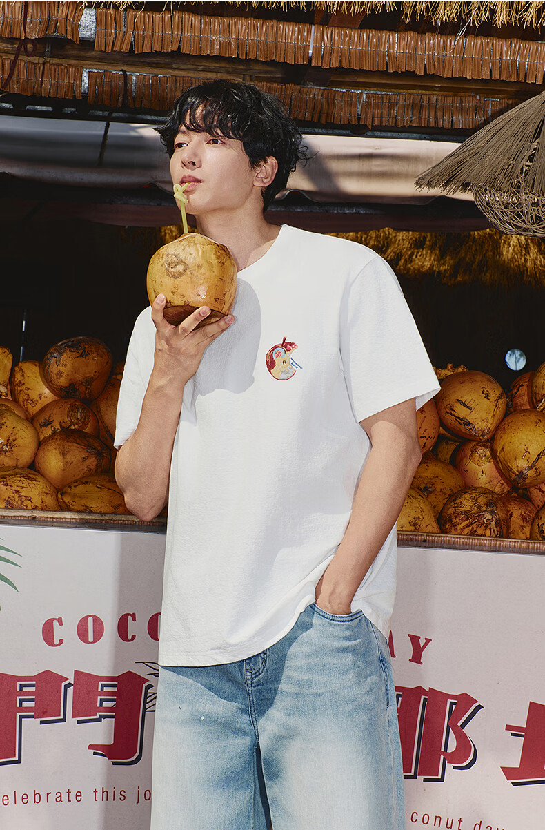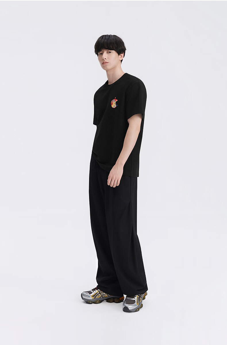 GXG men's short-sleeved T-shirt cool Apple small label texture material short-sleeved knitted 2026 summer new product black L