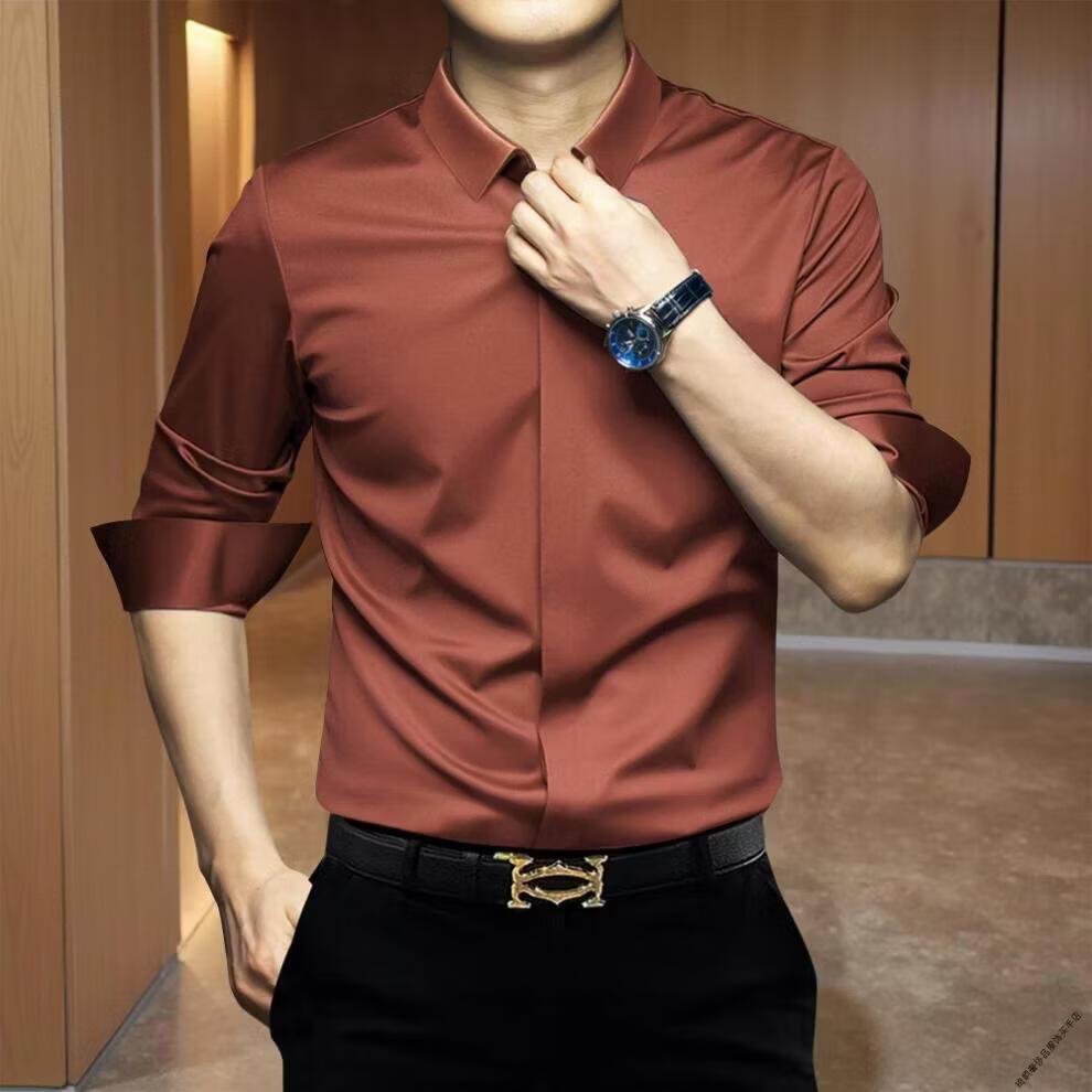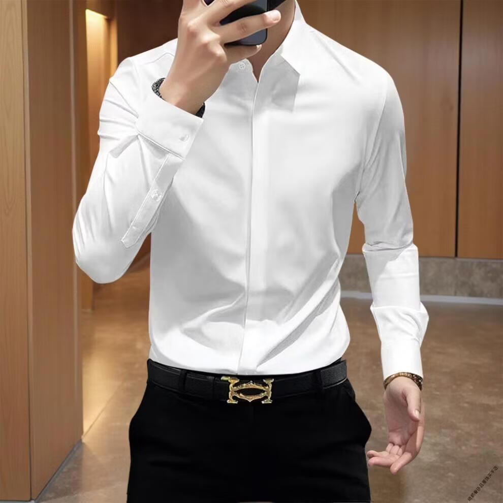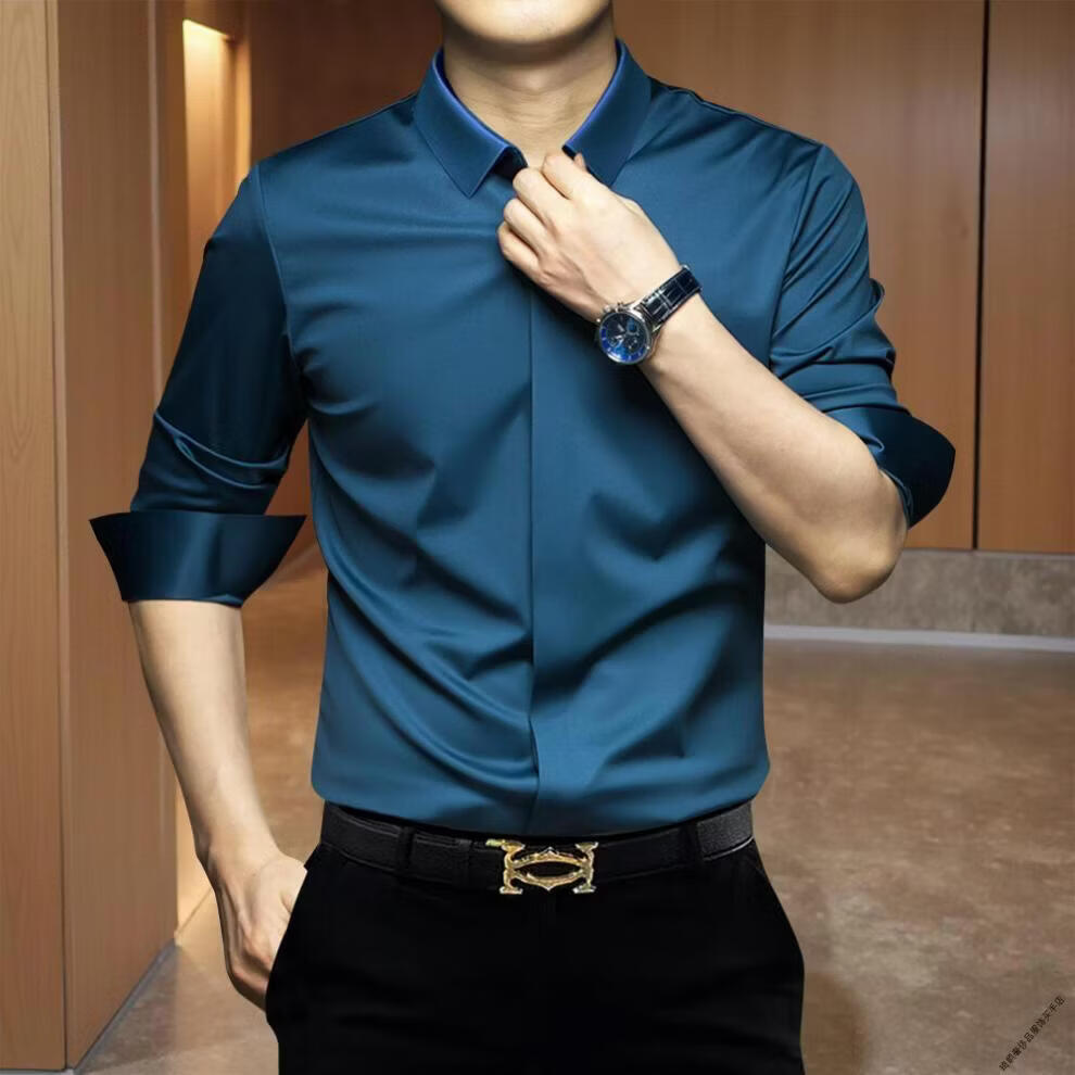GEA light luxury men's shirt men's elastic slim fit seamless ironing-free anti-wrinkle business casual solid color men's long-sleeved shirt dark blue M recommended 120Jin Jin is equal to 0.5 kg within