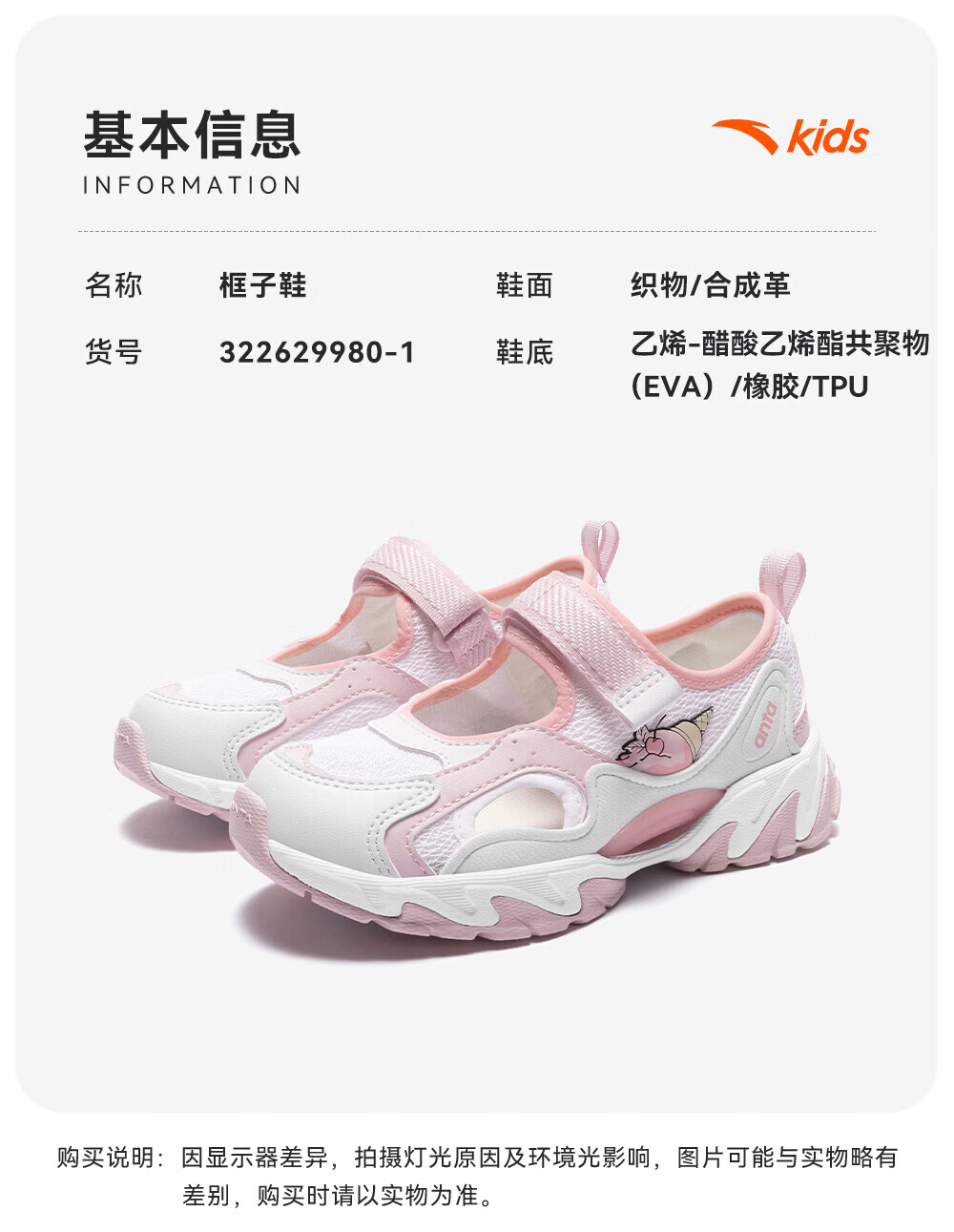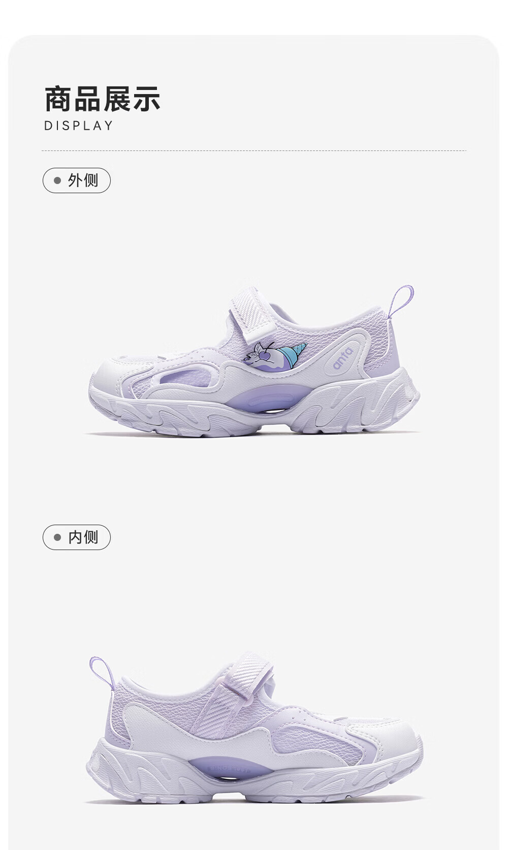 ANTA Children's Beach Shoes Little Girl Mary Jane 322629980 Misty Purple/Anta White-3 31