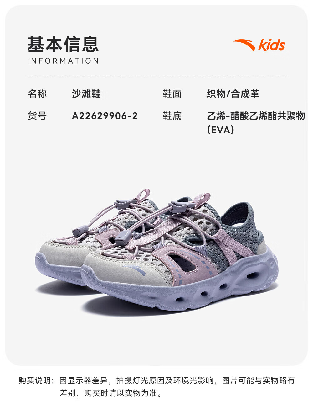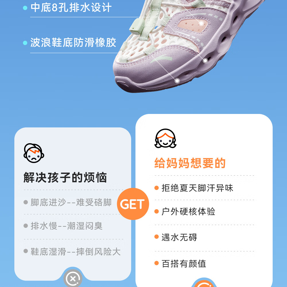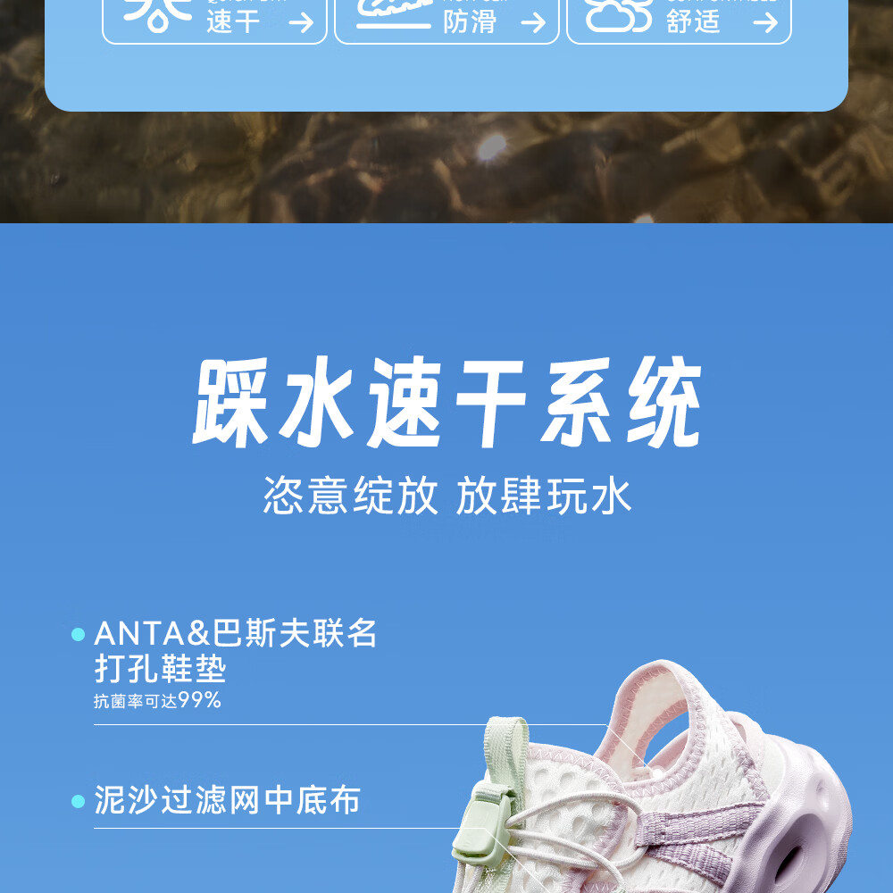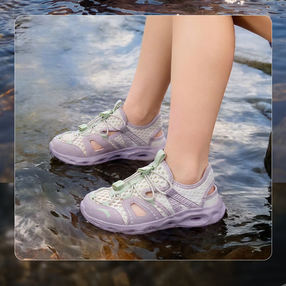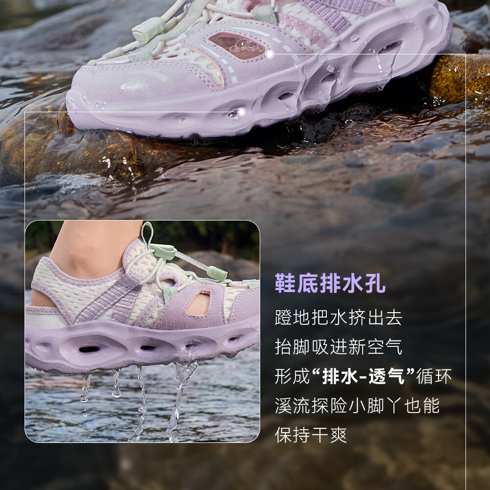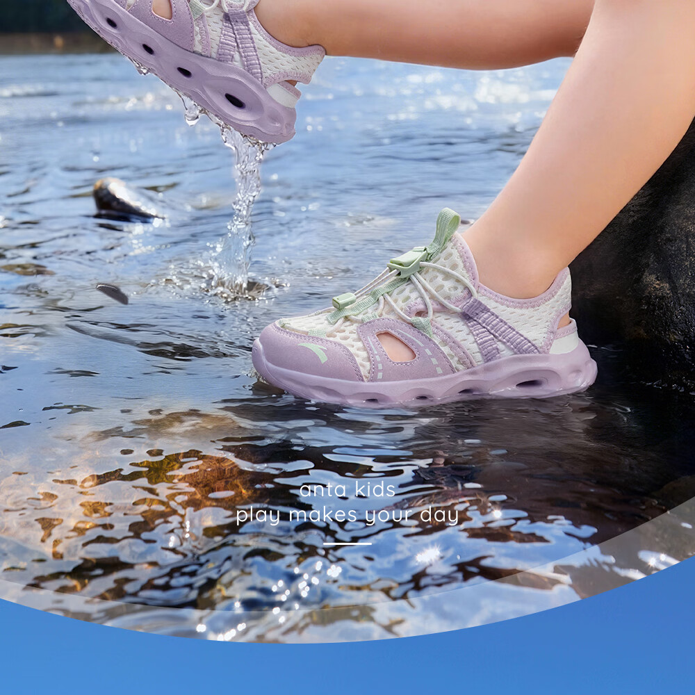 ANTA Children's Beach Shoes Girls' River Tracing Shoes Water King 2026 Summer New Outdoor Non-Slip Toe Sandals Chalk-5 28
