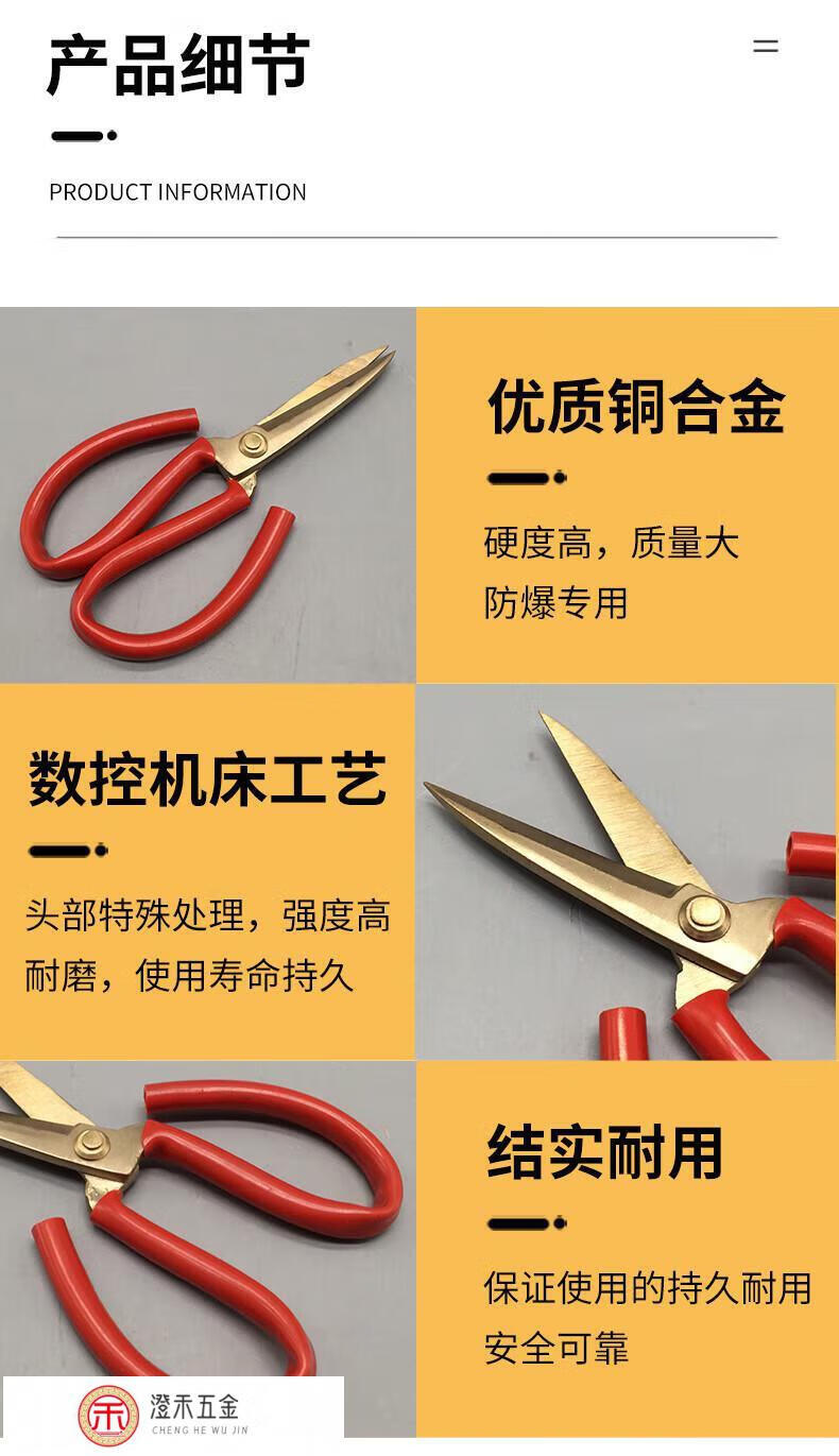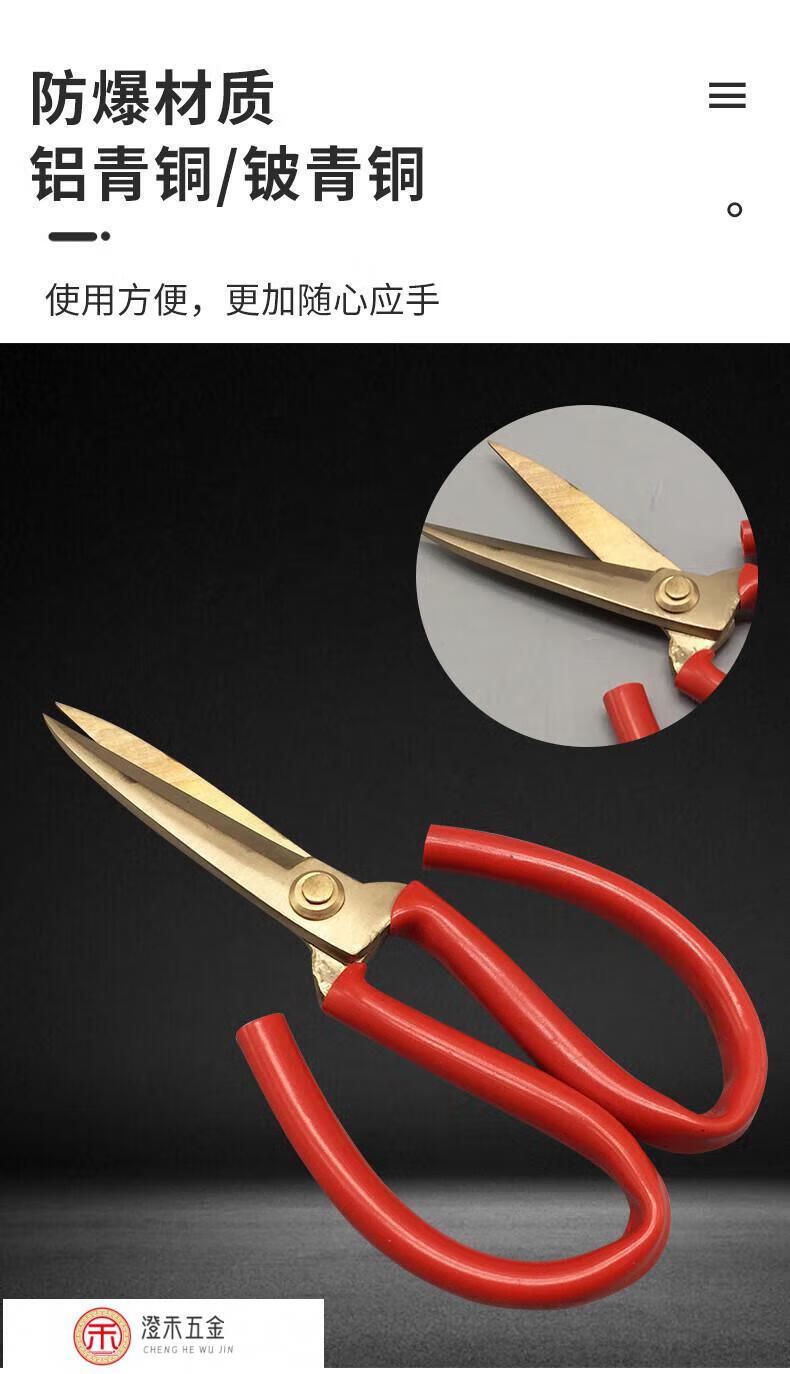 FHJQB explosion-proof tools explosion-proof scissors copper scissors explosion-proof craft scissors copper iron scissors copper alloy cloth scissors aluminum bronze 200mm 8 inches