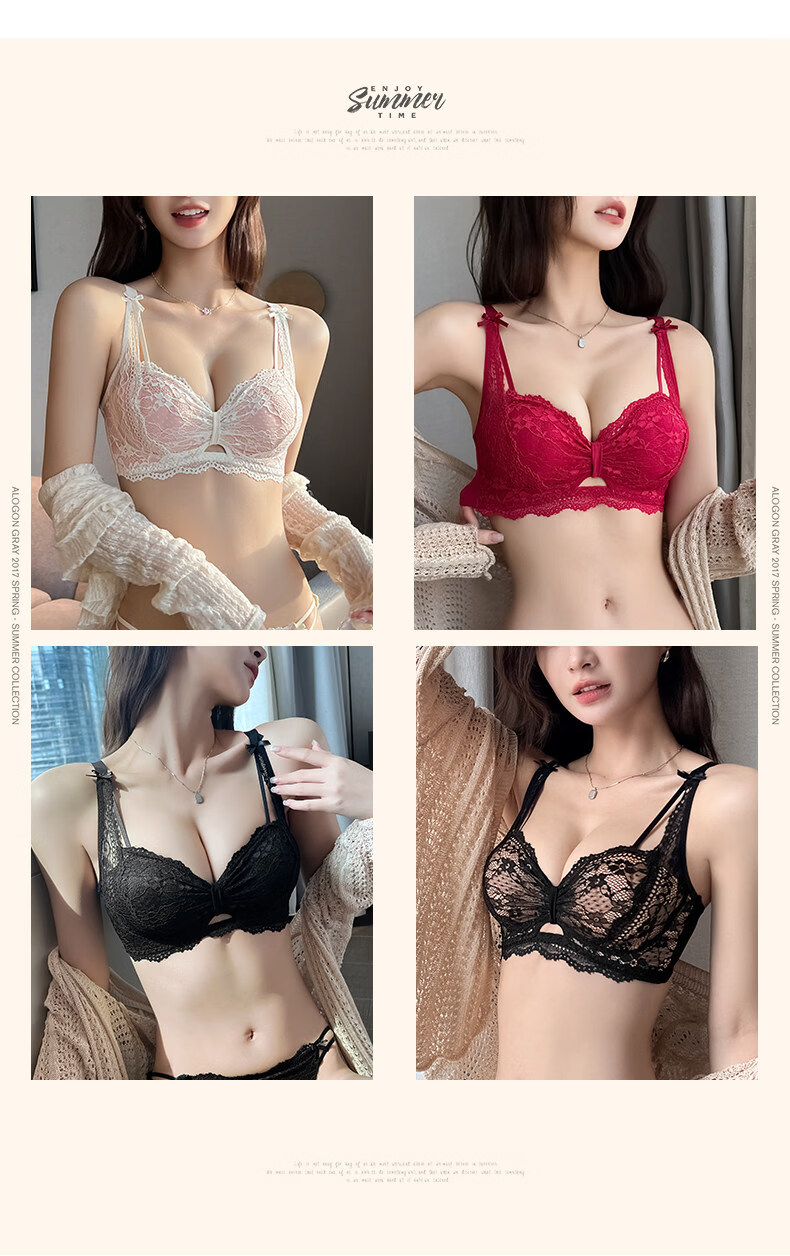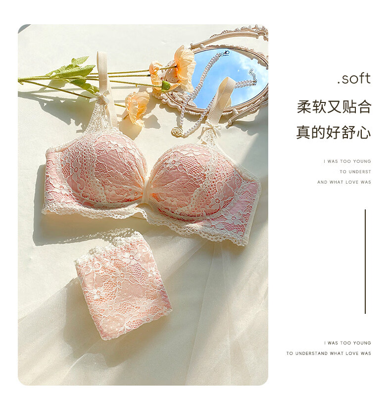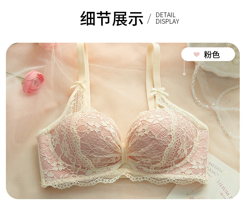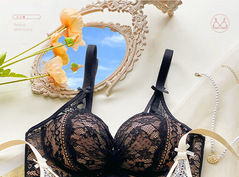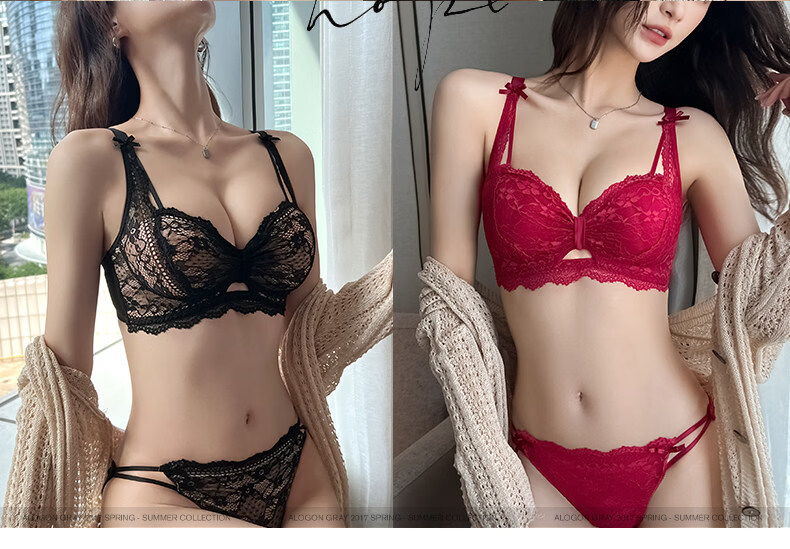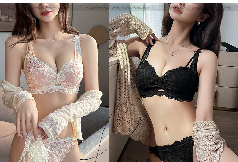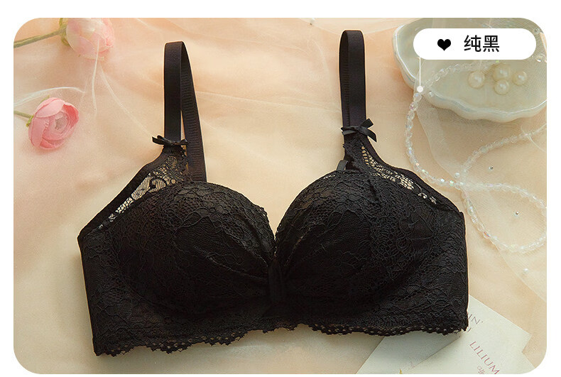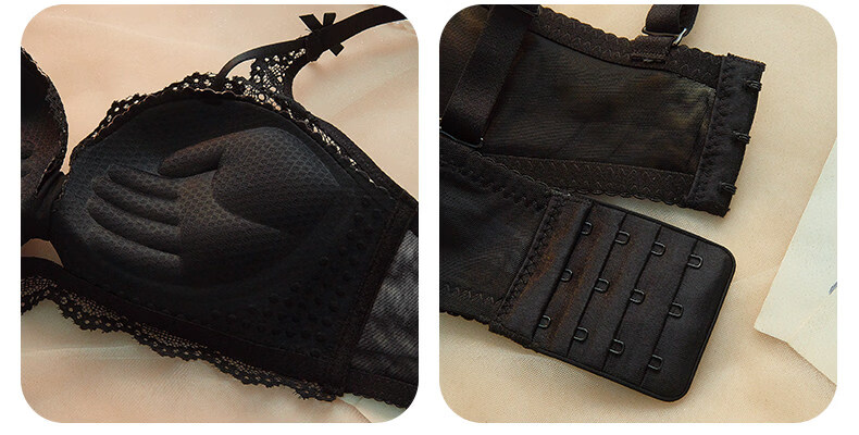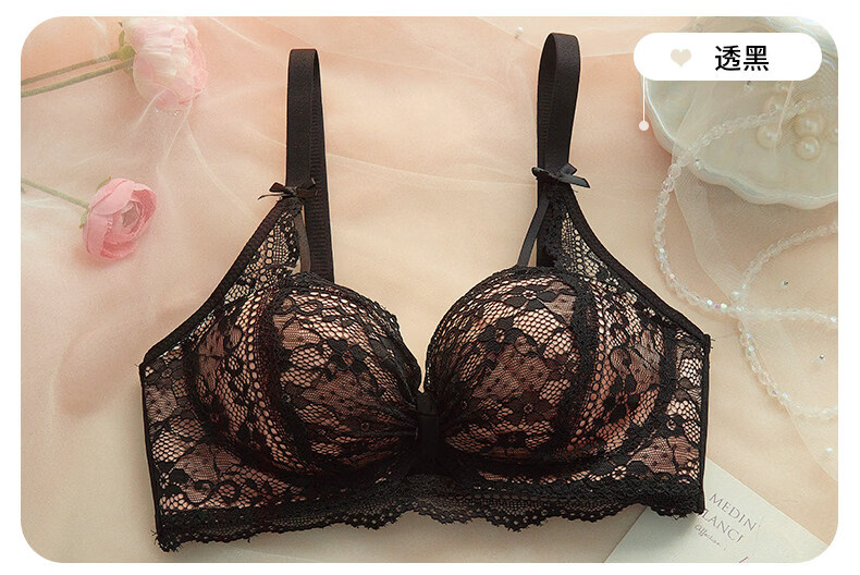 Eresg Light Luxury Brand Underwear Women's Small Breasts Gather Big Sexy Pure Desire Lace Panties Bra Pink Suit + Pure Black Suit 75B Recommended 3475AB