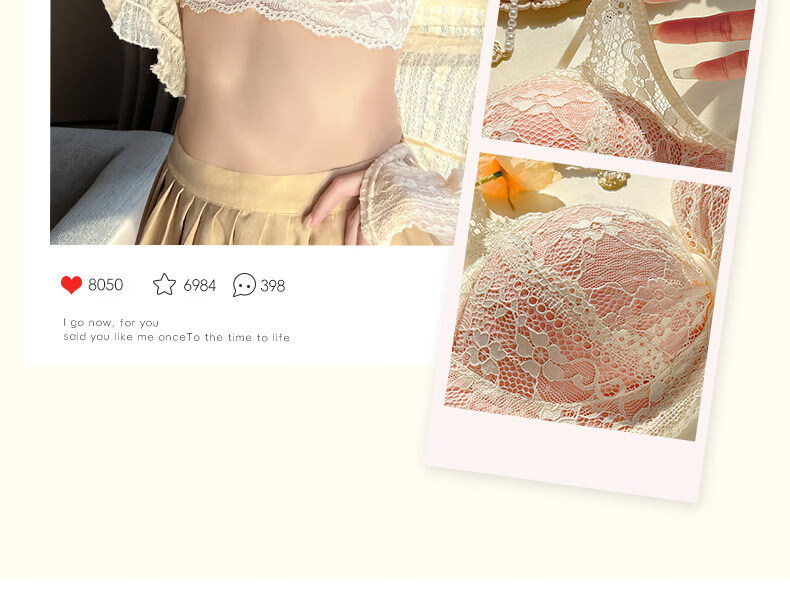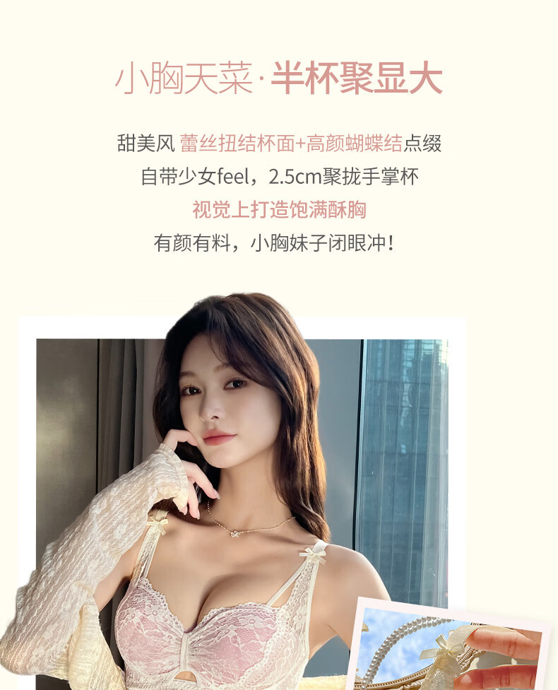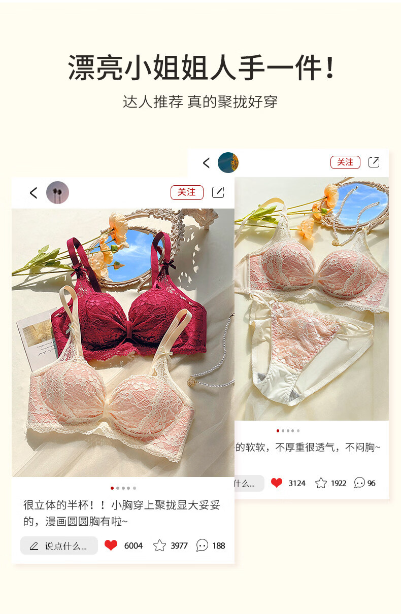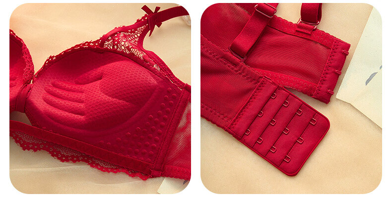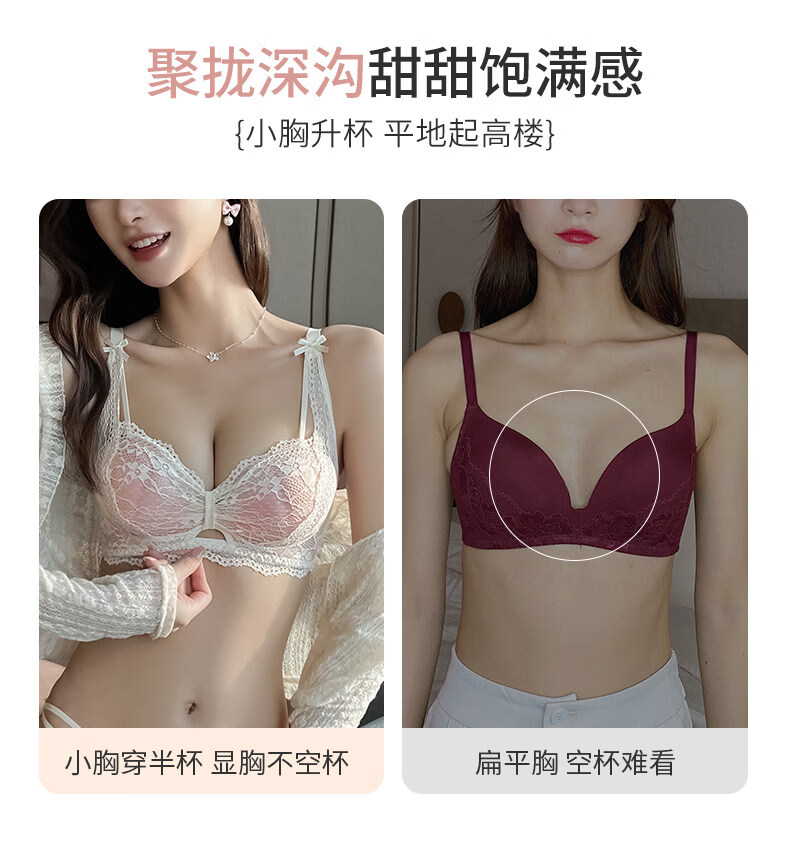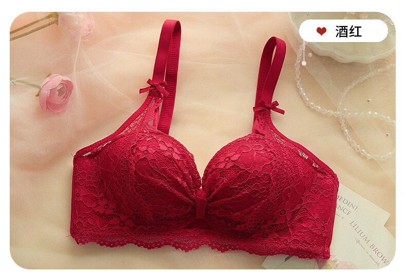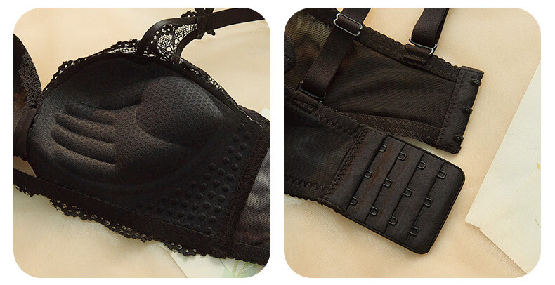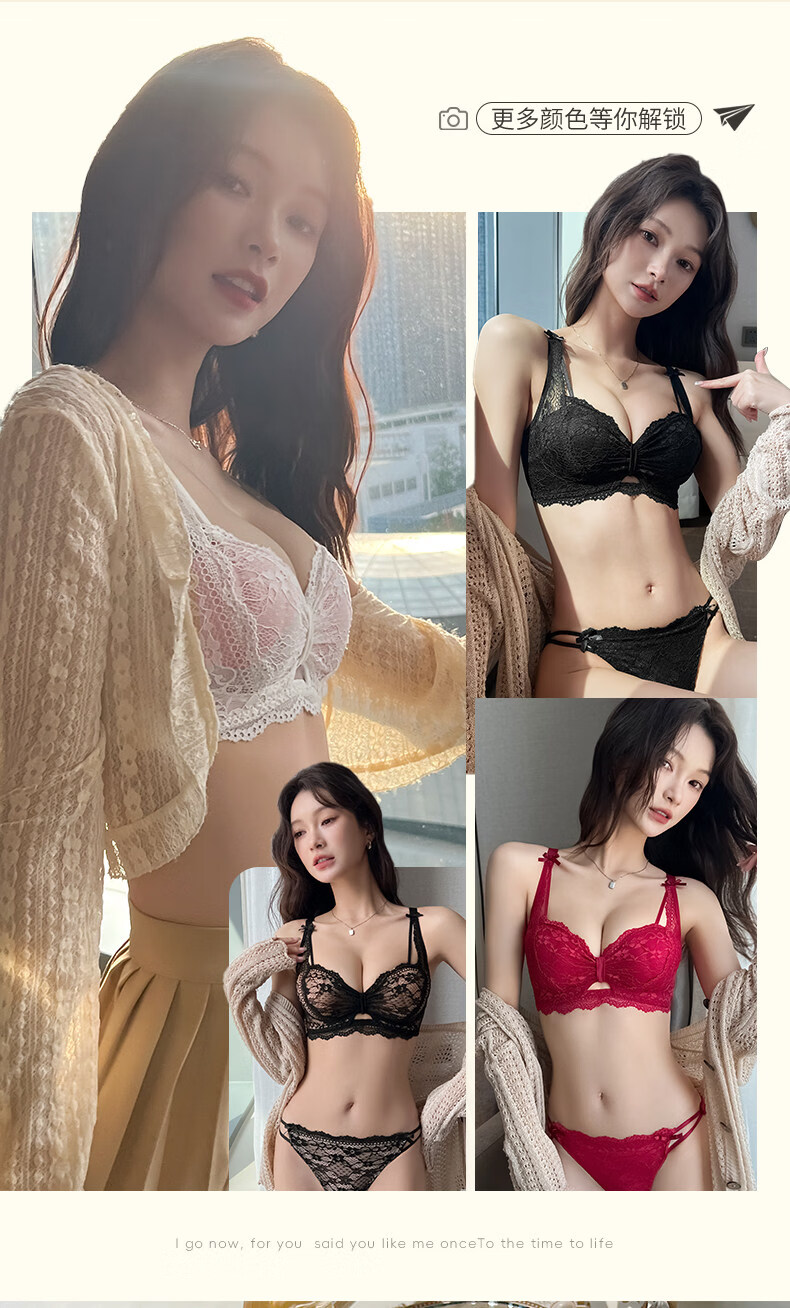 Eresg Light Luxury Brand Underwear Women's Small Breasts Gather Big Sexy Pure Desire Lace Panties Bra Pink Suit + Pure Black Suit 75B Recommended 3475AB