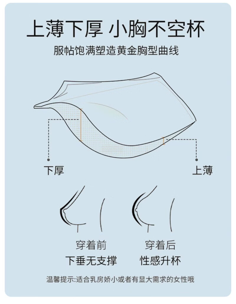 Bandgewoo Bandgewoo Seamless bra that pushes up, supports small breasts, makes them look bigger, prevents sagging, is comfortable and fits the skin, no wire bra, Champagne M 160/85