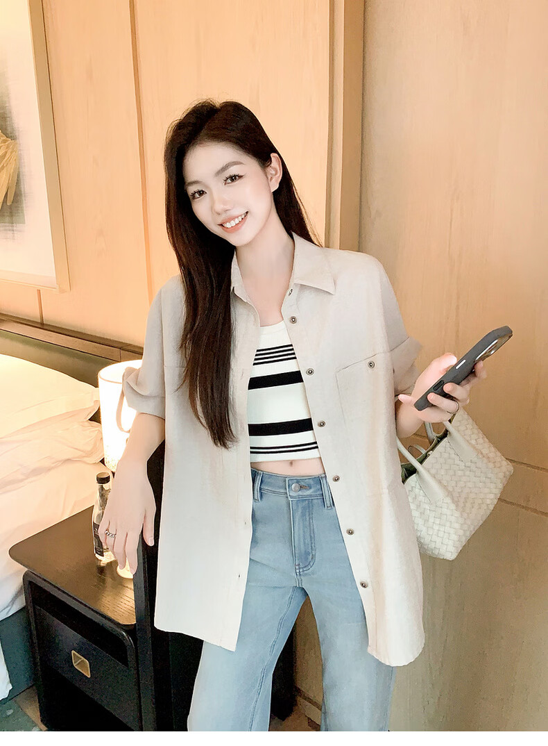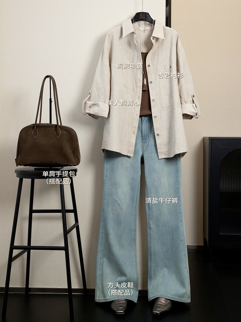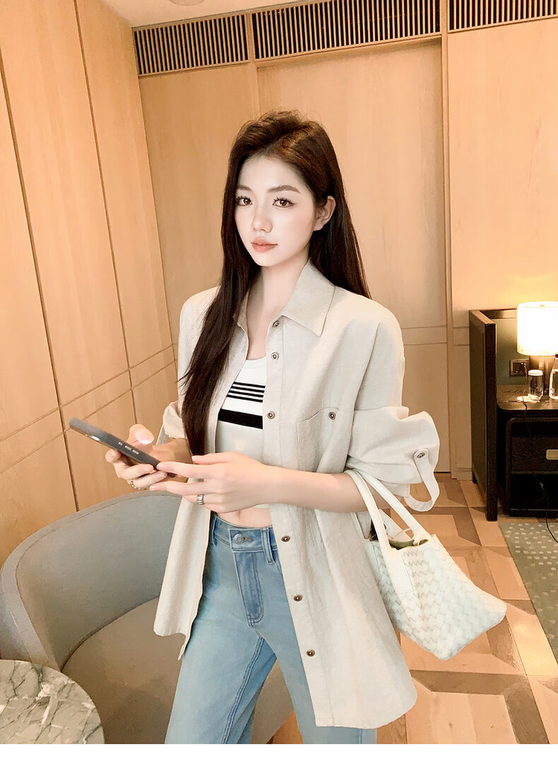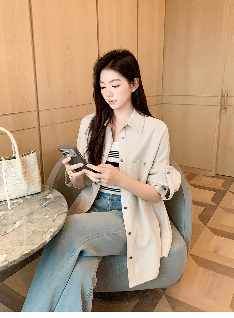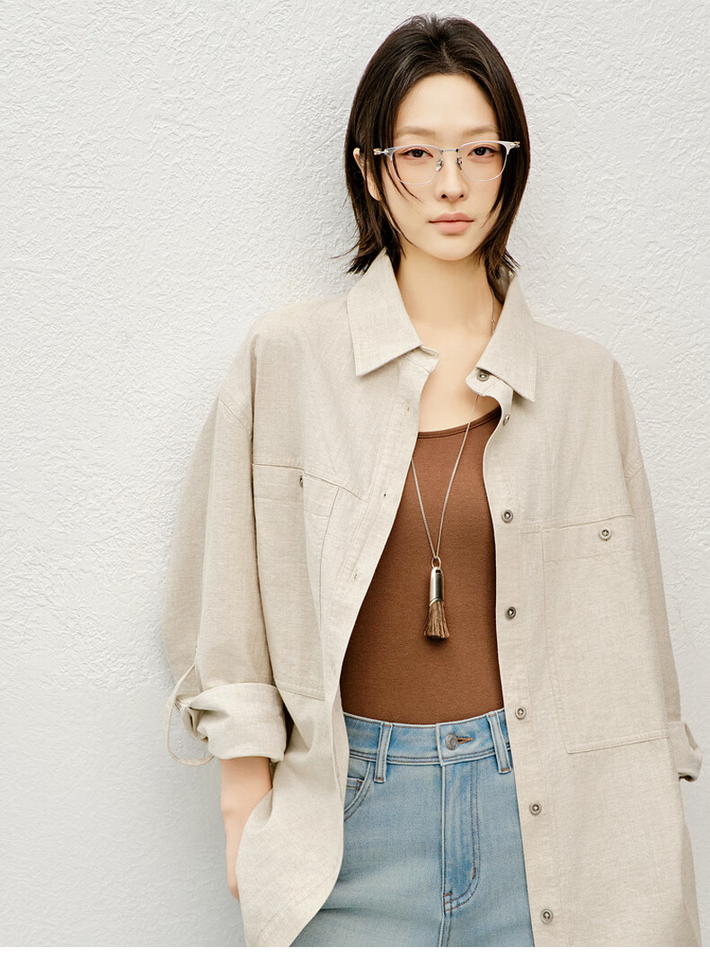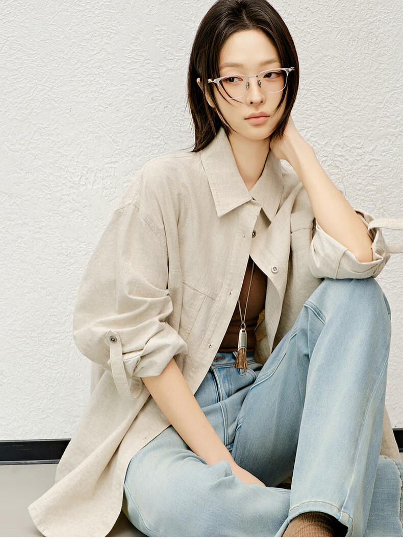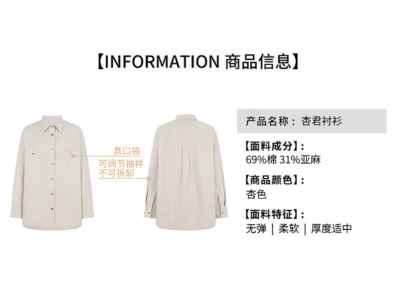 MEIYANG Xingjun shirt 26 spring simple old money casual lapel buttoned long-sleeved shirt-Monday Apricot M