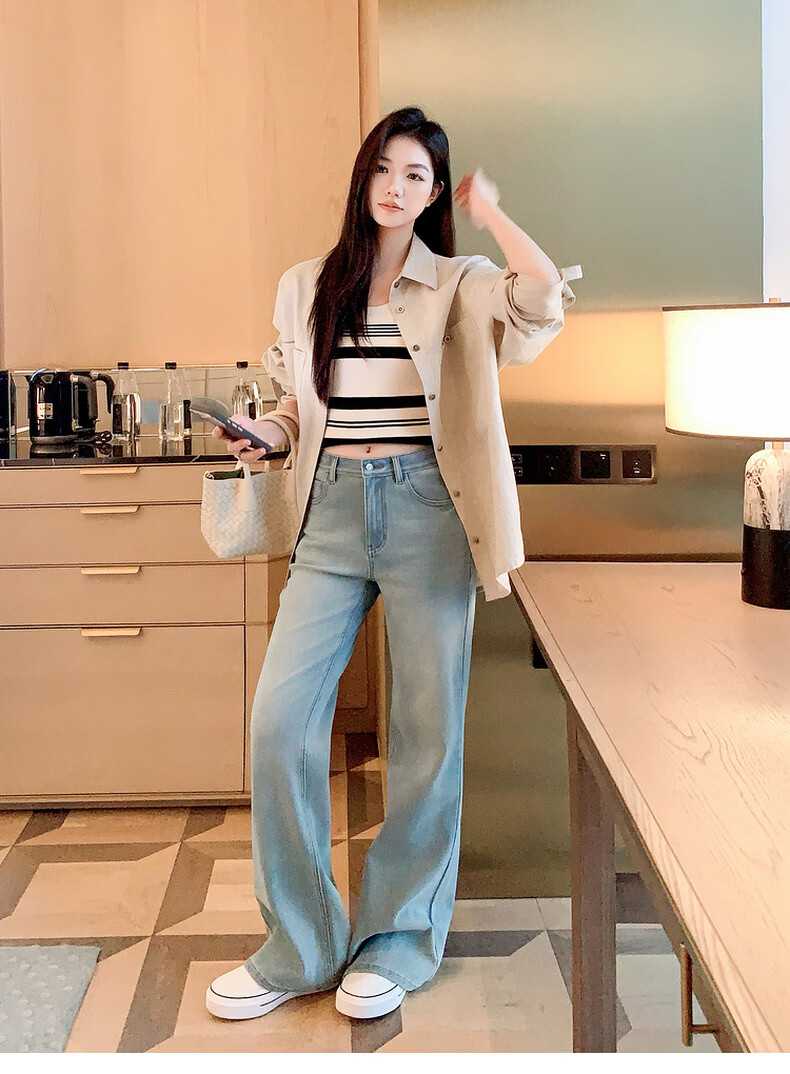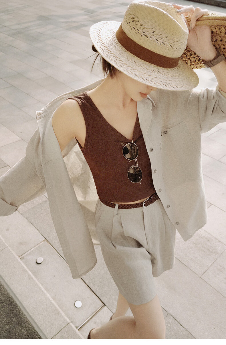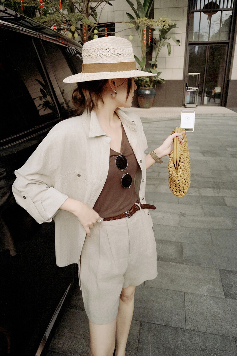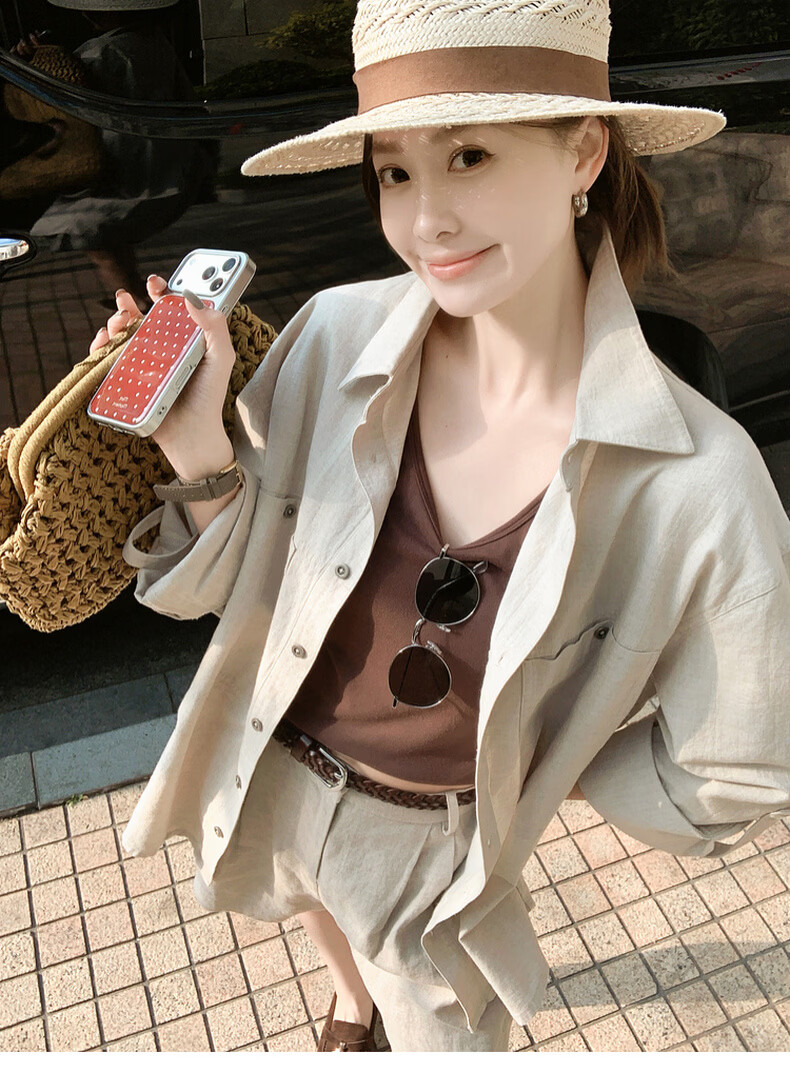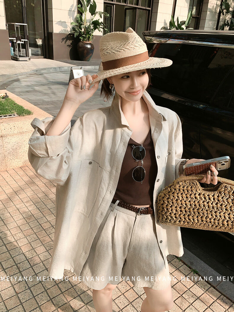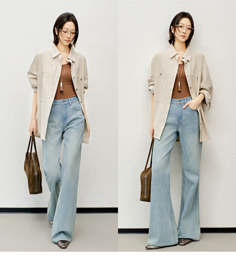 MEIYANG Xingjun shirt 26 spring simple old money casual lapel buttoned long-sleeved shirt-Monday Apricot M