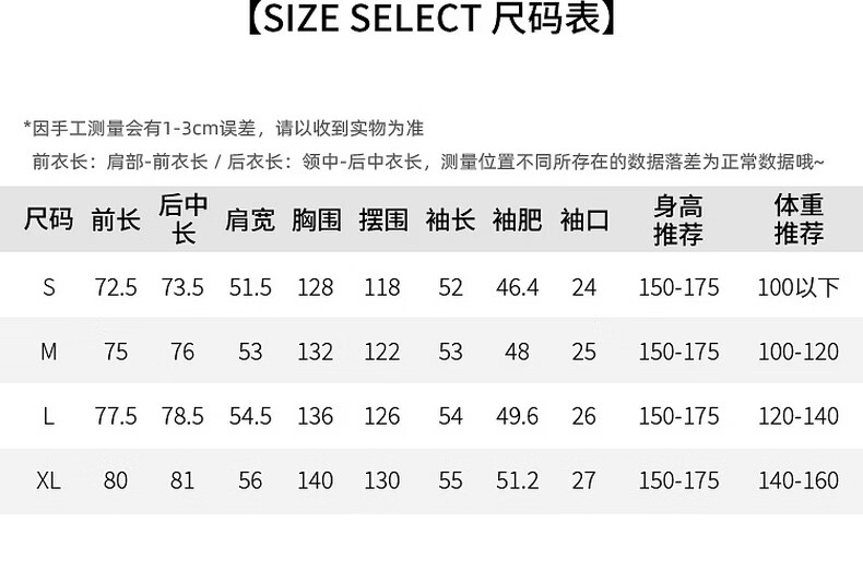 China(cm) 72-76 76-81 81-87 87-93 93-98