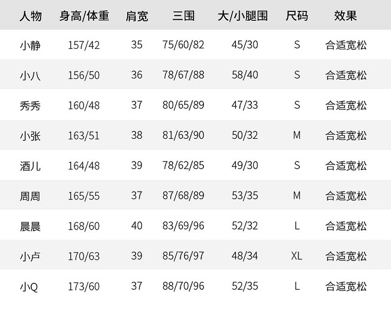 China (cm) 160-165/84-86 165-170 / 88-90 167-172 / 92-96 168-173 / 98-102 170-176 / 106-110