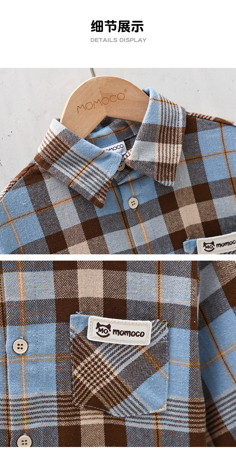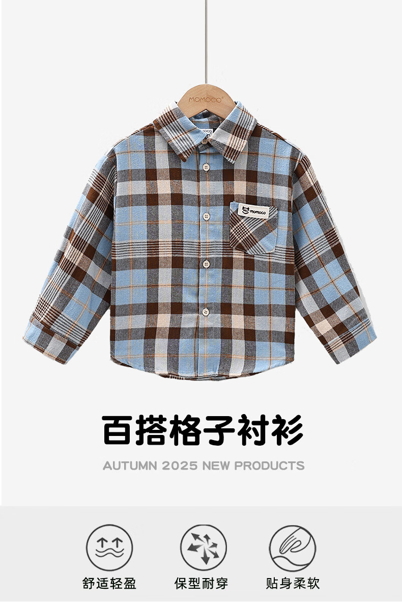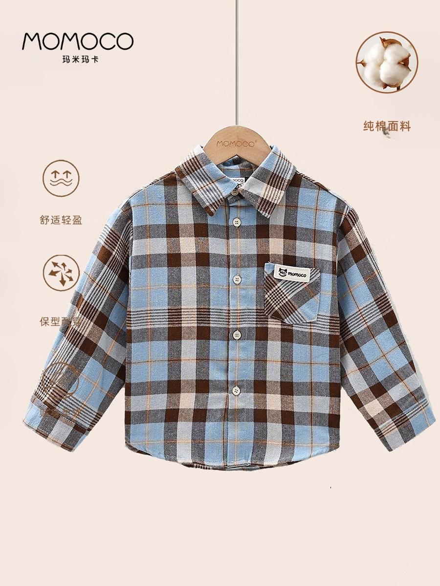Mami Maka (MOMOCO) children's clothing boys' shirts 2026 spring style medium and large children's versatile plaid shirt plaid 020 90