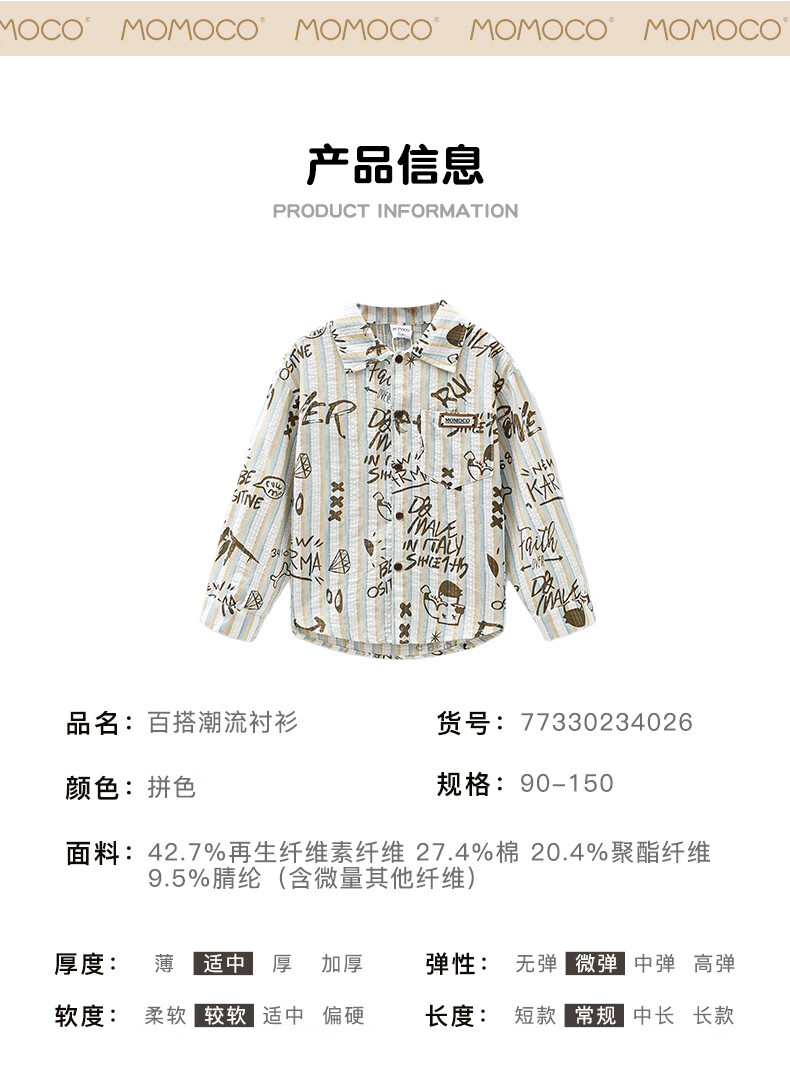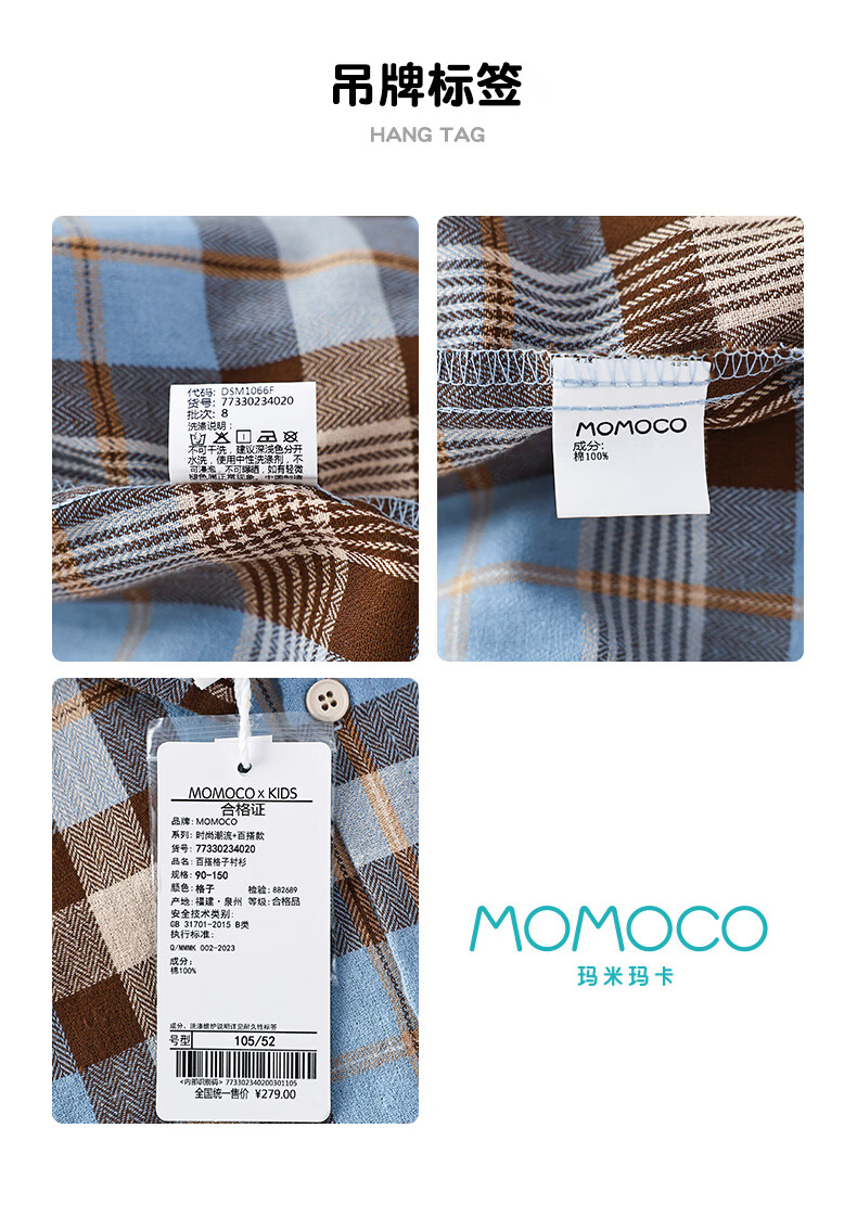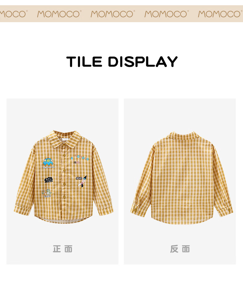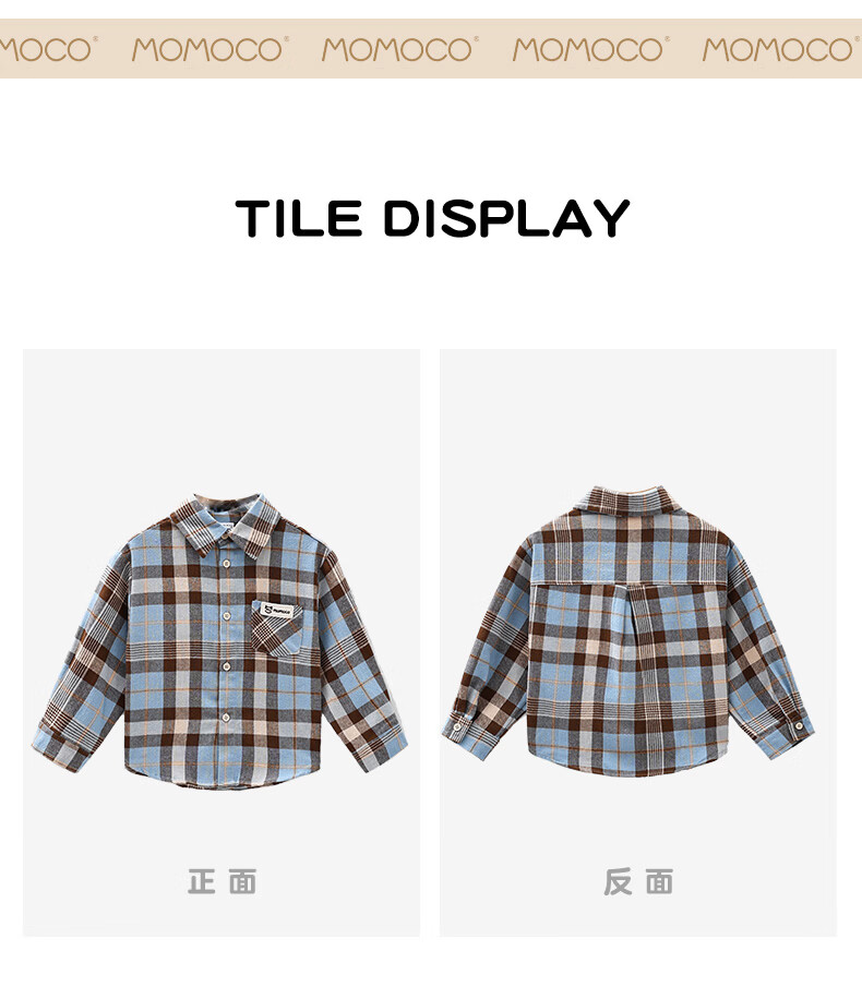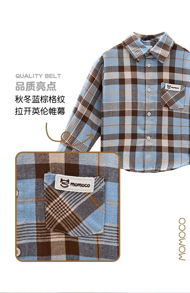 Mami Maka (MOMOCO) children's clothing boys' shirts 2026 spring style medium and large children's versatile plaid shirt plaid 020 90