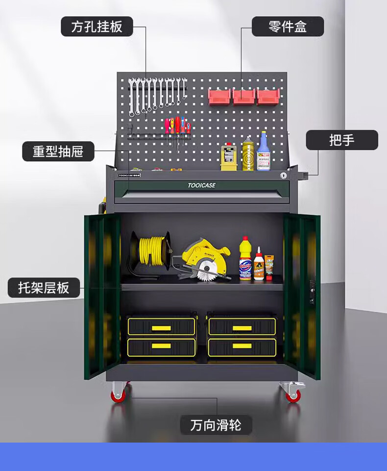 Shopkeeper Auto Repair Tool Cart Drawer Hardware Repair Push Box Multifunctional Mobile Heavy Tool Cabinet Tool Box Tool Rack Dark Night Green One-Pull Tool Cart + Hanging Plate