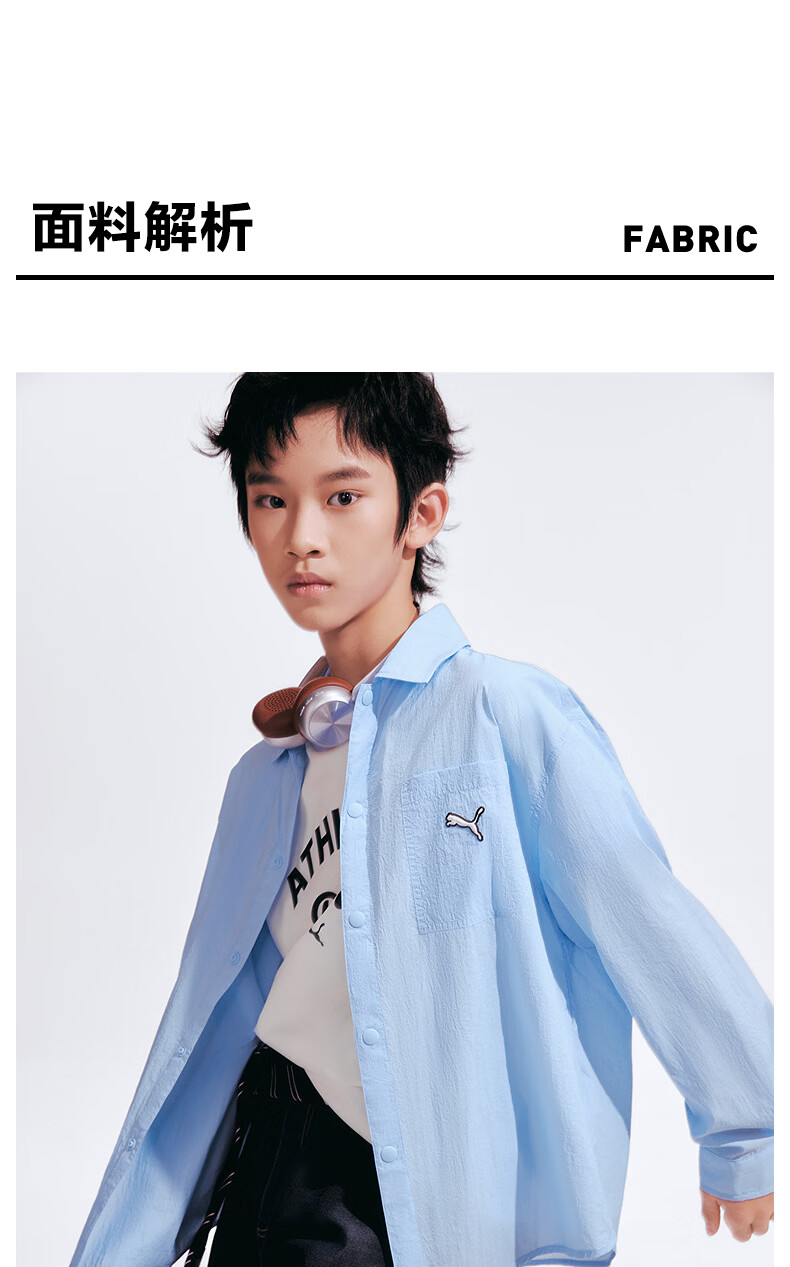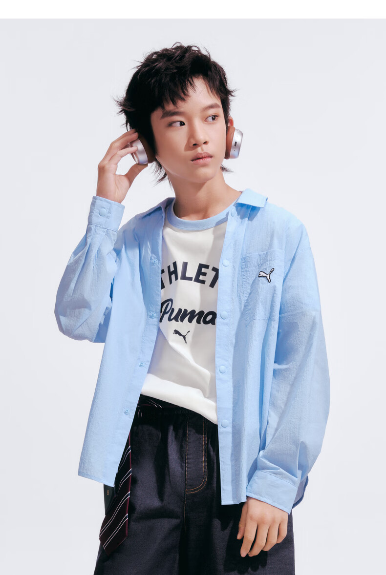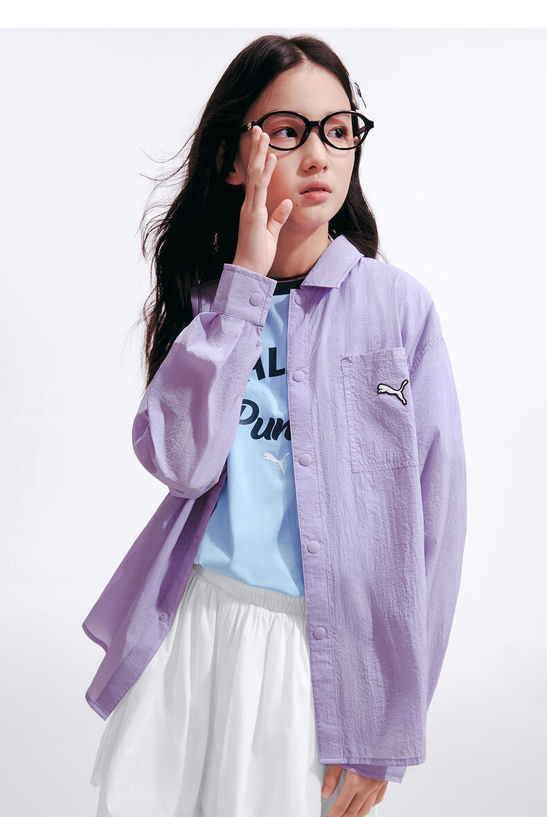 Puma (PUMA) Puma children's clothing 2026 summer new children's long-sleeved shirt sun protection casual style ice blue 80902 110