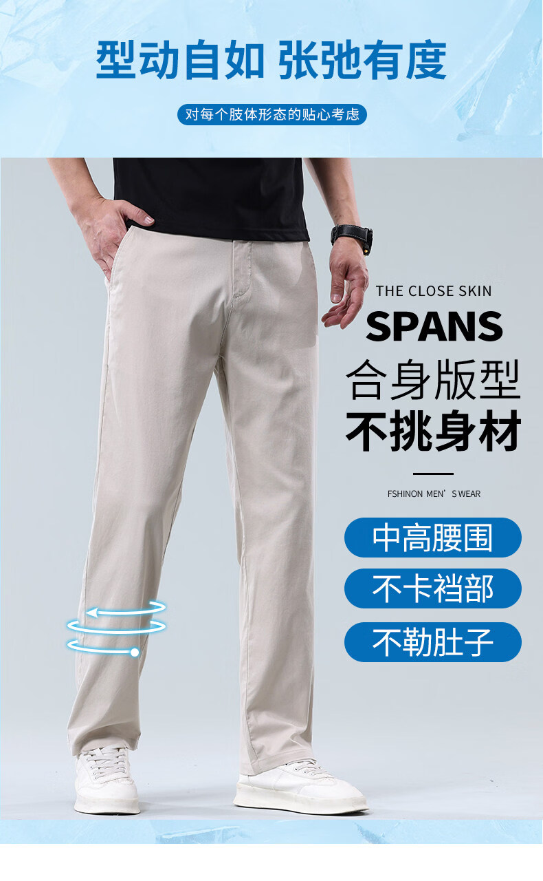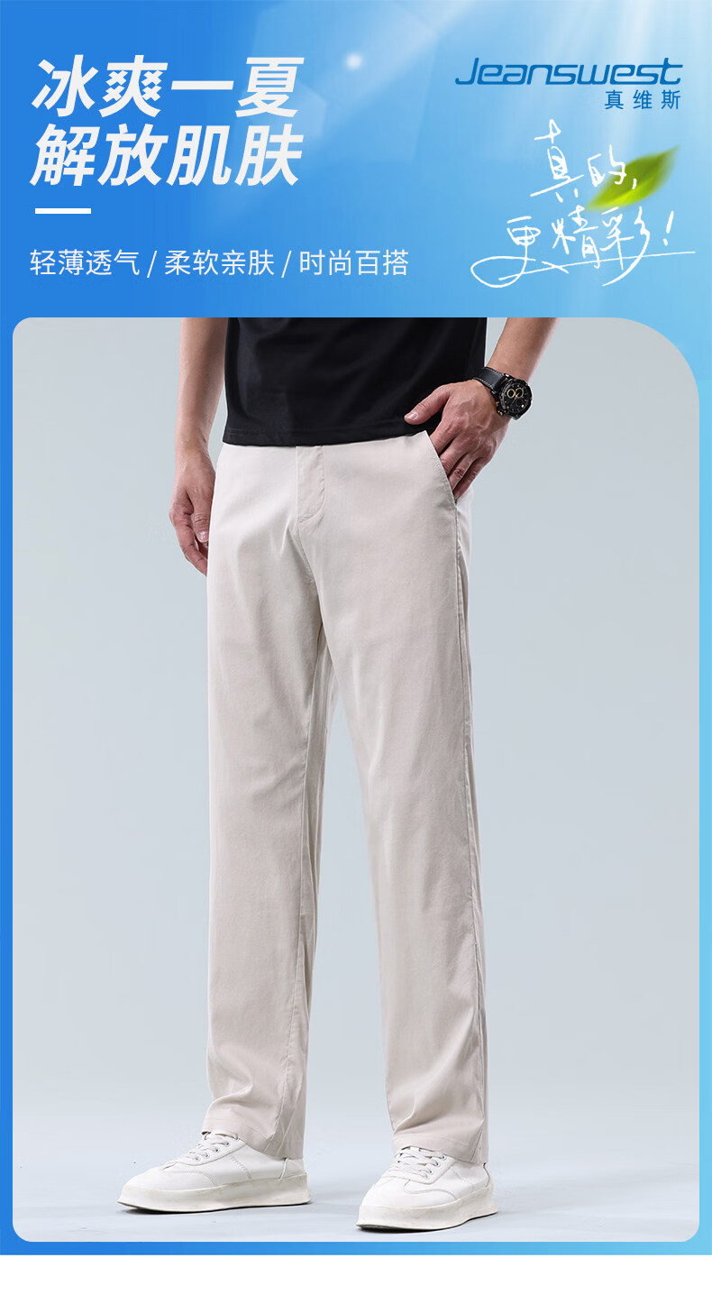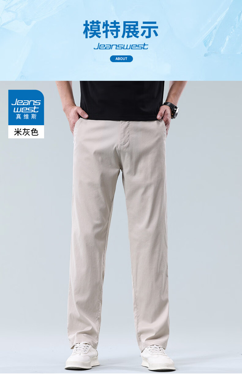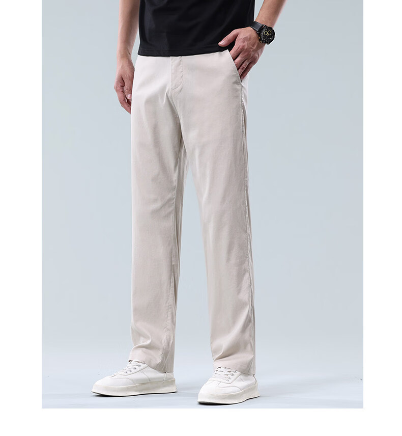 JeansWest Business Linen Stretch Casual Pants Men's 2026 Summer Ice Silk Thin Loose Versatile Straight Pants Beige Gray Linen Breathable 30 Recommended 110-120Jin Jin is equal to 0.5 kg