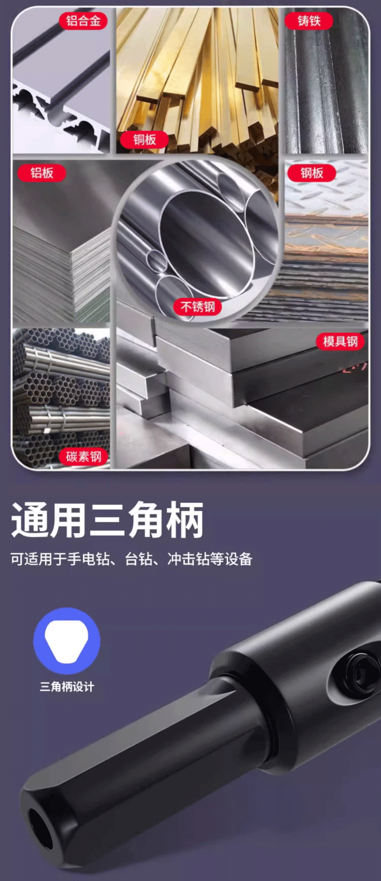 Stainless steel hole opener, hexagonal handle, metal high steel hand, iron sheet opener, special drill bit for reaming holes, hexagonal handle rod * 2 pieces, only suitable for 28mm and above