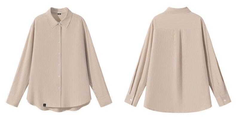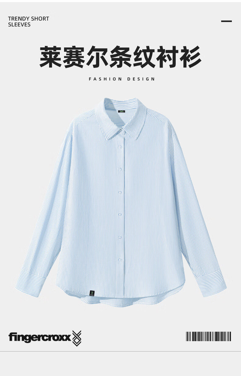 Fingercroxxit striped shirt women's lyocell thin outer top new spring shirt jacket coffee white stripe S