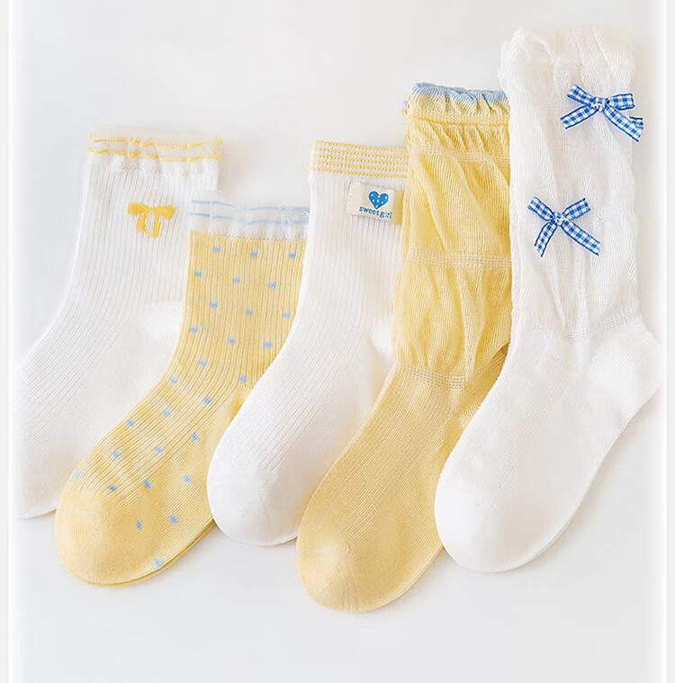 Mianqi Xiong Girls' Thin Socks Children's Spring and Summer Mesh Socks Medium Socks Girls' Boneless Lace Socks Breathable Children's Socks for Medium and Large Children FB125-Girls' Style-5 Pairs Soft and Comfortable Long Staple Cotton 10A Antibacterial 3-5 Years Old - Recommended Foot Length 14-16CM Shoe Size 20-27