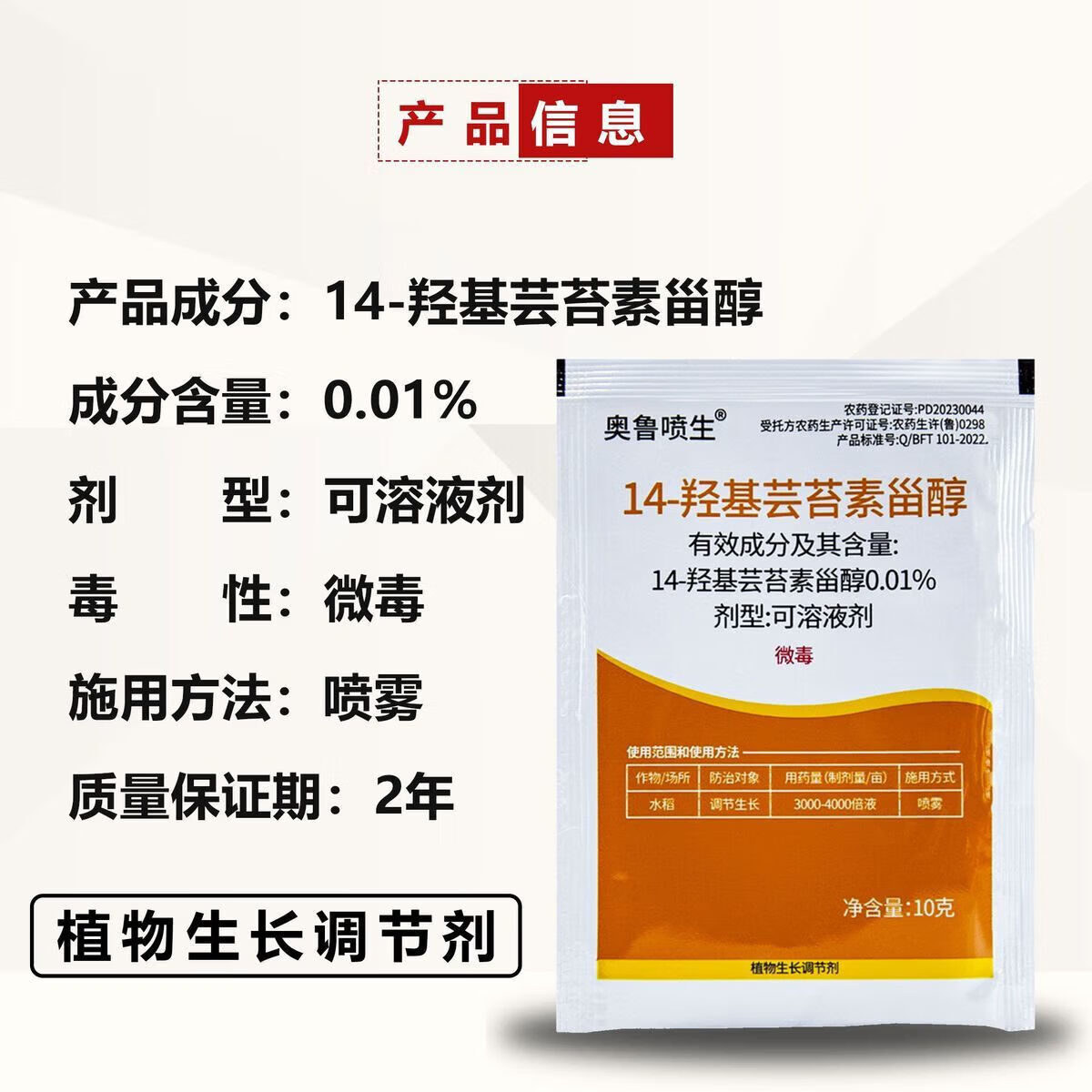 0.01% 14-Hydroxybrassinosteroid Plant Regulates Growth Rice Mildly Toxic Delays Aging Long Lasting 10ml 50 Bags