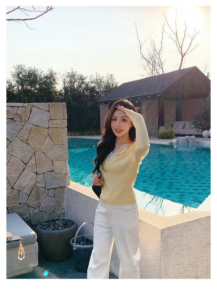 KSOEUR K sister moonlight lace lace lace stitching contrasting fake two-piece wool sweater soft matte gray XL